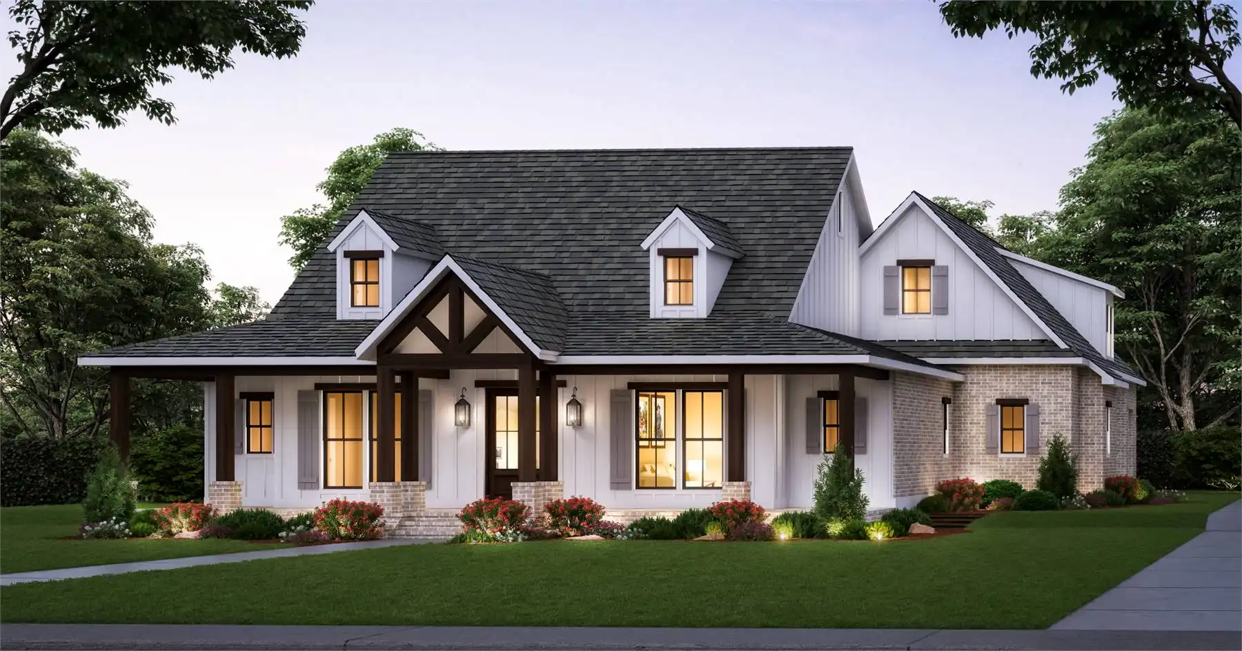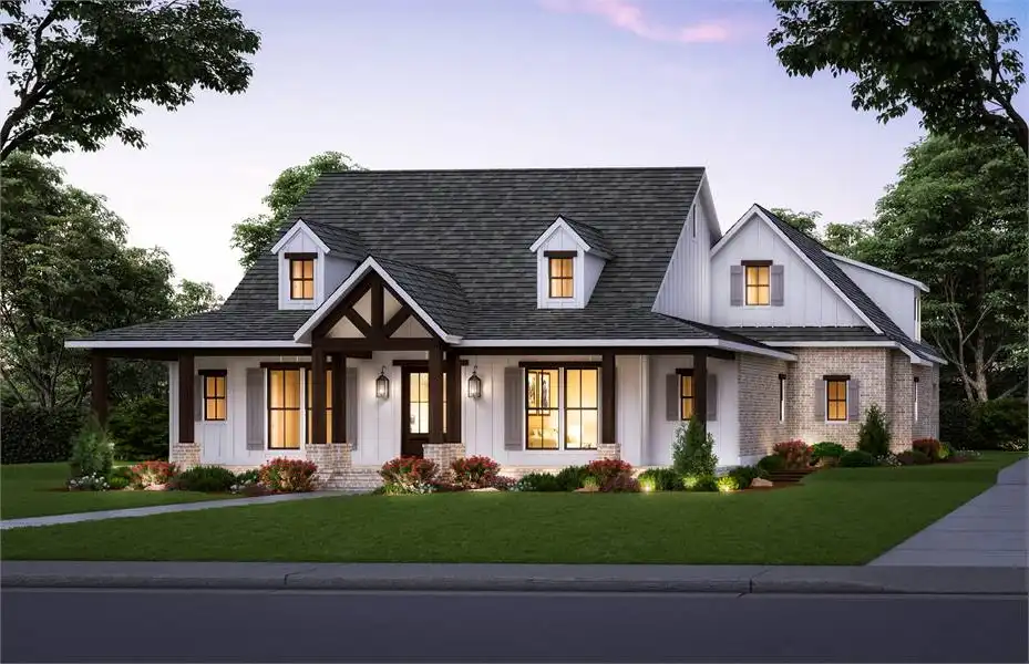A perfect example of the difference that attention to the finer details can have, this stunning farmhouse plan doesn't miss a thing. From it's totally open and accessible 2,584 square-foot layout, which can all be found within a single level, to the added functionality of spaces such as the covered carport with its dedicated storage space, and even an upstairs bonus room. This home is the picture perfect result of a design that is totally focused on every aspect of life. Whether it's cooking up a feast in your chef-inspired kitchen, watching a movie in the family room, or seeing the sunset off of your back porch, you can do it all and more! And the best part is, this design can accommodate a new or growing family with ease. Did you notice how each of the four bedrooms has its own en suite? Not only is this unique, but the kids and guests will thank you. And for the crown jewel of all bedroom suites, look no further than your private master retreat, complete with an impressive bath and closet that is large enough for any wardrobe.