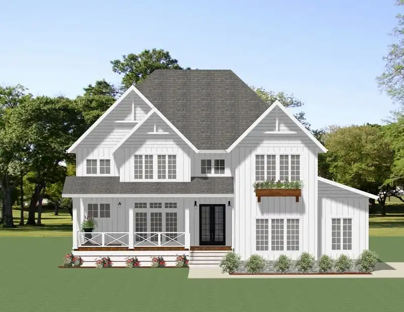 Paying homage to a simpler time, this stunning Craftsman cottage is a beautiful and totally functional family home. The perfect amount of space and beautiful details gives this 2-story, 3,176 square foot plan enough room for everyone to enjoy. This includes the master suite, complete with a private spa bath and sitting area, as well as 3 auxiliary bedrooms and 3.5 bathrooms. Did you notice that every bedroom in this home has its own walk-in closet? That's perfect for kids and guests of all ages! The first floor is also highlighted by its dual covered porches, a 2-story vaulted living room, and the attached gourmet island kitchen with nearby dining room. Plus, this plan has you covered on storage and other practical spaces too. Look no further than your 3-car garage with its built-in storage, or the upstairs bonus space that can be customized to your exact needs!