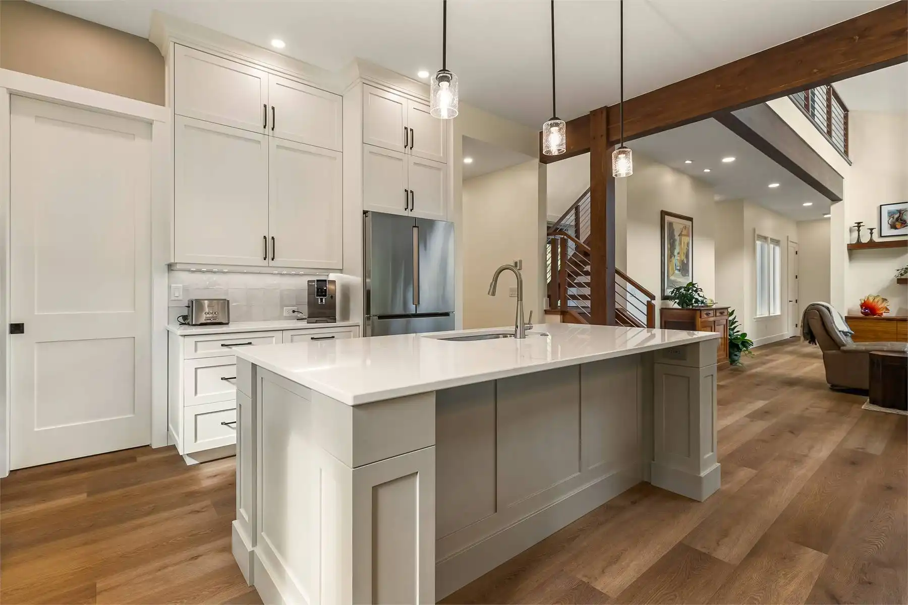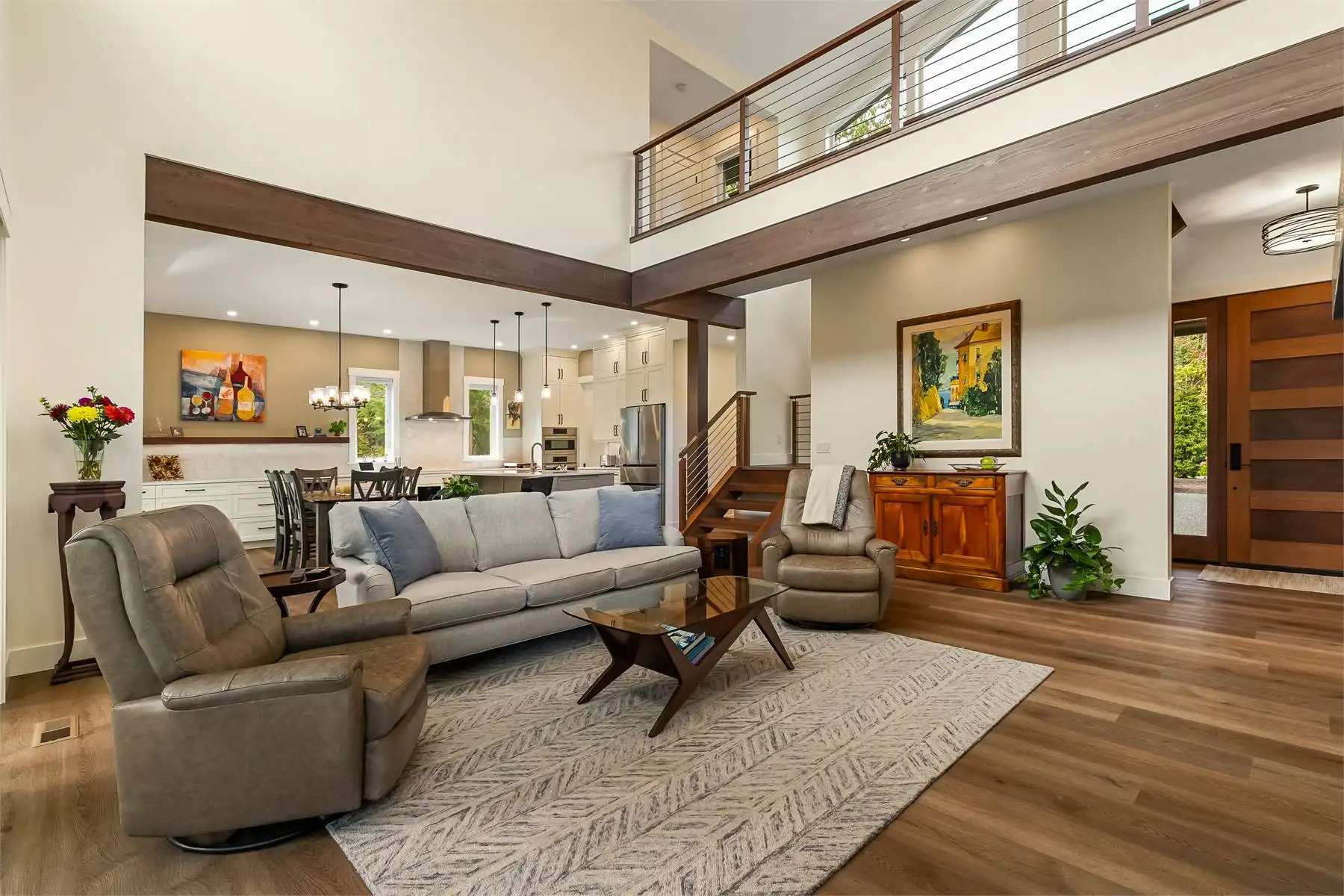 Open and airy meets stylish and efficient, all coming together to create this lovely modern Craftsman-inspired plan. Offering 2,641 square feet of living space, including 3 large bedrooms, this is the perfect home for a new or growing family who wants some unforgettable style. Soak in the exterior curb appeal from the feature windows to the sloping roofline, before moving inside. Once indoors you'll discover an open concept layout that makes everything feel together. From the gourmet chef's kitchen to the vaulted living room with cathedral ceilings and tons of natural light, no matter where you are, this house will feel like a home. Plus, the master is conveniently on the first floor while the other bedrooms are upstairs, perfect for creating some privacy for everyone to relax at the end of the day.