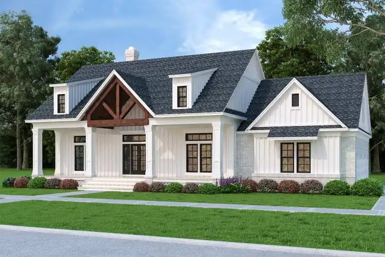 This lovely country farmhouse is something special that you just have to see. Featuring 1,932 square feet of living space and tons of potential for current or future growth and customization, this 3 bedroom plan has so much to love. The main floor houses most of the space, beginning with a covered front and back porch and a large 3-car garage. There is also a vaulted living room and gourmet kitchen that is sure to draw everyone together. Plus, the addition of 3 bedroom suites on this level makes for accessible and relaxing comfort for the whole family. Meanwhile, upstairs has a bonus room and plenty of customizable areas that are just waiting for your unique touch.