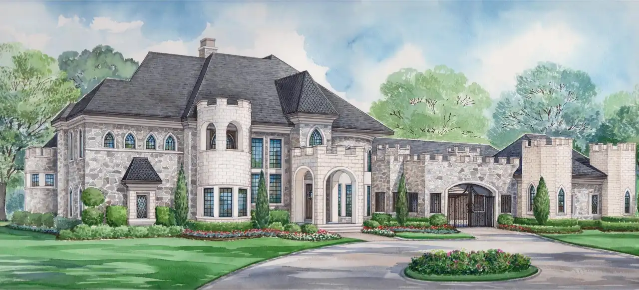 There is no better way to feel like royalty every day of your life than with this stunning European estate. Modeled after some of the world's most famous chateaus and castles, this design combines the look of centuries-old charm with modern functionality and stunning spaces. And with 6,867 square feet of living space, there is no shortage of room for the whole family. Whether it's a bit of private relaxation in one of the 4 full bedroom suites, each of which has its own spa bath, or hosting a party in the main areas of the vaulted living room or picturesque island kitchen, this plan is ready for all of life's events. You will even notice that there are some unique additions. From the home gym and game room to the pet lodge or second story terrace, you can rest easy knowing that this home has something for everyone to enjoy...even your furry friends!
