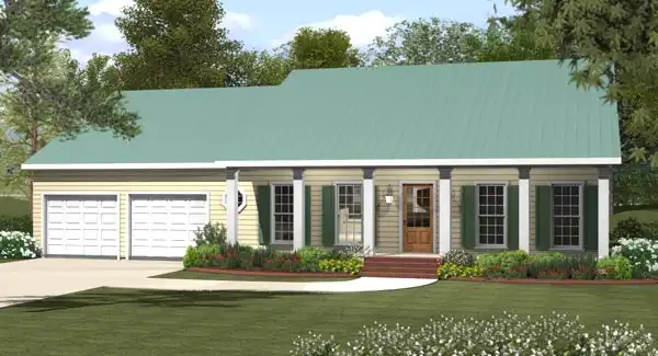 At 1,633 square feet, this Southern country classic may be just the home for you. Sizable porches on the front and rear of the floor plans allow you to relax and commune with nature. If youre dreaming of home plans that are nicely situated for entertaining friends, check out the curved snack bar and crackling fireplace in the spacious Great Room! Do you have boxes of seasonal clothing and decorations? How often do you see house plans with this much storage space off the garage?
