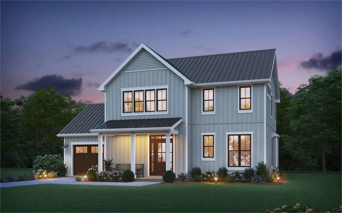 With 2,113 square feet, three or four bedrooms, and three bathrooms on two stories, House Plan 8790 makes a great choice for a growing family! The design also has a one-car garage on the side for parking. The main level is where you'll find a bedroom/office and a hall bath in front and the totally open-concept great room in back. The living space opens to the rear porch to blur the line between indoors and out. Upstairs, there's a four-piece primary suite, two additional bedrooms, a hall bath, and the laundry closet. All the bedrooms have French doors that open to the deck!