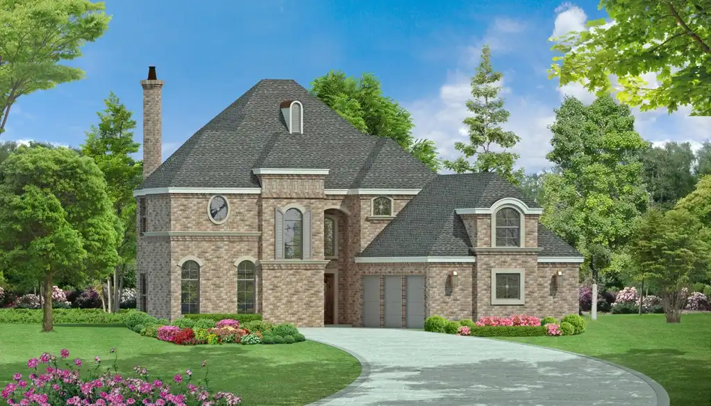 A lovely European-inspired design gives this plan a real and unforgettable amount of charm. Even down to the last detail, the 3,988 square foot home has thought of it all. For the aspiring chef, check out the spacious island kitchen and dining room for entertaining. For the family moments, take your pick of the living room, music area, or upstairs game and bonus rooms. And when privacy is what you need, you can either retreat to the home office or to one of the three bedrooms, each of which has its own en-suite and walk-in closet. A convenient and often rare feature that will surely be loved by all!