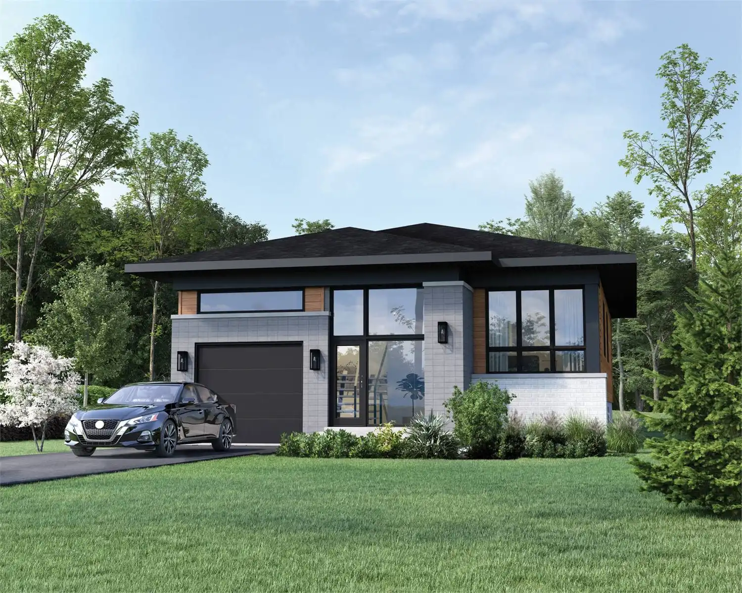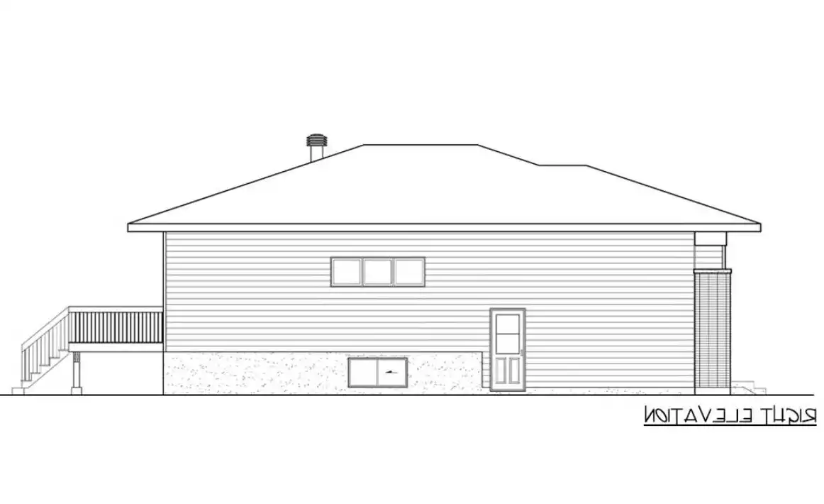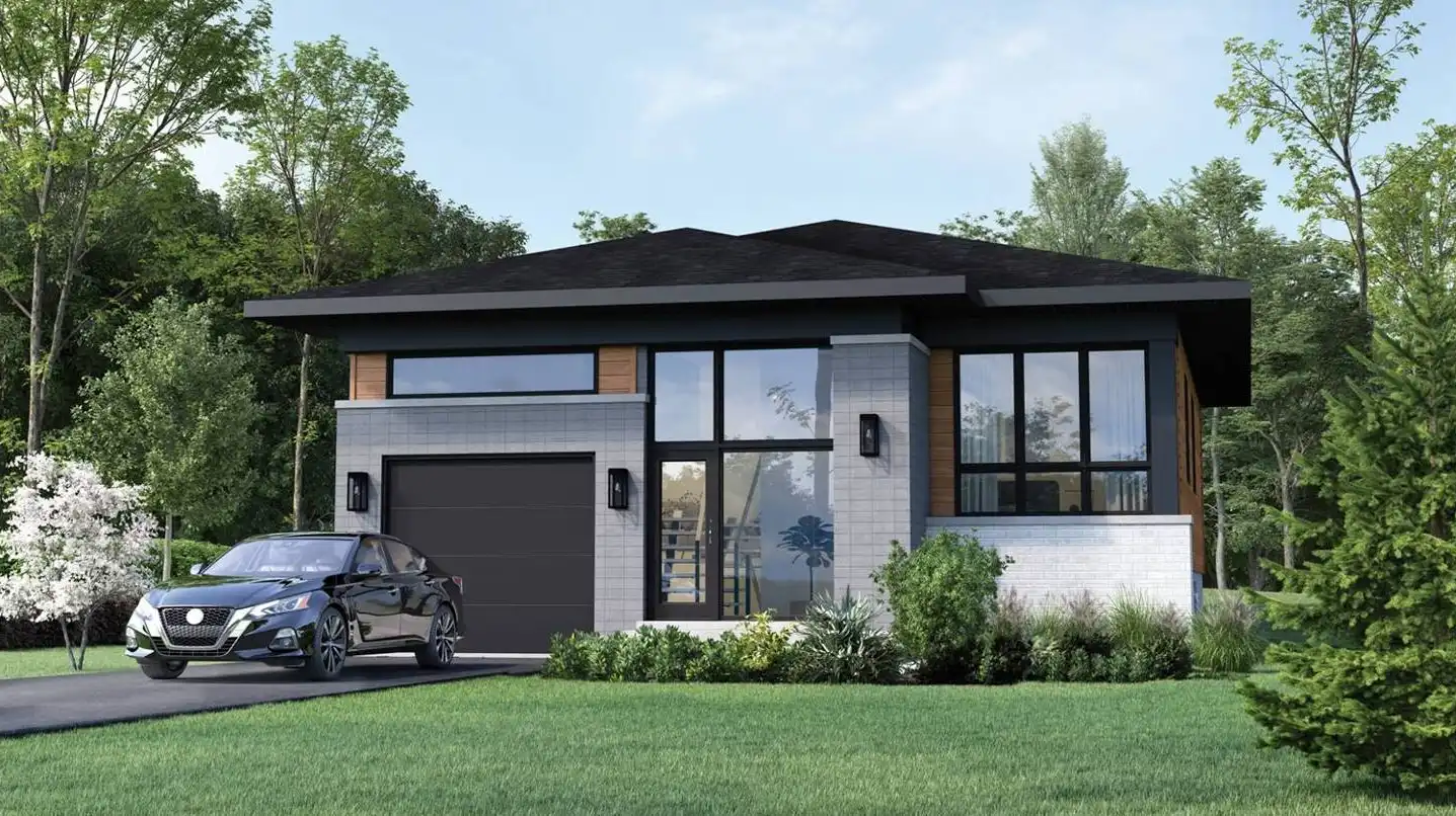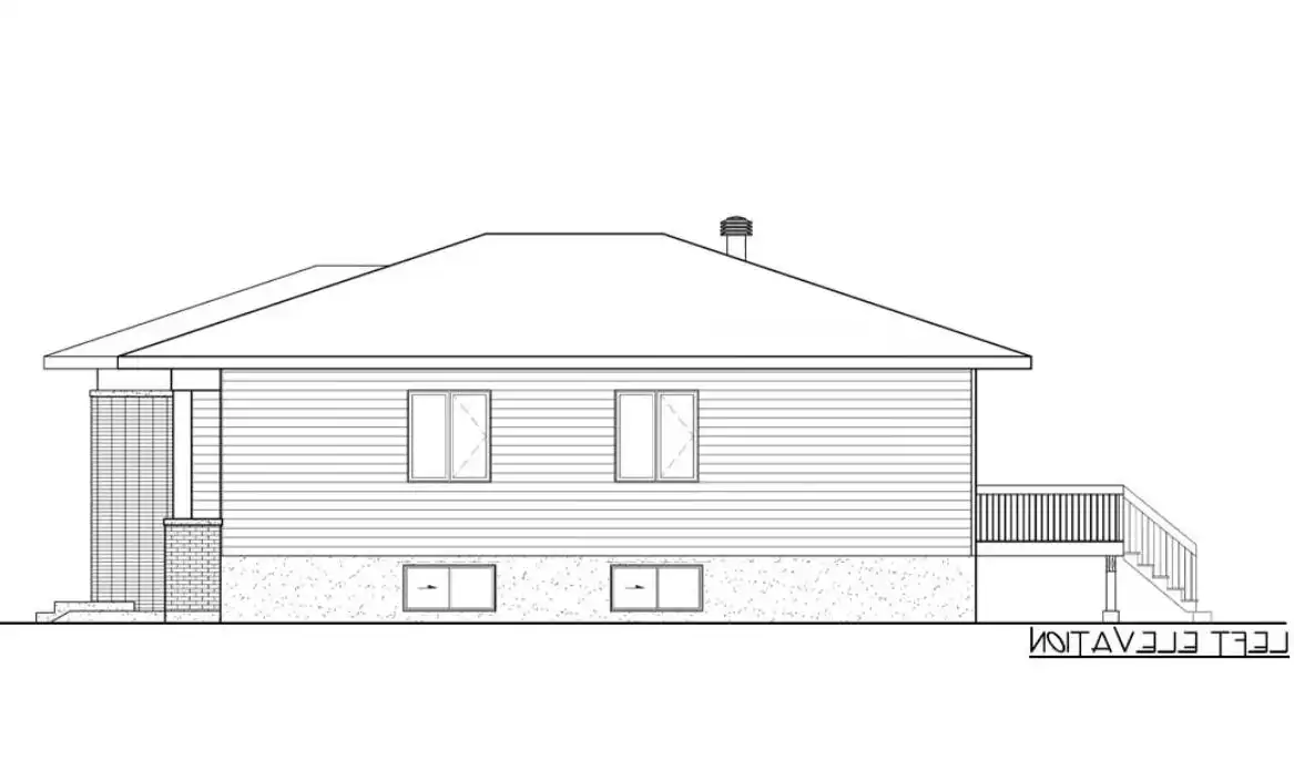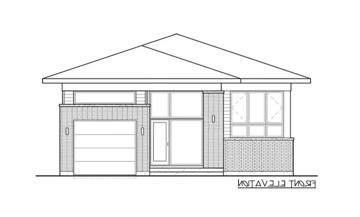 House Plan 8801 is a raised ranch with modern style and all of its 1,316 square feet and three bedrooms on the main level. The front entry and garage both connect to the foyer area with a coat closet. From here, you can continue straight back to the open-concept living area with an island kitchen or turn to the side hallway where all the bedrooms share a five-piece bath. The largest bedroom is in back while the secondary bedrooms sit in front of it, separated by the bathroom. This is a lovely arrangement for families of all ages on a budget!