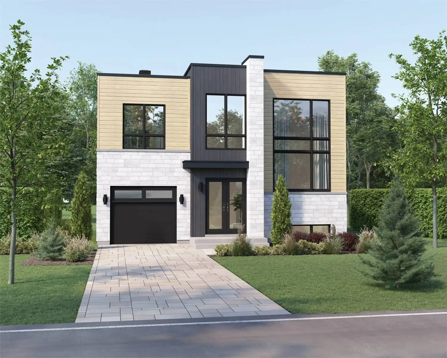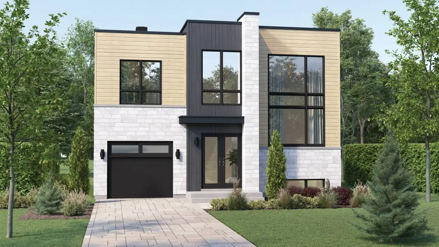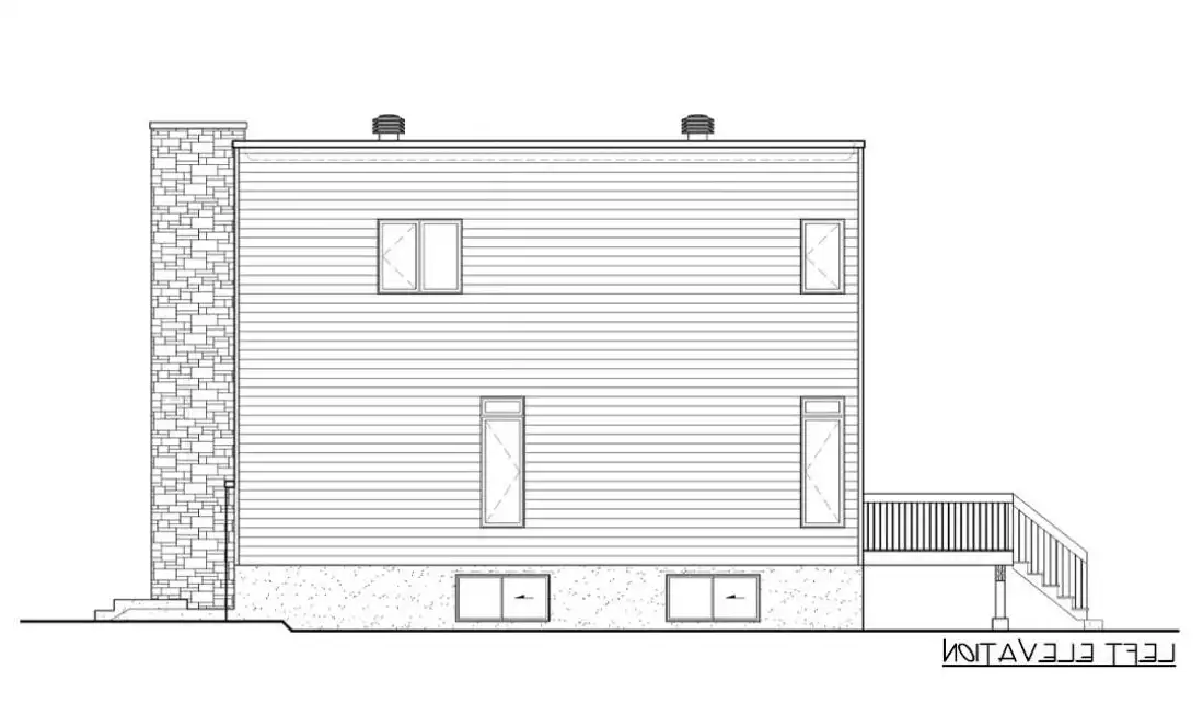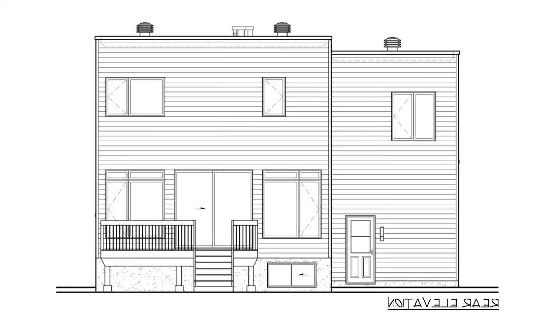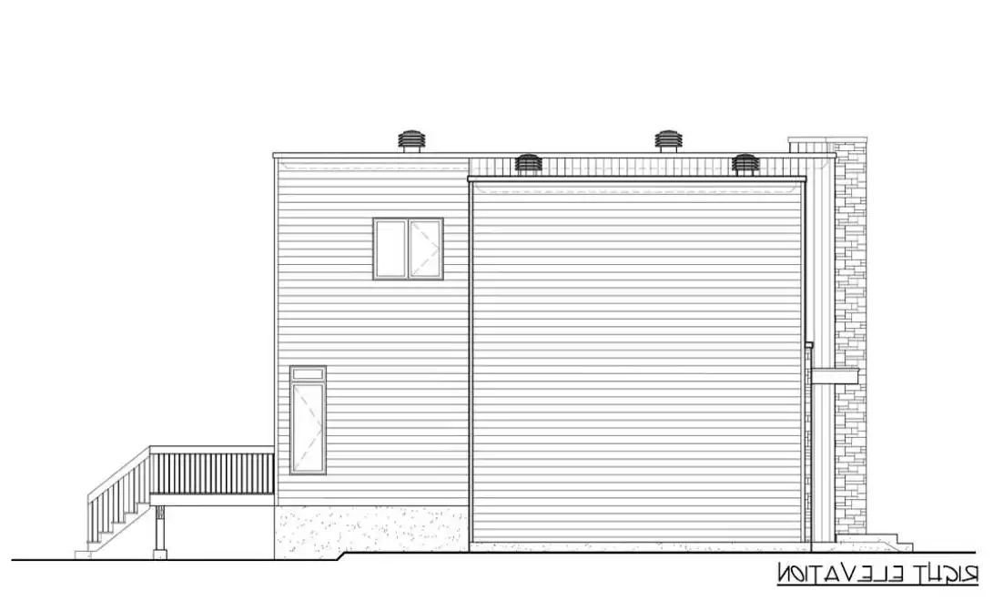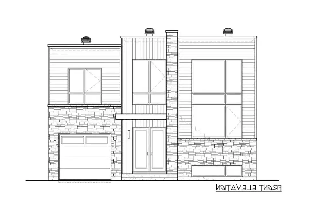 Check out this unique design! House Plan 8807 offers 1,958 square feet with three bedrooms and one-and-a-half bathrooms on a compact footprint. The main level includes the open-concept living areas while all the bedrooms are upstairs, but don't miss the extra flexibility provided in the middle. The landing level of the main staircase offers additional living space, an office, and the laundry. All this comes wrapped up in bold modern curb appeal with huge brightening windows and flat rooflines!