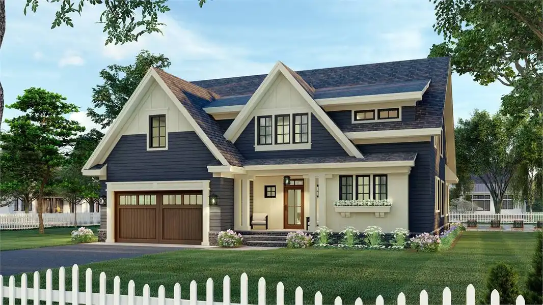 House Plan 8833 is the perfect choice for anybody looking for a spacious family home with plenty of Craftsman style. Inside its 3,249 square feet, you'll find four bedrooms and three-and-a-half baths split across two stories. The main level includes an amazing 5-piece master suite, a powder room off the foyer, a large open great room, an office/den, a laundry/mudroom, and a prep kitchen and pantry located in the back corner of the island kitchen. Head upstairs and you'll find a pair of bedrooms in a Jack-and-Jill setup, a bedroom suite that shares its bathroom with the loft, another laundry set, and a future bonus over the garage. Four garage options are included so you can choose whether you want a two- or three-car garage and whether it has front or side access. All of this and outdoor living is wrapped up in a beautiful Craftsman exterior with plenty of gables and dormers!