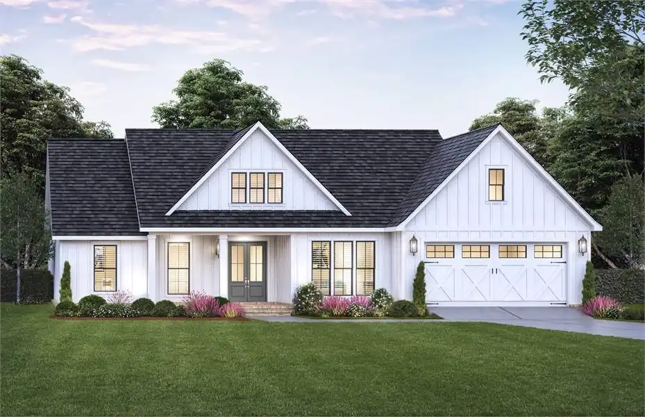 A welcoming home from the very beginning, this charming farmhouse plan is perfect for a new family. With 3 large bedrooms and 1,817 square feet of living space all within a single level, the accessible and inviting nature of the plan is a real bonus! And thanks to the open main areas, you can easily bring the whole family together for some time spent making memories. Whether it’s a family game or movie night in the living room or a meal cooked up in the kitchen and enjoyed on the back porch, the possibilities with this home are endless! Be sure to check out other convenient areas like the home office and the added storage in the garage. You’ll certainly enjoy having those spaces.