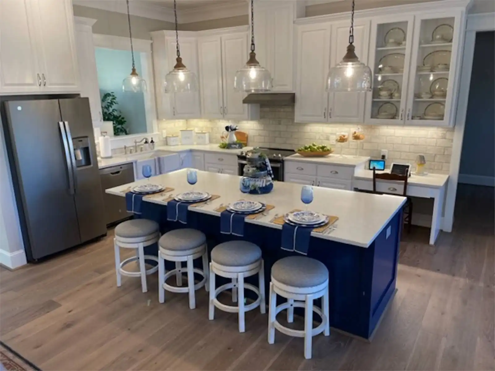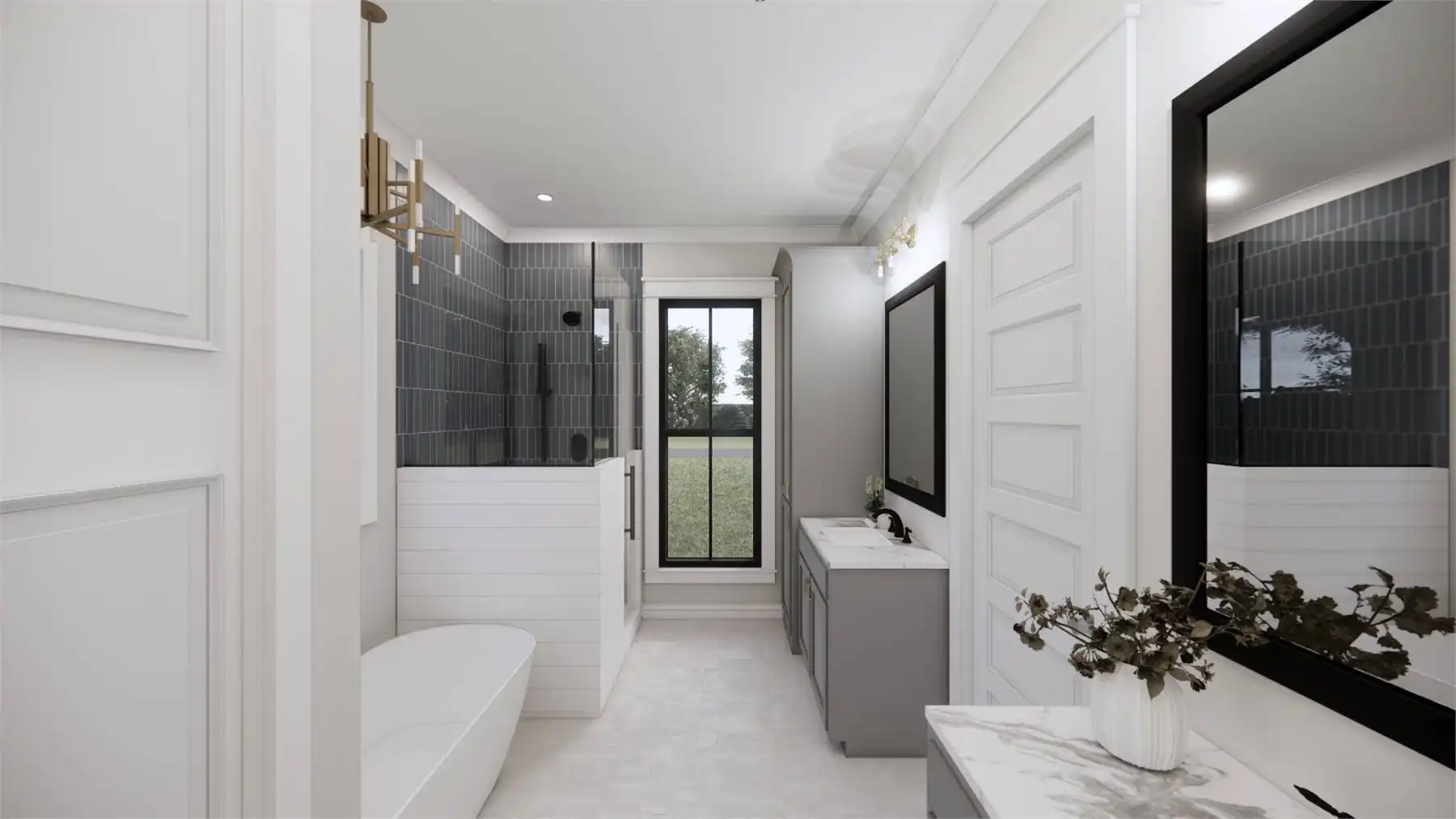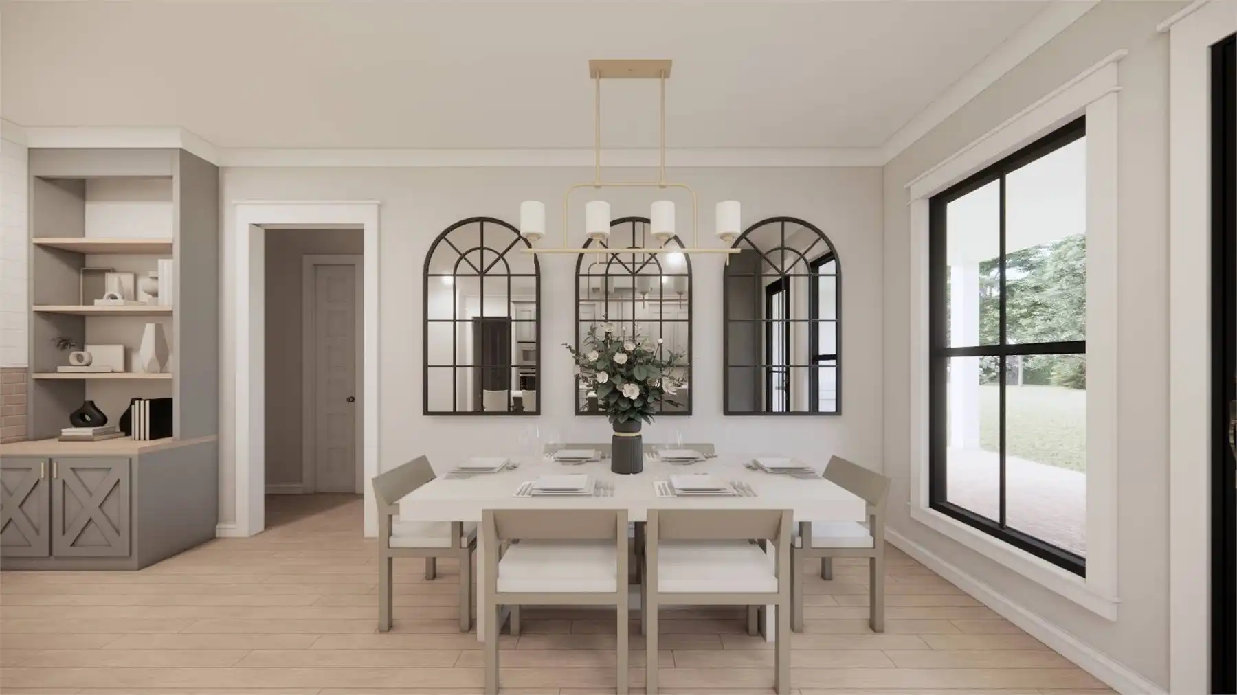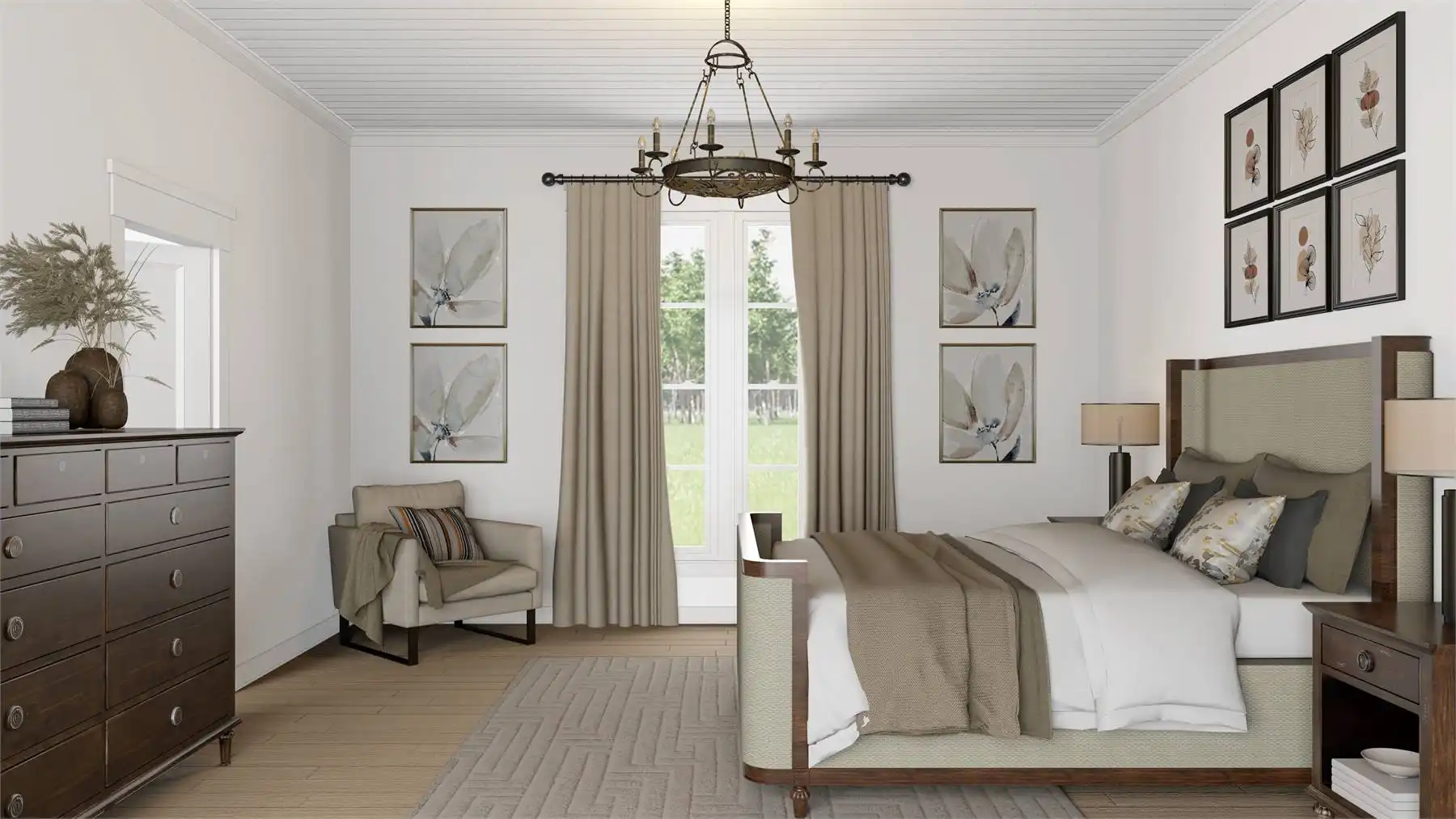 With 1,924 square feet on one story, DFD-8859 makes a practical home for families. It features three bedrooms and two-and-a-half baths in a well-balanced, split-bedroom arrangement. On one side, the kids have two 12 x 12 rooms with a Jack-and-Jill bathroom to share, while the master suite will definitely appeal to the homeowner(s) with a 15 x 15 bedroom and a fully loaded ensuite bath. The great room makes up the heart of the home, with complete openness between the living space, island dining, and dining area. And if you want to expand outside, check out the outdoor kitchen in back! DFD-8859 features a side-entry garage behind the main footprint, which makes it perfect for an interior or corner lot and adding some privacy to the backyard. All of this comes behind a symmetrical country facade for awesome curb appeal, too!