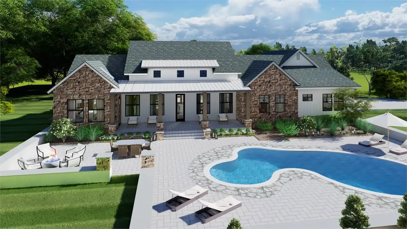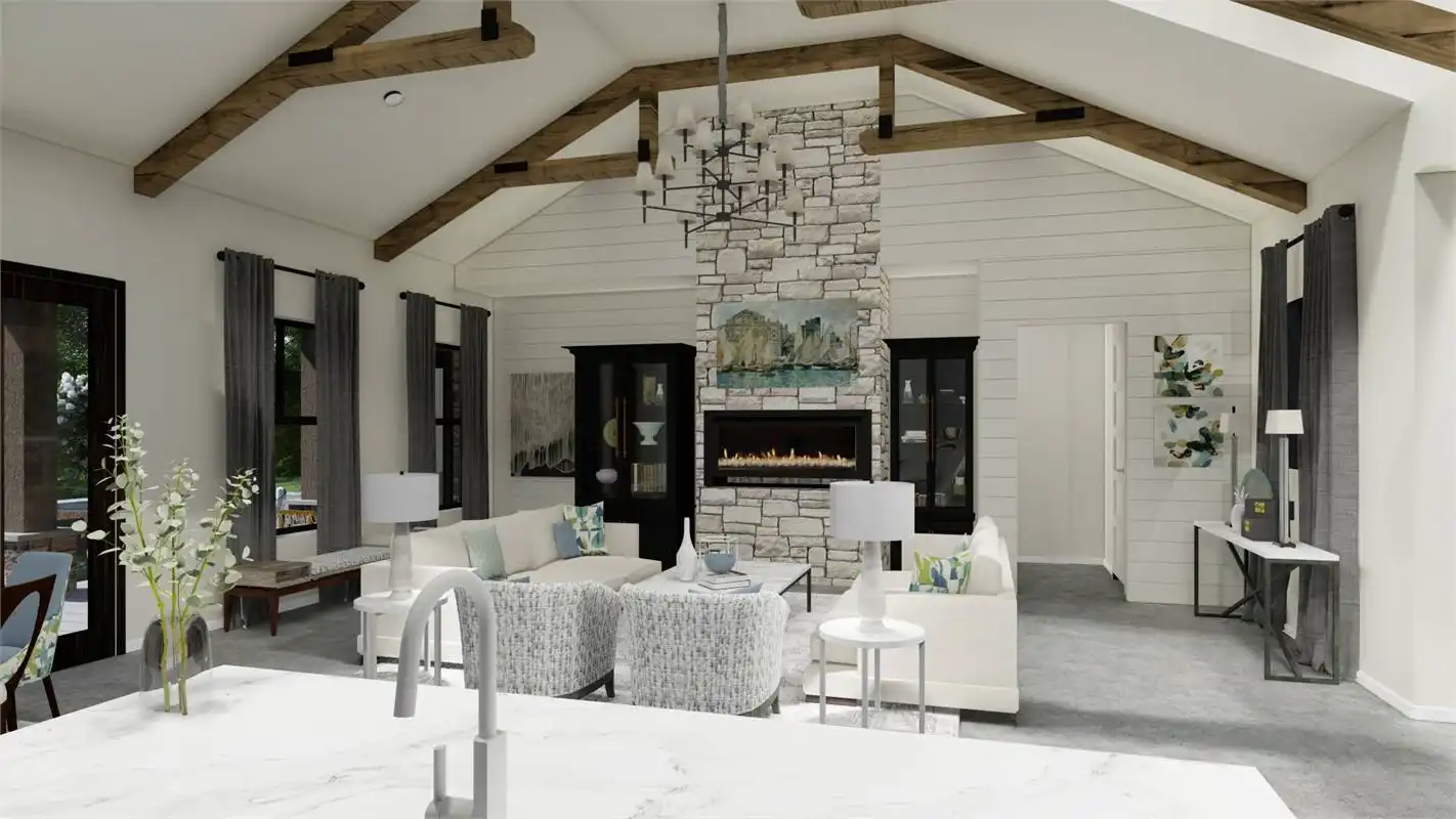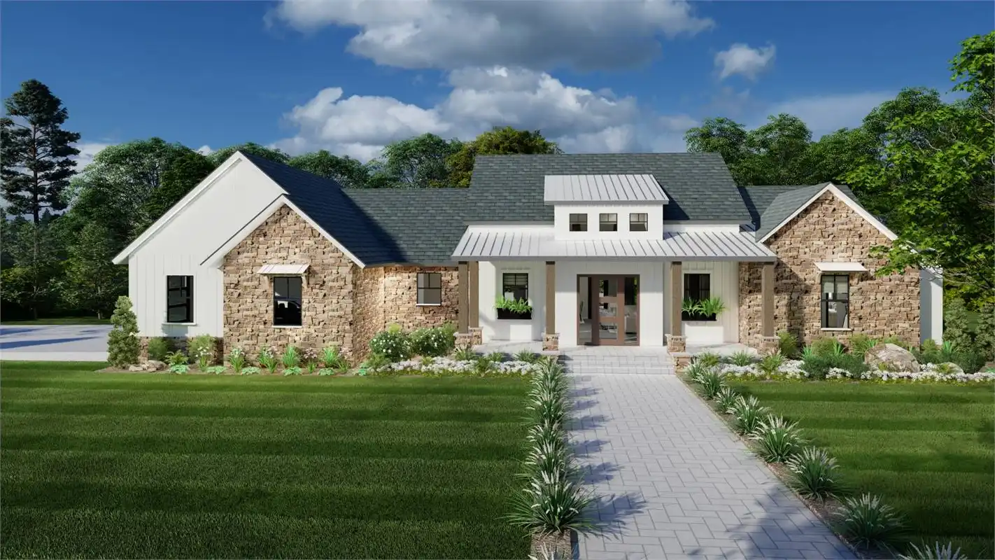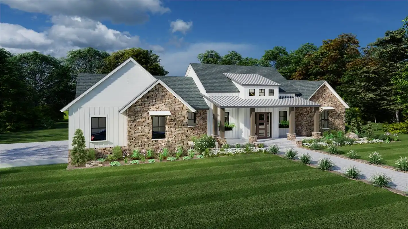 The bright and cheery facade of this rustic farmhouse design pairs perfectly with its welcoming and inclusive layout. A 2,248 square foot beauty, this 3 bed 2 bath layout offers something for everyone. A gourmet island kitchen with a walk-in pantry for the chef and a dining room and grand family room for the entertainer. No matter what, this home is ready for anything. Plus, there is privacy for everyone to enjoy too. The master suite occupies its own wing of the floor plan. Along with its dual walk-in closets and spacious spa bath, this room is full of gorgeous natural light that will refresh and recharge you every morning! And speaking of bedrooms, head on over to the other end of the plan to find the auxiliary sleeping quarters, located right near the side-entry 2-car garage. These are perfect spaces for the kids and guests to stretch out and relax!