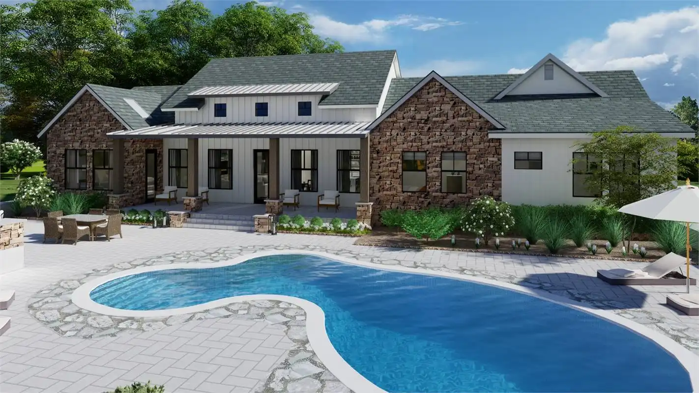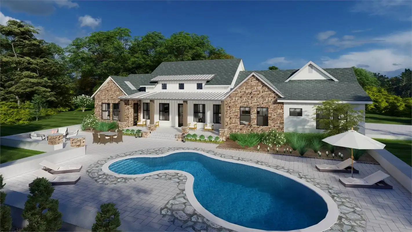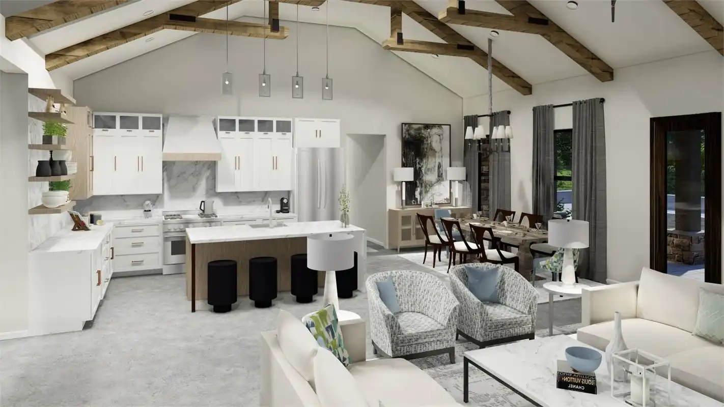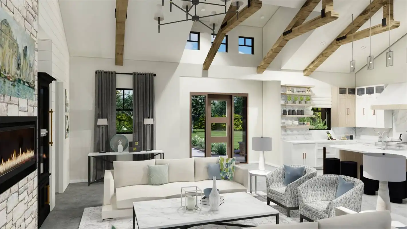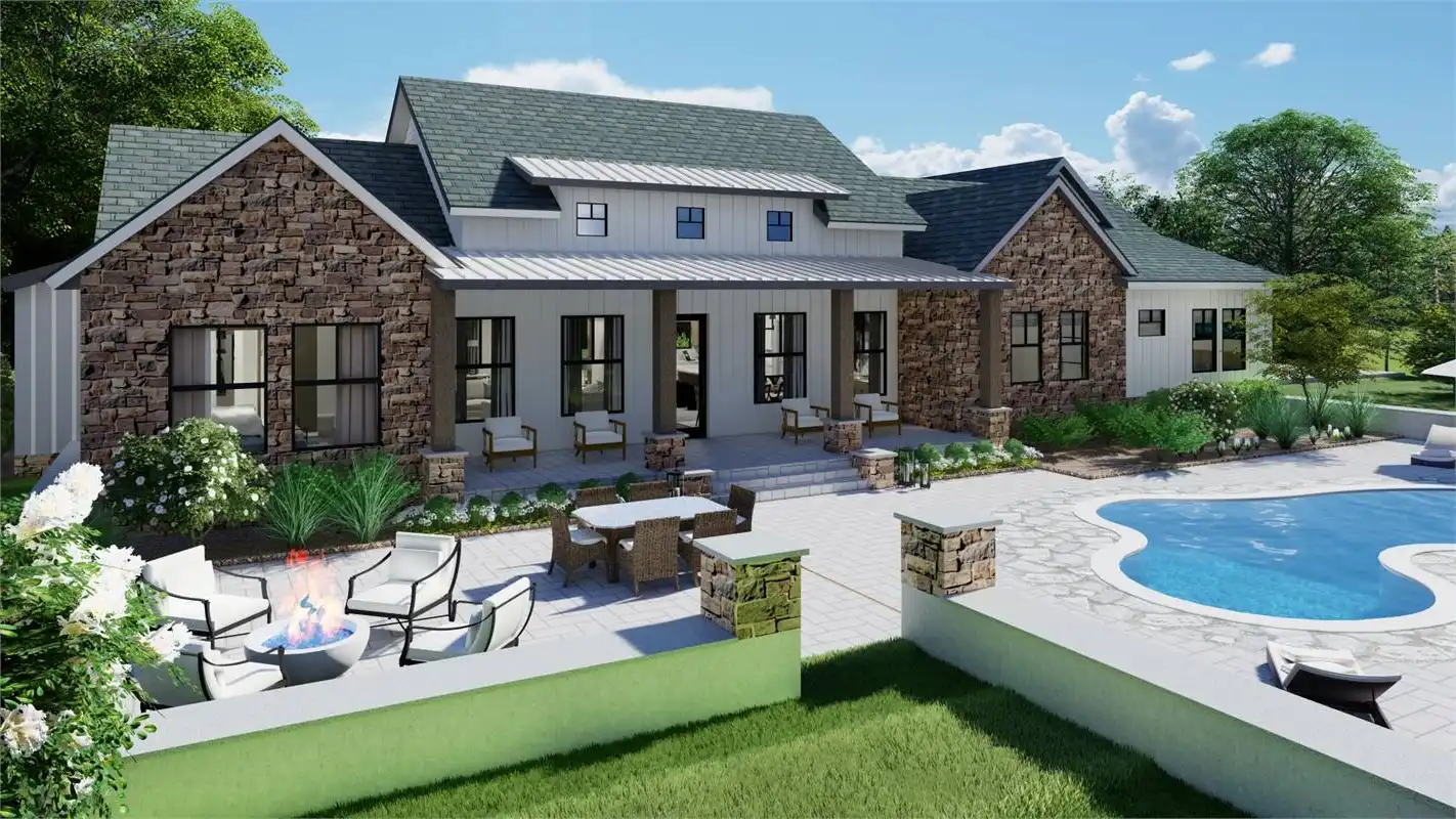 The bright and cheery facade of this rustic farmhouse design pairs perfectly with its welcoming and inclusive layout. A 2,248 square foot beauty, this 3 bed 2 bath layout offers something for everyone. A gourmet island kitchen with a walk-in pantry for the chef and a dining room and grand family room for the entertainer. No matter what, this home is ready for anything. Plus, there is privacy for everyone to enjoy too. The master suite occupies its own wing of the floor plan. Along with its dual walk-in closets and spacious spa bath, this room is full of gorgeous natural light that will refresh and recharge you every morning! And speaking of bedrooms, head on over to the other end of the plan to find the auxiliary sleeping quarters, located right near the side-entry 2-car garage. These are perfect spaces for the kids and guests to stretch out and relax!