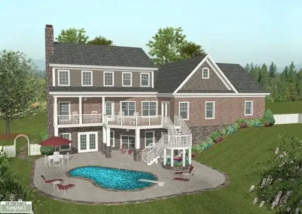 Outdoor living is enjoyed to the fullest with front and back porches and a roomy deck. We have featured a small pool in our rendering to spark the creative possibilities for your recreational space.