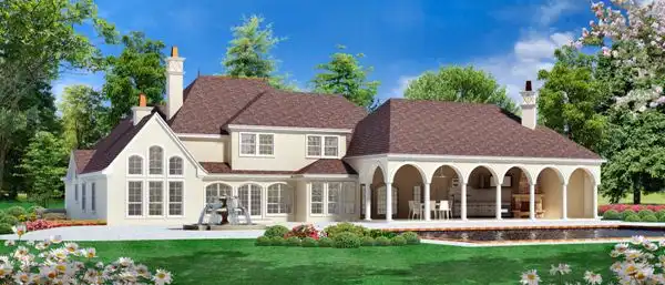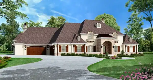 As you enter the elegant foyer from the two-story porch, you will be drawn to the gorgeous staircase and the formal living room and built-in book cases. A formal dining room with private courtyard, butlery and pantry provides ease in serving those dinner parties. The two-car garage is accessible off the butlery and is attached to a second three-car garage with both having access to the motor court and large storage room. Between the garages and the family gathering area is a secondary bathroom, a hobby room, and the utility room. The family gathering area is made up of the kitchen, breakfast nook and family room. The gourmet kitchen provides a free-standing island for additional counter space, and a peninsula bar that separates the kitchen from the family room and breakfast nook. The luxurious master suite is features a sitting area and built-ins, a lavish master bathroom with his and hers vanities, separate shower, tub, and large wardrobe. The outdoor lounge offers a cooking grill and fireplace, a perfect spot for family and friends to hangout on summer nights. The second floor houses three family bedrooms, all are complete with walk-in closets and a built-in desks; two bedrooms share a Jack and Jill bathroom, while the third has a private full bathroom. A bonus room with window seat, loft, utility room and built-ins wrap up this level. On the lower level you'll find a sport court, exercise room, lounge, arcade, bar, card room, two large bonus rooms, and a media room with an equipment room. You can access all three levels by stairs or by an elevator which can get you around this luxury European home.