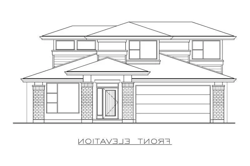 House Plan 9011 is a contemporary one-and-a-half-story home with 2,202 square feet of well-planned space. The open great room features soaring ceilings, a gas fireplace, and large windows overlooking a covered rear patio. The kitchen includes a prep island, pantry, and easy access to the dining area and patio. The private primary suite offers a luxurious en-suite with a soaker tub, double sinks, and walk-in closet. Upstairs, three secondary bedrooms and a shared bath provide ample space for family or guests. Brick and wood accents add charm to the stylish exterior, making this home a standout in any neighborhood.