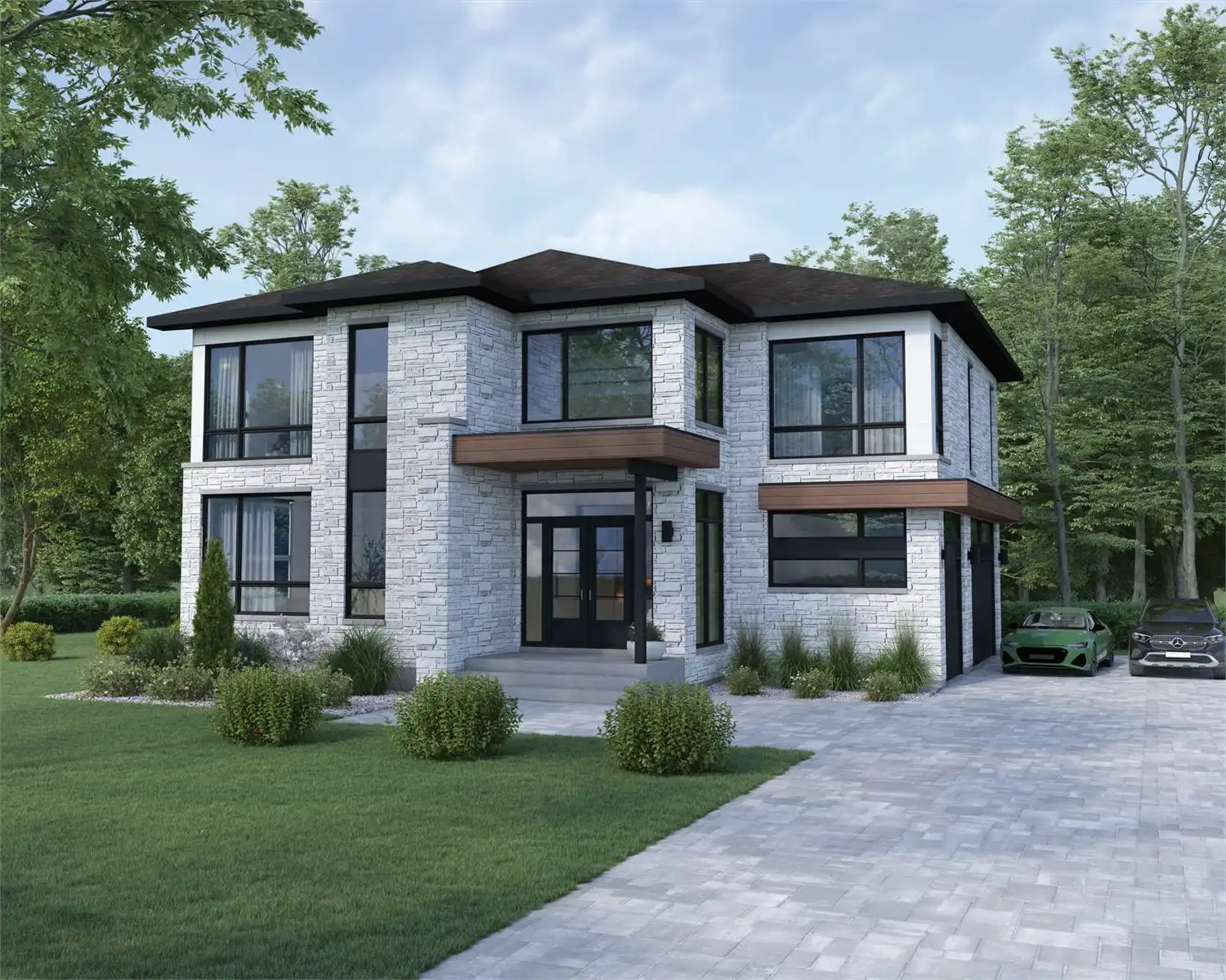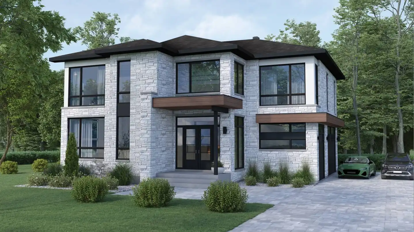 Check out the luxurious appeal of House Plan 9017! This 3,316-square-foot home offers four bedrooms and two-and-a-half bathrooms across two stories. The main level features all the common areas, including the two-story living space, galley island kitchen with a huge walk-in pantry, dining space, and the office. There's also a three-car side-entry garage and some outdoor living in back. All the bedrooms are upstairs and include an amazing suite and three bedrooms that share a hall bath. The laundry is also located upstairs for convenience!