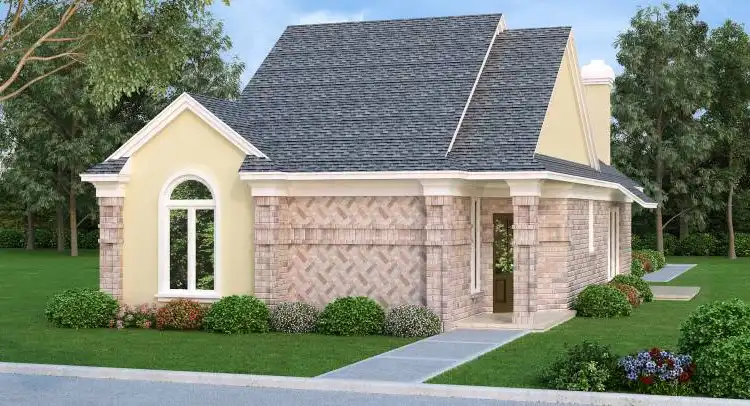 One side of the plan is windowless intended for zero lot line applications. All of the glass is oriented to the opposite side of the plan and provides great privacy if oriented to the windowless side of the adjoining patio home. With so much glass, the rooms are airy and bathed in natural light further enhanced by the large skylight in the living room sloped ceiling. The living room also has an energy efficient wood burning fireplace perfect for spending cozy nights at home. The master suite is fit for a king and everything is king sized. There are two huge walk-in closets, built-in desk and books, a plush bath with twin vanities, soaking tub, private toilet, separate shower, linen storage. The secondary bedroom is also generously sized and complete with a walk-in closet and access to a luxury bath. Designed for the gourmet cook, the kitchen is open to the living room and comes complete with a serving bar. Designed especially for very narrow lots, this luxury 2 bedroom is best suited for patio home developments.
