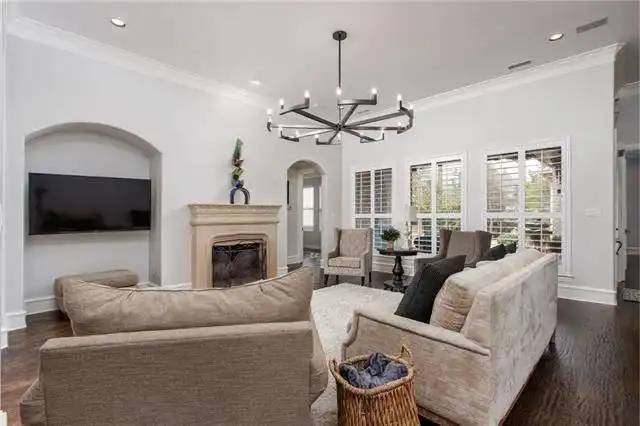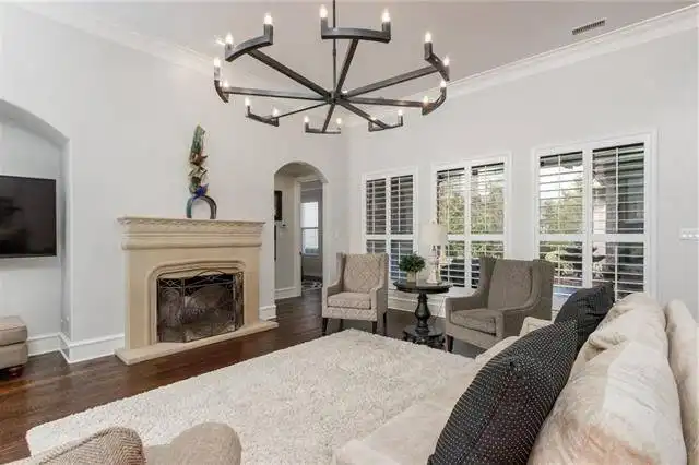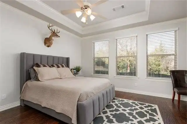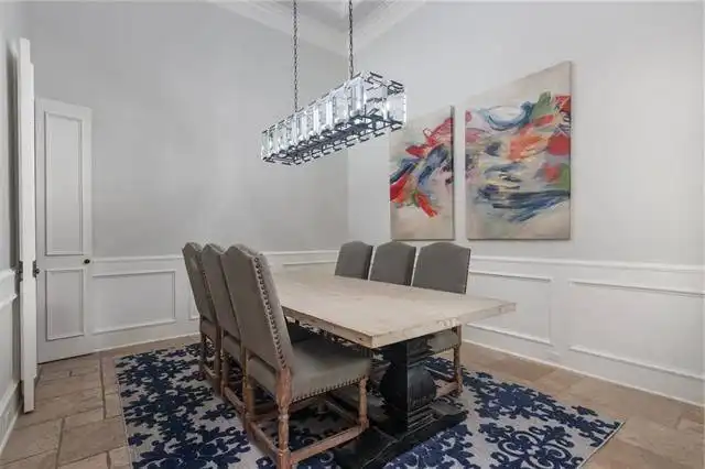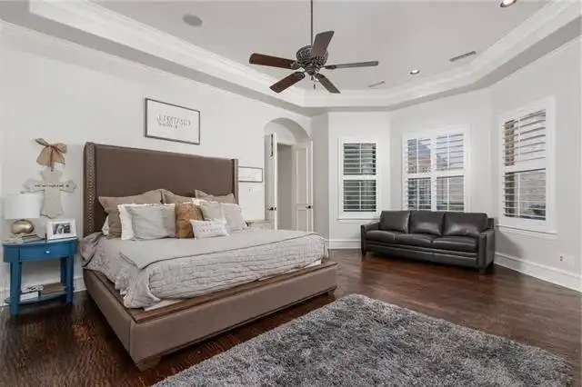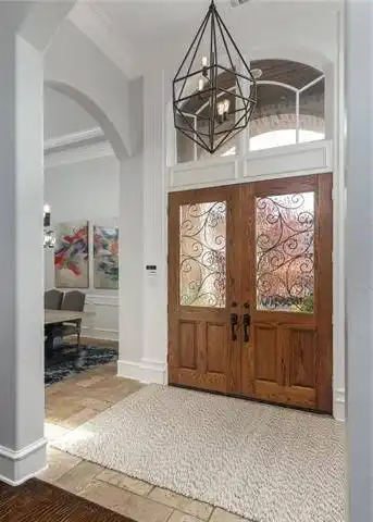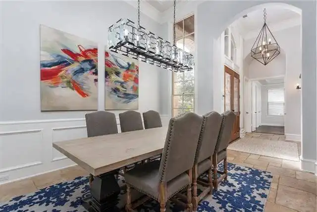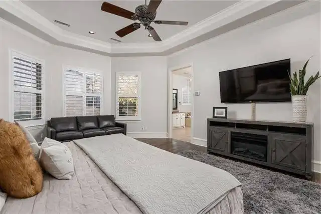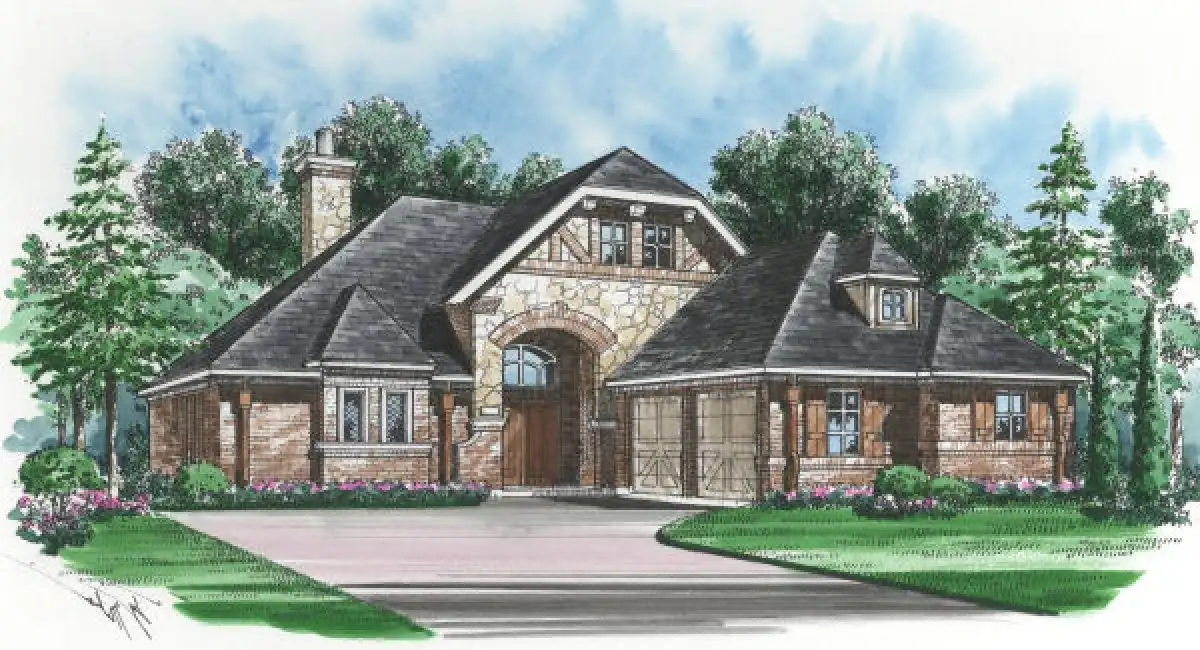 This luxury home, perfect for a narrow lot, draws its inspiration from Texas-style. Enter the home through the front porch and into the foyer, which is flanked by two family bedrooms with walk-ins and full baths on one side and the dining room on the other. For ease in service, the dining room has access to the kitchen and pantry. Find the utility room between the kitchen and two car garage. The family area contains the family room, gourmet kitchen, and breakfast area. A fireplace warms the family room, which also has access to the patio. Enjoy the extra counter space provided by the free-standing island in the gourmet kitchen, as well as an eating bar offered to the family room and breakfast area. Completing the home is the luxurious master suite. This suite offers a bay window, trey ceiling, and lavish master bath including his and her vanities, corner garden tub and separate shower, and a large wardrobe.