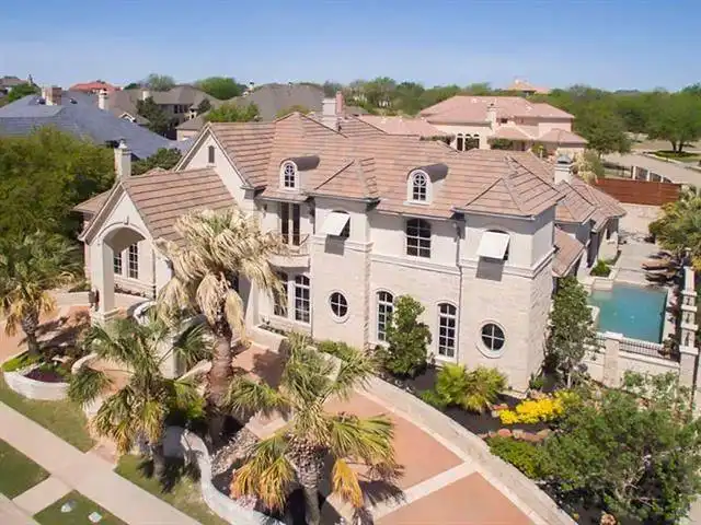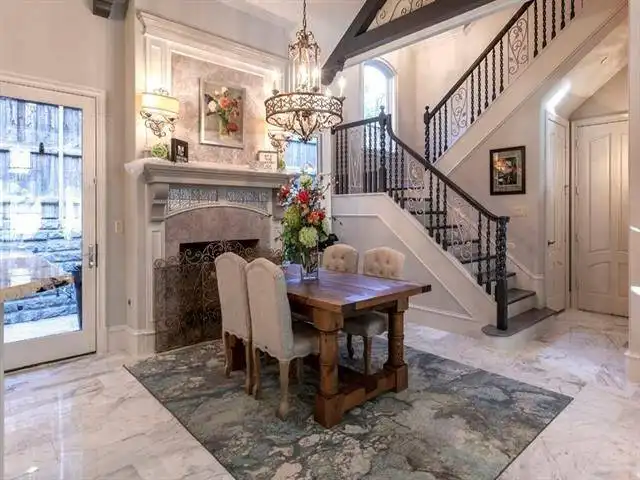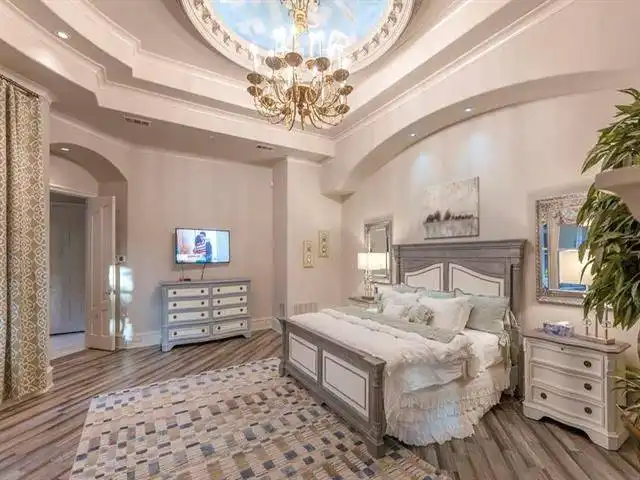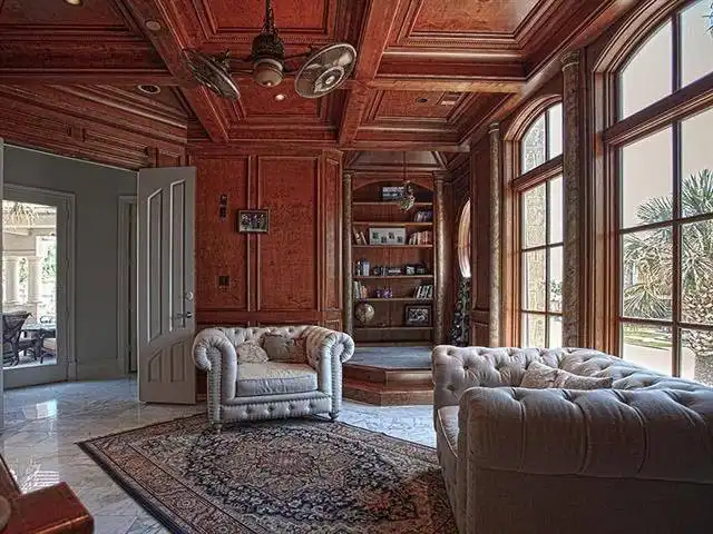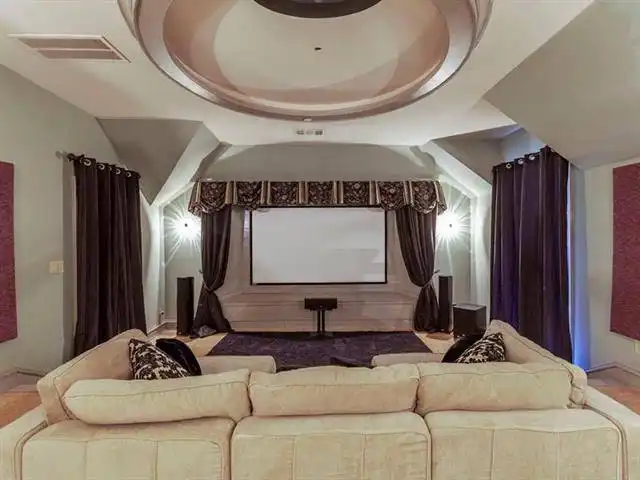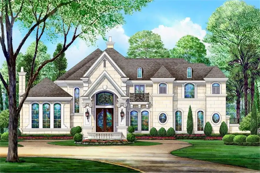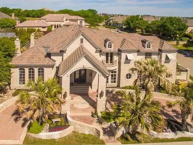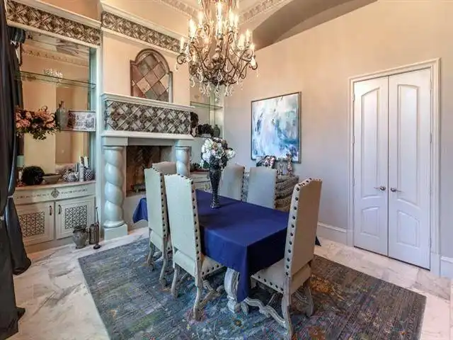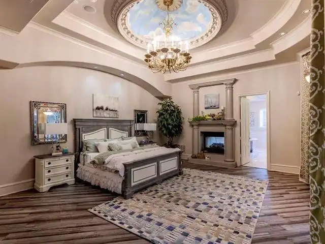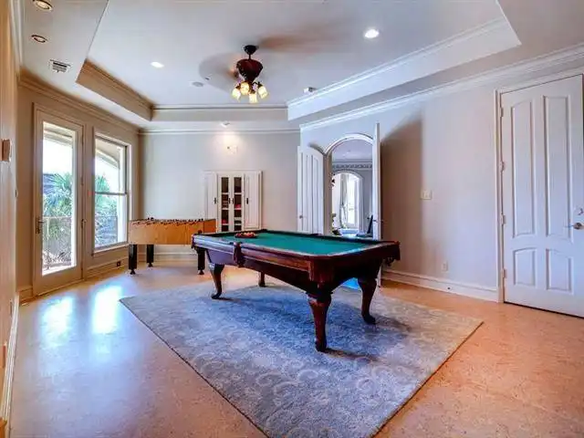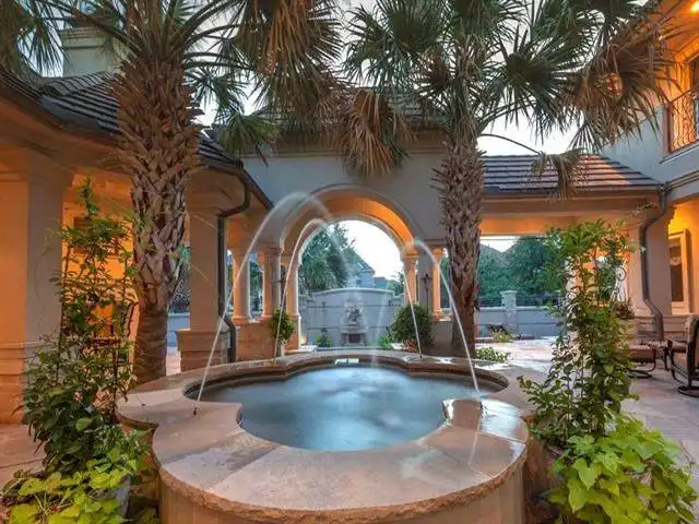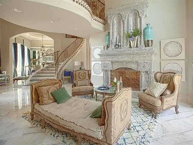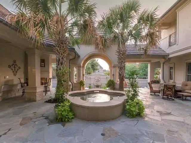 This luxury mansion offers styles similar to European Victorian homes. Enter into a two-story foyer which features a curved staircase and access to music room. The family room, featuring a bar and wine room, also offers a two-way fireplace shared with the formal living area. The kitchen and breakfast area share a vaulted ceiling as well as a breakfast bar. A stand-alone island offers more counter space for the kitchen. The butlery connects the kitchen to the dining room for ease in serving family dinners. Sitting in the front corner of the home is a quiet study as well as a family bedroom with full bath and walk-in closet. A beautiful center fountain sits in the courtyard, along with large decorative pillars enclosing the perimeter of the lanai and patio. Enjoy entertaining in the outdoor lounge, which offers a corner fireplace for the colder seasons. The second floor offers three family bedrooms with balconies, full baths, and walk-in closets that share space with a game room with a bar area, a bonus room, reading room, and storage rooms.