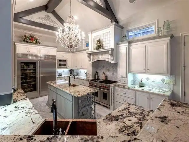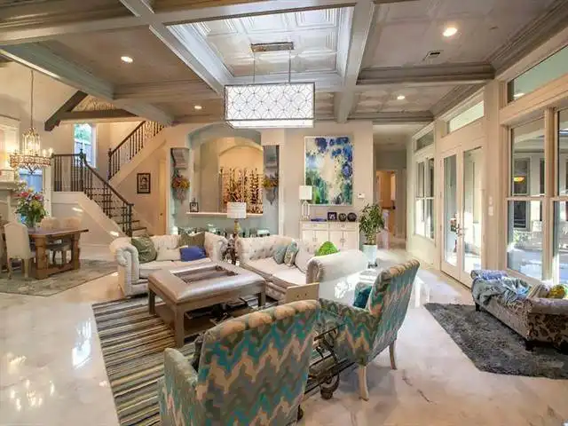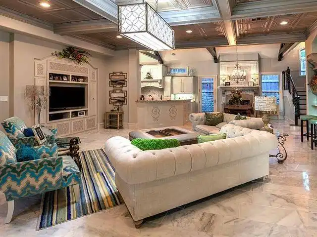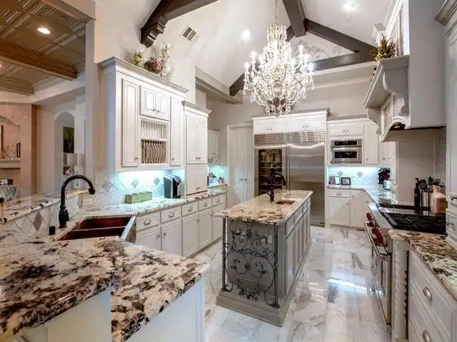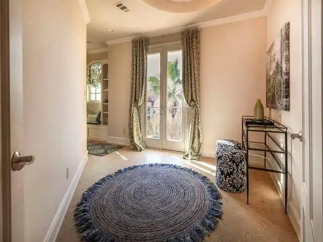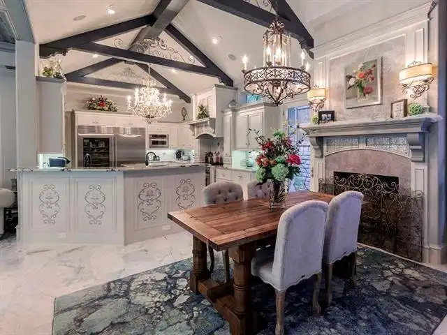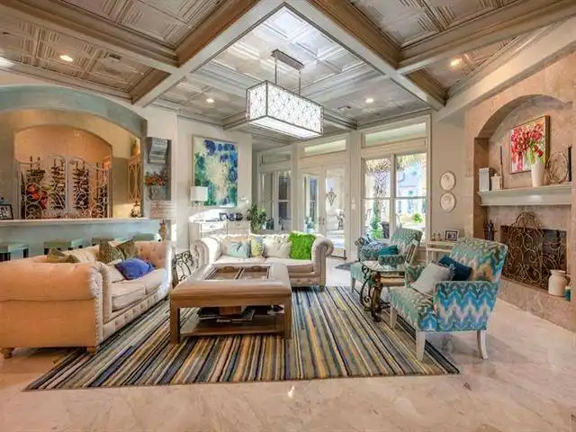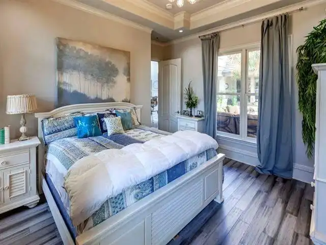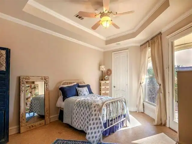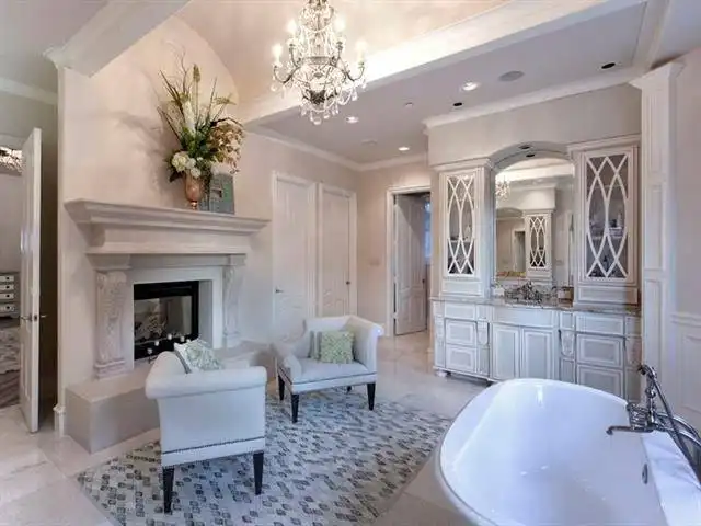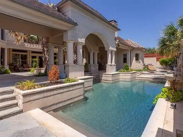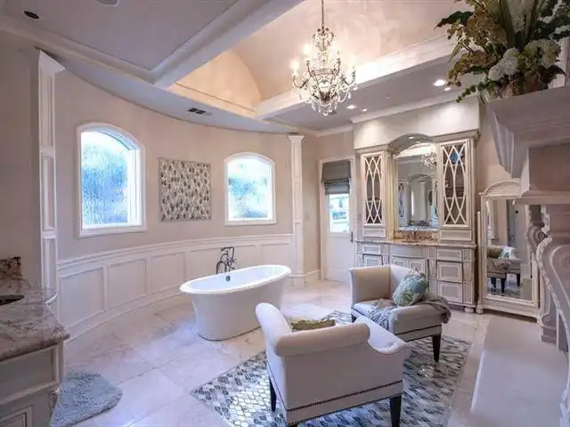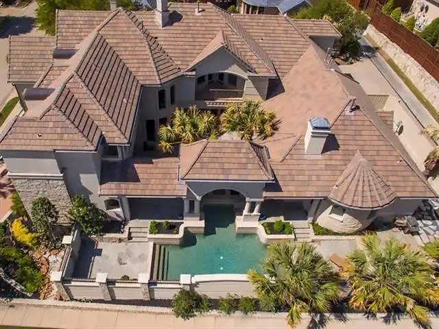 This luxury mansion offers styles similar to European Victorian homes. Enter into a two-story foyer which features a curved staircase and access to music room. The family room, featuring a bar and wine room, also offers a two-way fireplace shared with the formal living area. The kitchen and breakfast area share a vaulted ceiling as well as a breakfast bar. A stand-alone island offers more counter space for the kitchen. The butlery connects the kitchen to the dining room for ease in serving family dinners. Sitting in the front corner of the home is a quiet study as well as a family bedroom with full bath and walk-in closet. A beautiful center fountain sits in the courtyard, along with large decorative pillars enclosing the perimeter of the lanai and patio. Enjoy entertaining in the outdoor lounge, which offers a corner fireplace for the colder seasons. The second floor offers three family bedrooms with balconies, full baths, and walk-in closets that share space with a game room with a bar area, a bonus room, reading room, and storage rooms.