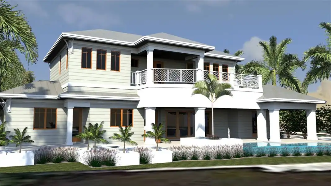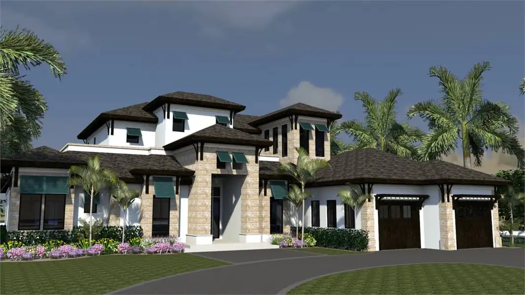 A distinct and tropical vibe can be found throughout this impressive Mediterranean-inspired home. Focused on giving you the best that life has to offer, this 4,080 square foot plan was designed to mimic some of the world's most exclusive spa resorts. And with 4 bedrooms and 5 bathrooms, along with tons of other great features, there is plenty of space for everyone to fully enjoy the whole home. From the open main areas of the grand kitchen and massive living room, to the more intimate sleeping quarters, each one of which has its own bathroom suite, this design has you covered. Some other highlights include the first floor master with its dual walk-in closets and spacious spa bath, the private study, the 3-car garage, and even an upstairs bonus room with a built-in wet bar! And check out that back yard space. Perfect for adding a pool now or in the future if the budget allows!