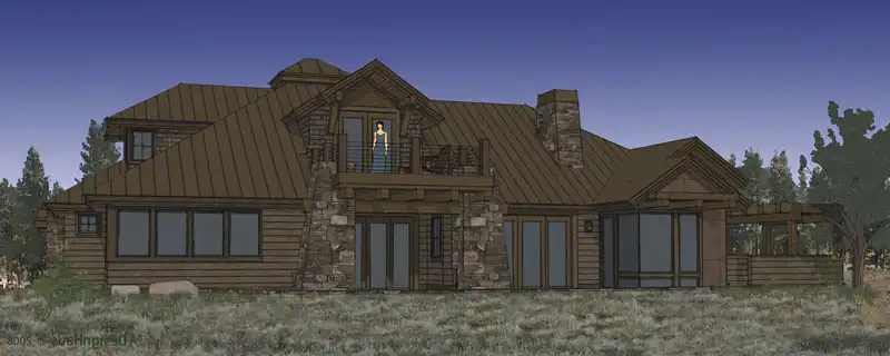 This two-story bungalow house plan is rustic and attractive. The layout of the home plan may surprise you with its two beautiful master suites! Invite some friends over for a game of charades in the central great room, complete with a crackling fireplace. The family chef will love the open kitchen, which includes snack space for two. The dining area is large enough for holiday feasts. Enjoy dessert and coffee in the outdoor living area! When you want to unwind for a while, escape to the peaceful den with a good book. The bonus room on the upper floor would be great for study or conversation.