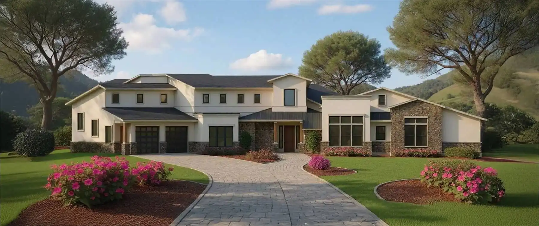House Plan 9075 is a thoughtfully crafted contemporary home designed to complement scenic, sloped, or view lots. The layout features 3 bedrooms and 2.5 bathrooms, with the primary suite on the main floor for convenience and privacy. The open great room, casual dining area, and expansive covered porches encourage everyday relaxation and memorable entertaining. A home office and mudroom streamline daily routines, while the loft and workout space upstairs provide versatility for work, hobby, or wellness needs. Bedrooms 2 and 3 are placed in their own wing for privacy, making the design ideal for families or hosting guests. The courtyard entry and 3-car garage add curb appeal and functional storage. This plan blends contemporary styling with warm, livable comfort.