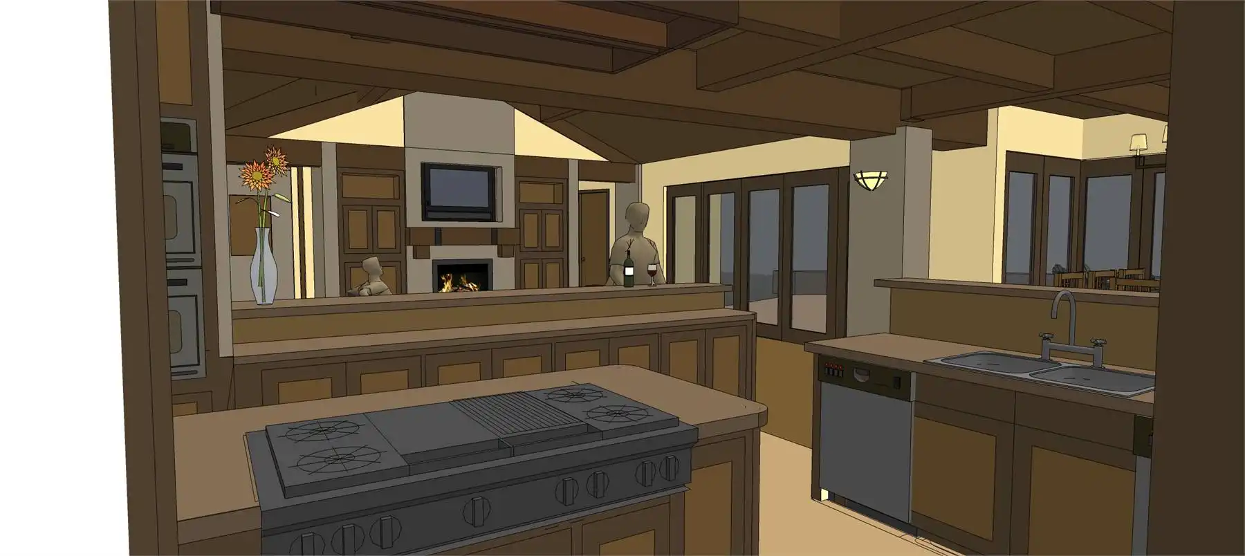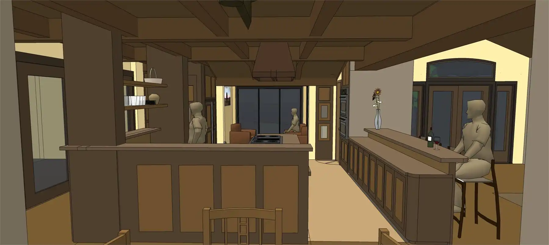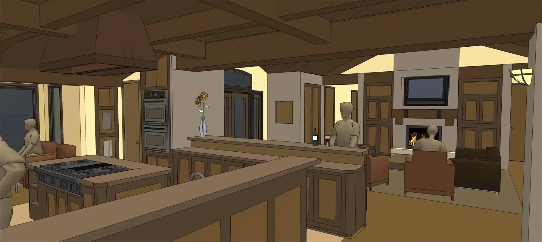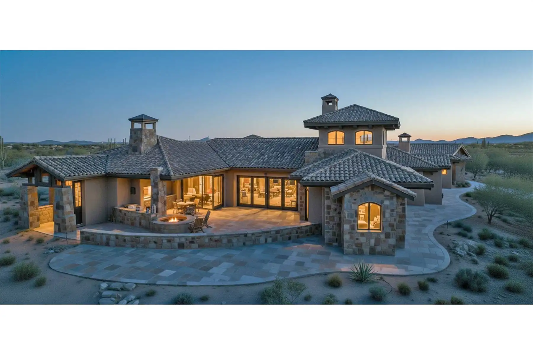 An attractive façade welcomes guests to this three-bedroom Tuscan design, where each bedroom is actually a master suite! The spacious great room shows off a fireplace and a curved bar. A nearby office is topped by a unique tower room. The island kitchen leads to a fabulous sun terrace. More outdoor areas are found to the "west" of the great room.