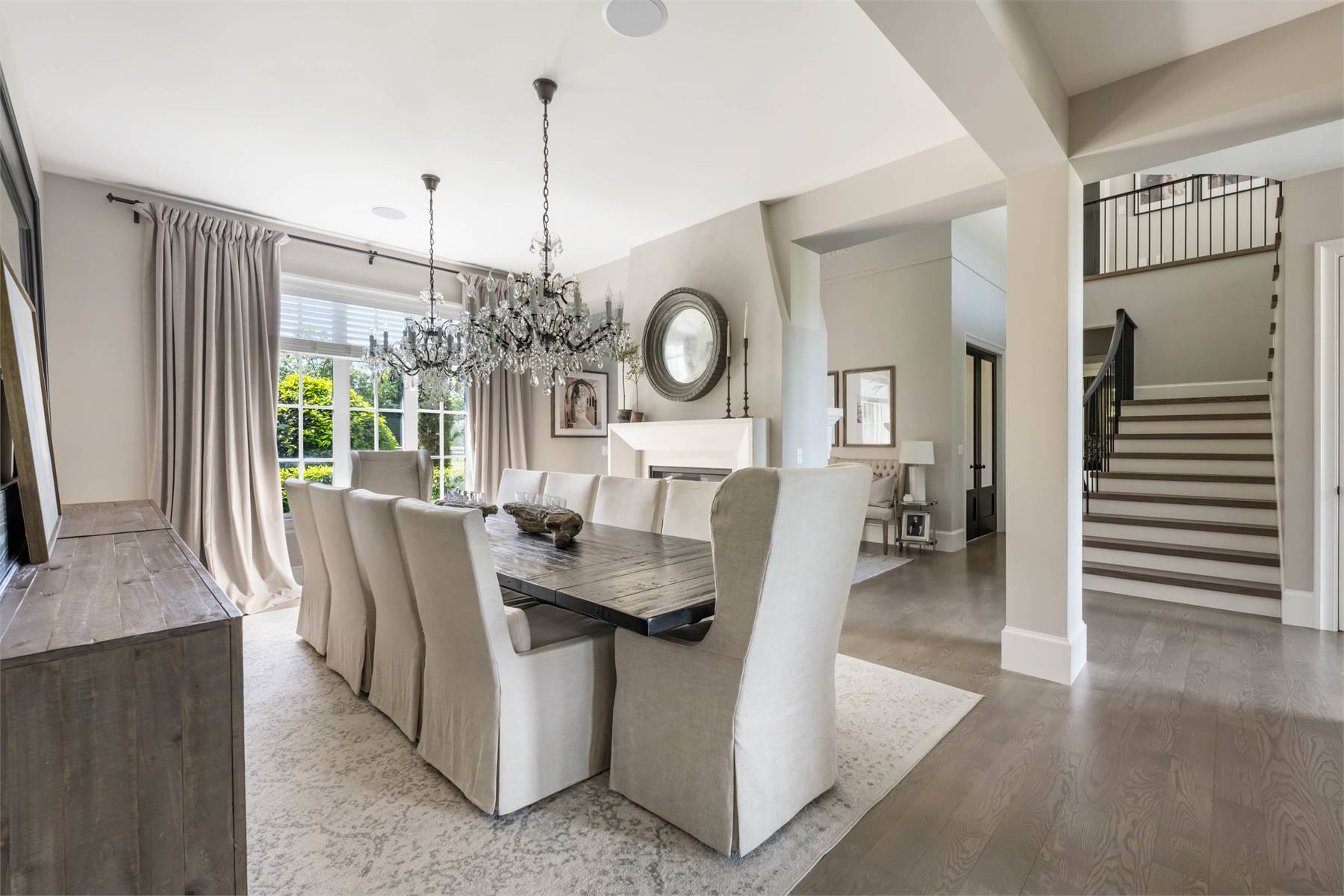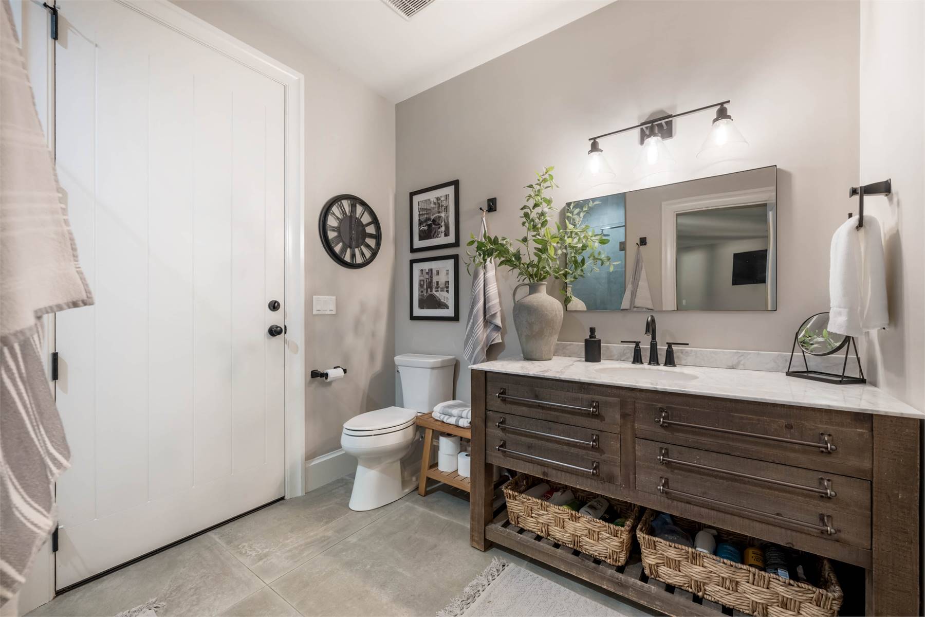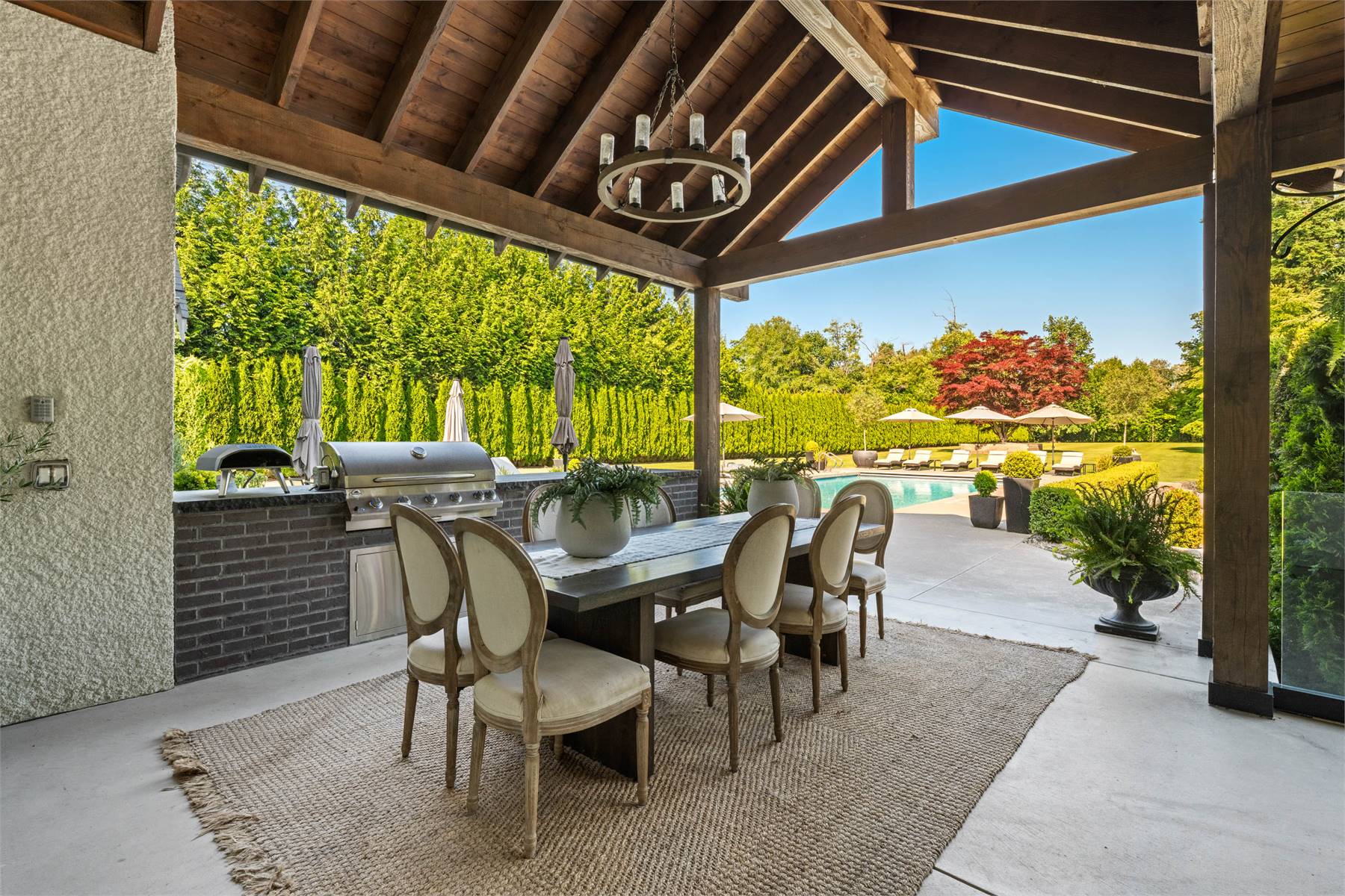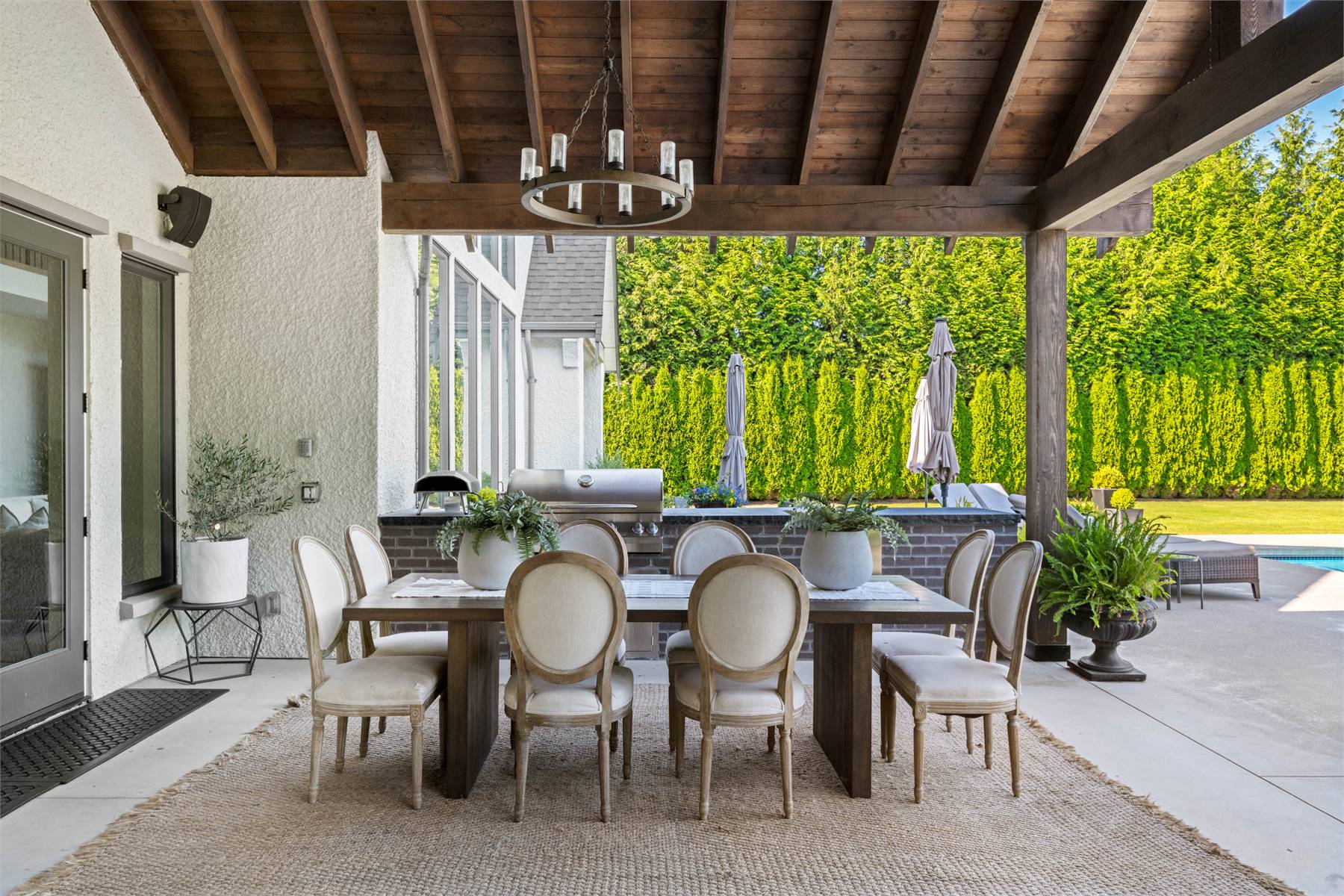 Welcome to this stunning European-inspired residence where elegance and luxury seamlessly intertwine, creating an environment of refined indoor coziness and serene outdoor relaxation and recreation. Upon entering, the home immediately embraces you with natural light, continued through to the luminous two-story great room. The fluid design leads to a sophisticated kitchen, equipped with a spacious prep island and extensive storage, perfect for culinary aficionados. The main level also features a serene primary bedroom, complete with a private porch and spa-like ensuite for ultimate relaxation. Ascend to the upper floor to find five additional bedrooms and a versatile bonus room, offering both comfort and adaptability, complemented by a distinct breezeway-connected double garage with potential for additional flex space above.