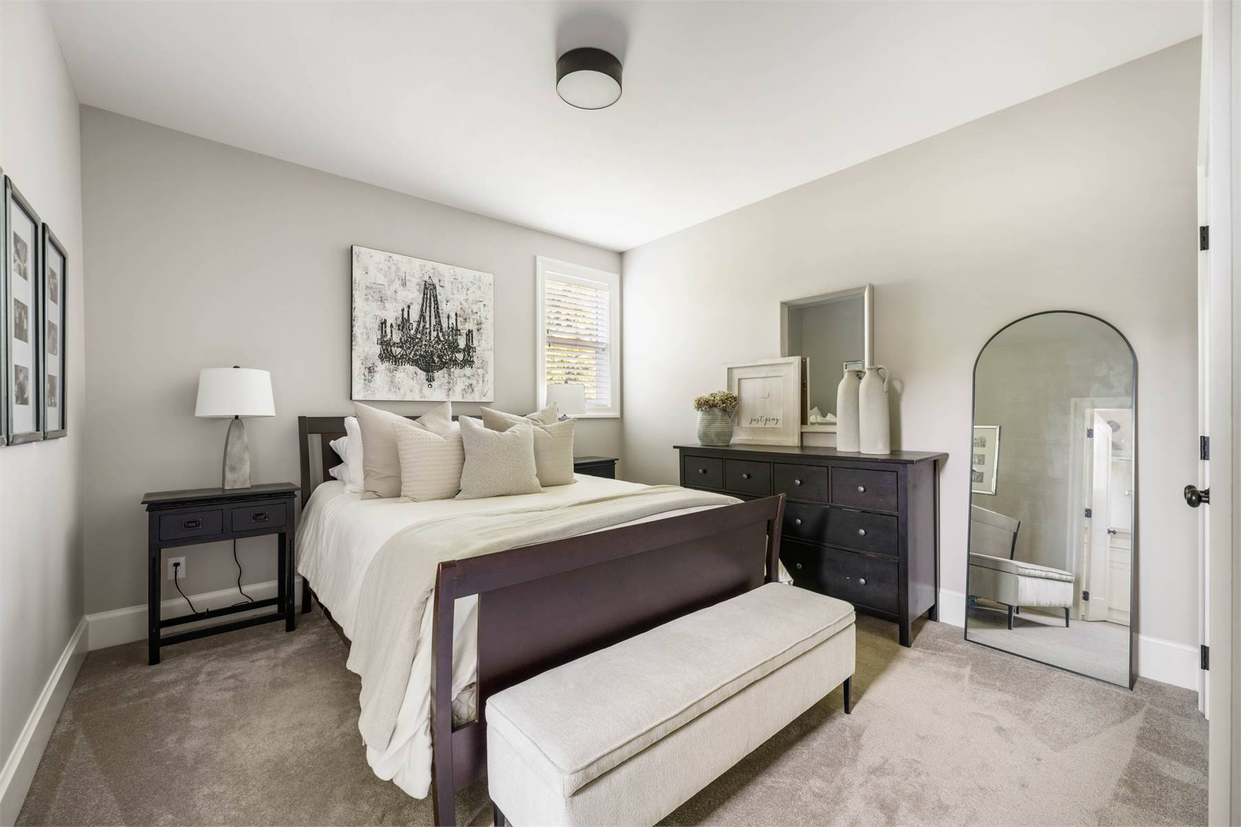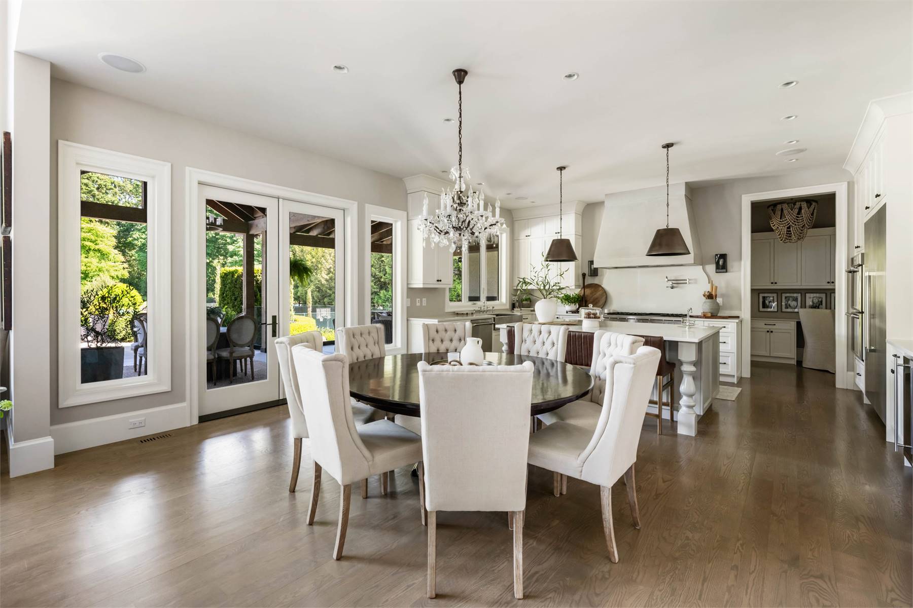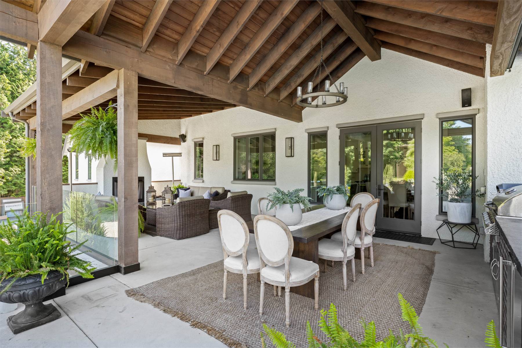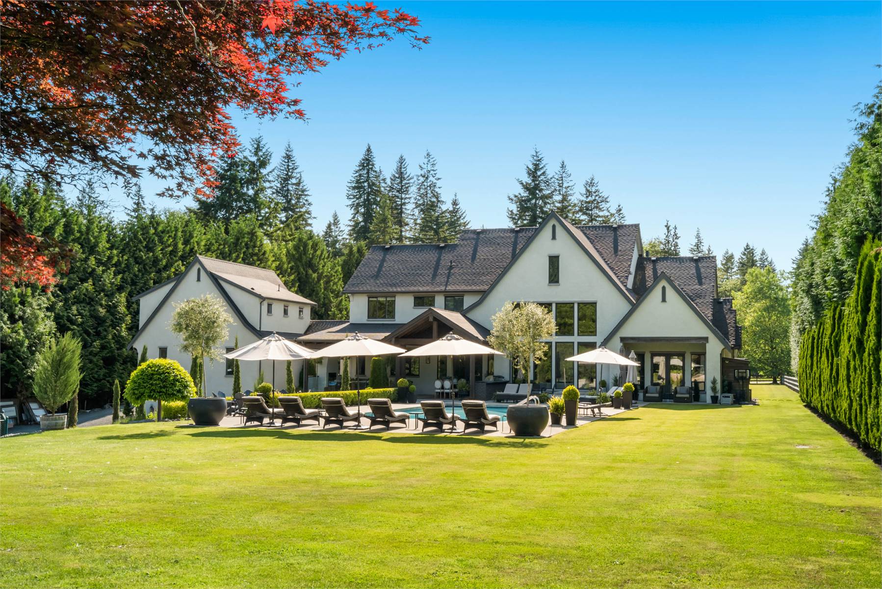 Welcome to this stunning European-inspired residence where elegance and luxury seamlessly intertwine, creating an environment of refined indoor coziness and serene outdoor relaxation and recreation. Upon entering, the home immediately embraces you with natural light, continued through to the luminous two-story great room. The fluid design leads to a sophisticated kitchen, equipped with a spacious prep island and extensive storage, perfect for culinary aficionados. The main level also features a serene primary bedroom, complete with a private porch and spa-like ensuite for ultimate relaxation. Ascend to the upper floor to find five additional bedrooms and a versatile bonus room, offering both comfort and adaptability, complemented by a distinct breezeway-connected double garage with potential for additional flex space above.