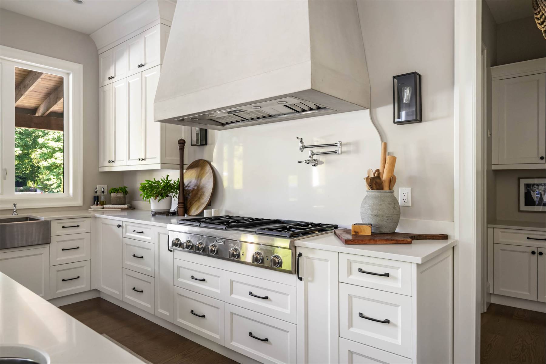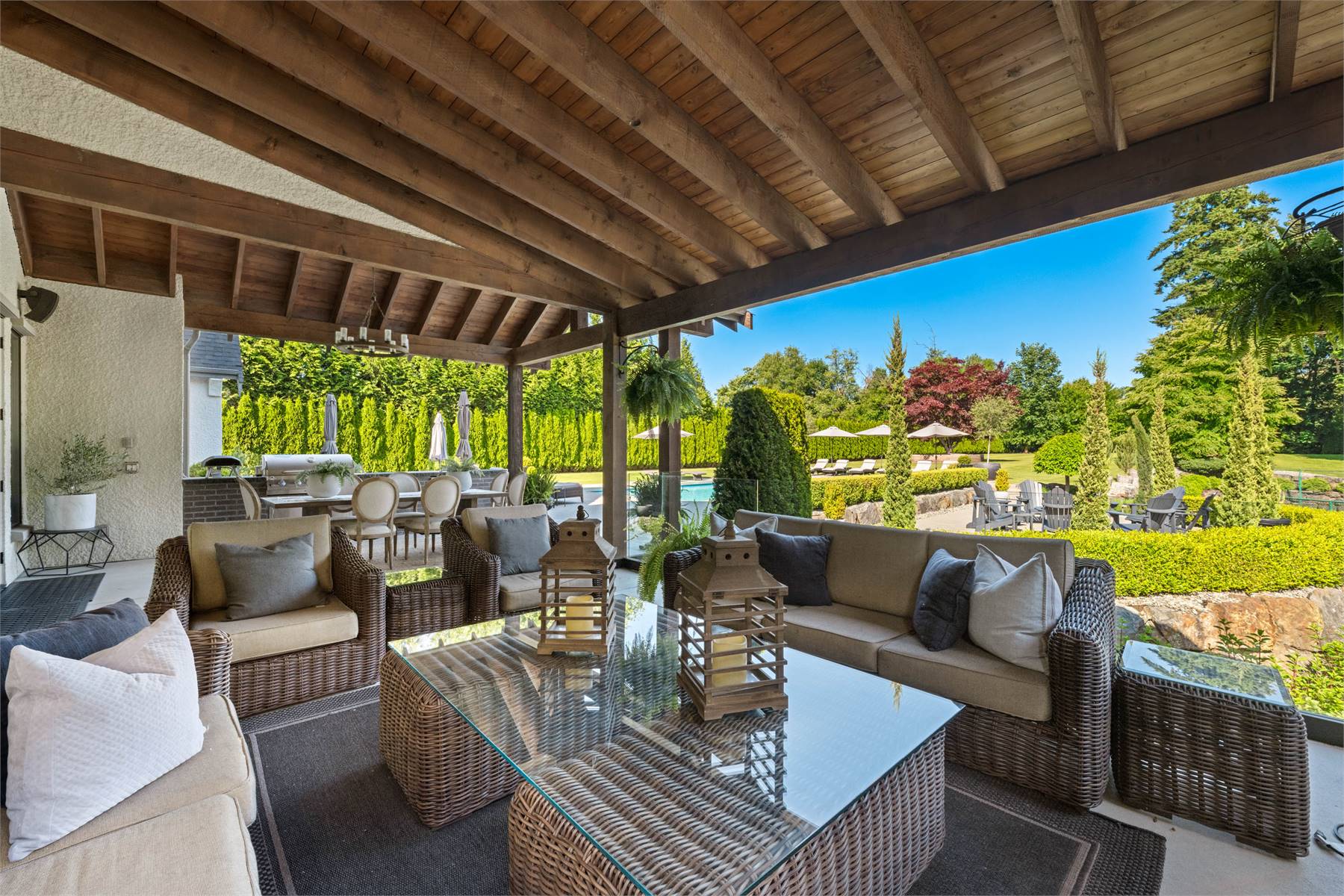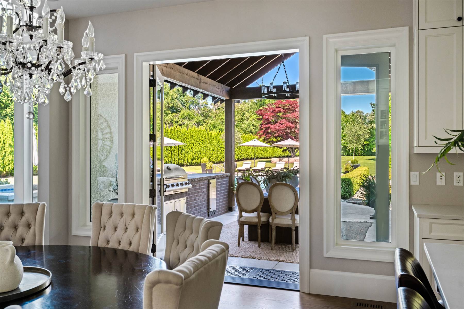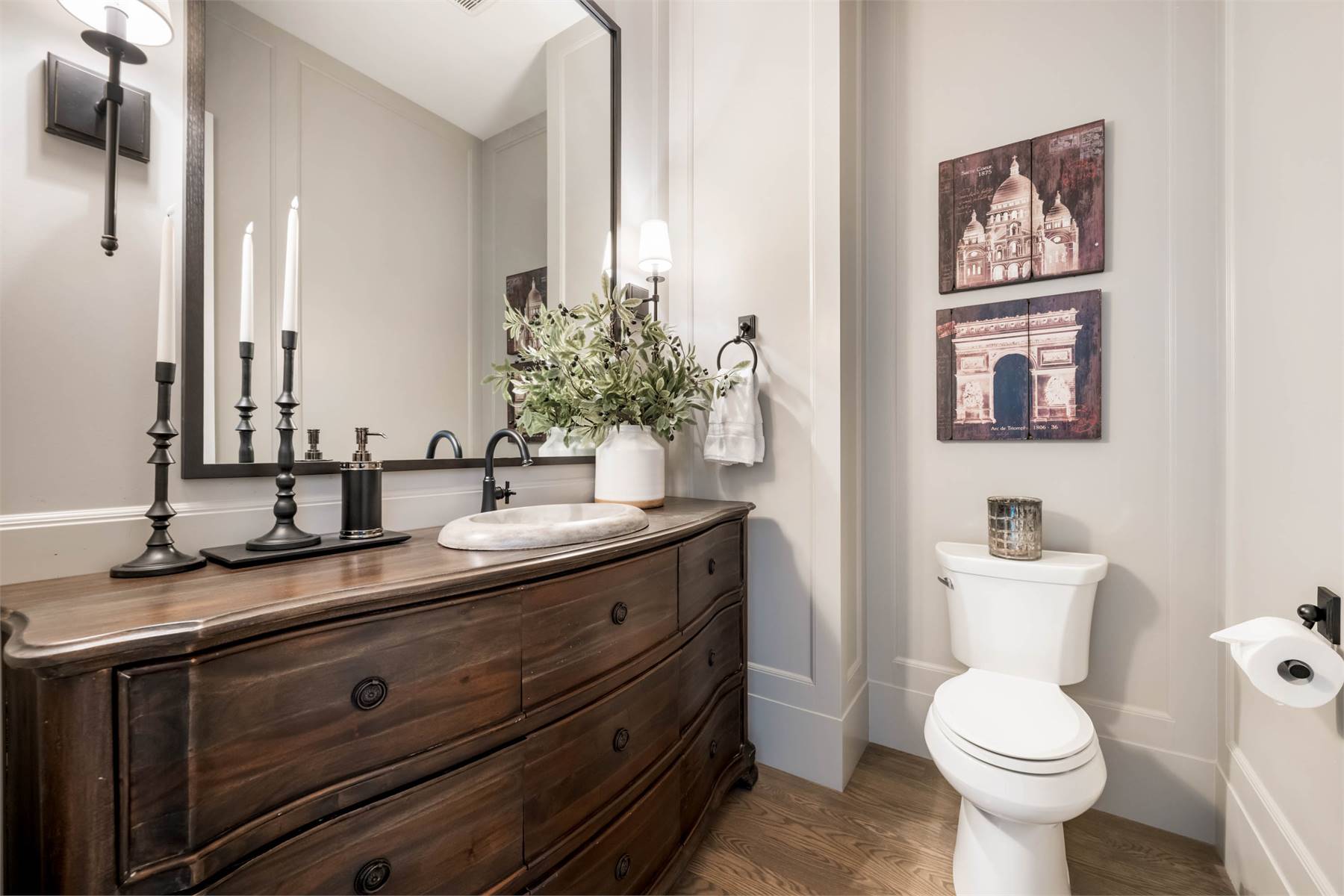 Welcome to this stunning European-inspired residence where elegance and luxury seamlessly intertwine, creating an environment of refined indoor coziness and serene outdoor relaxation and recreation. Upon entering, the home immediately embraces you with natural light, continued through to the luminous two-story great room. The fluid design leads to a sophisticated kitchen, equipped with a spacious prep island and extensive storage, perfect for culinary aficionados. The main level also features a serene primary bedroom, complete with a private porch and spa-like ensuite for ultimate relaxation. Ascend to the upper floor to find five additional bedrooms and a versatile bonus room, offering both comfort and adaptability, complemented by a distinct breezeway-connected double garage with potential for additional flex space above.