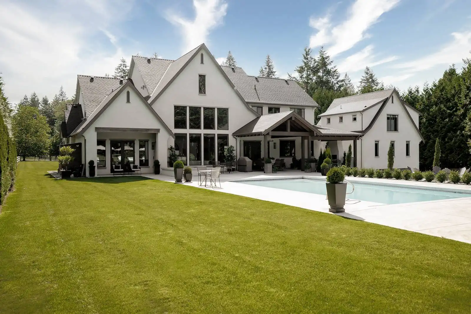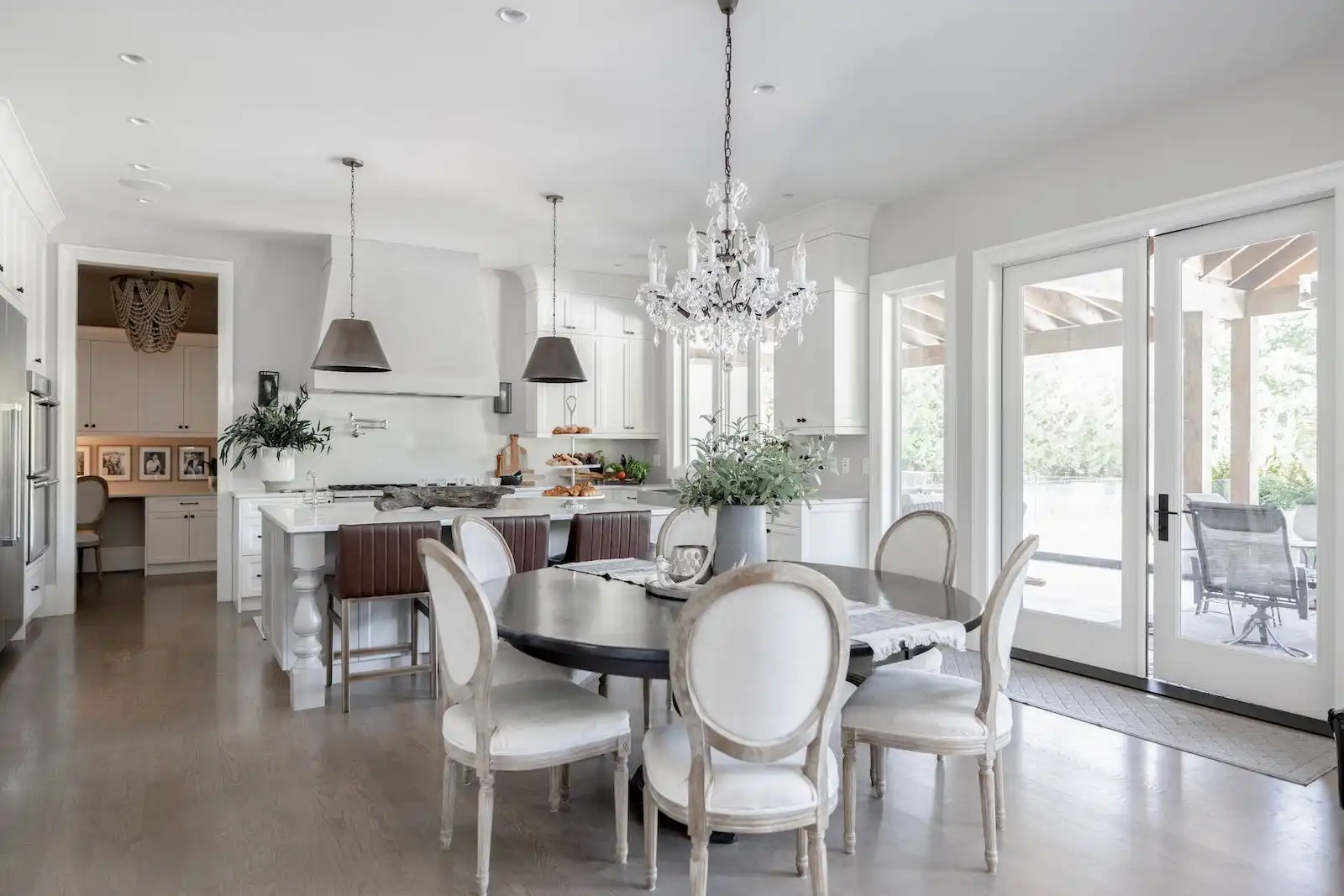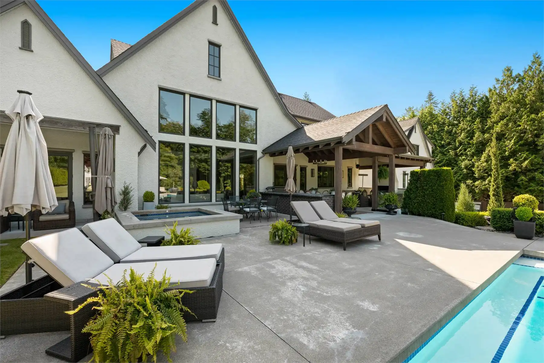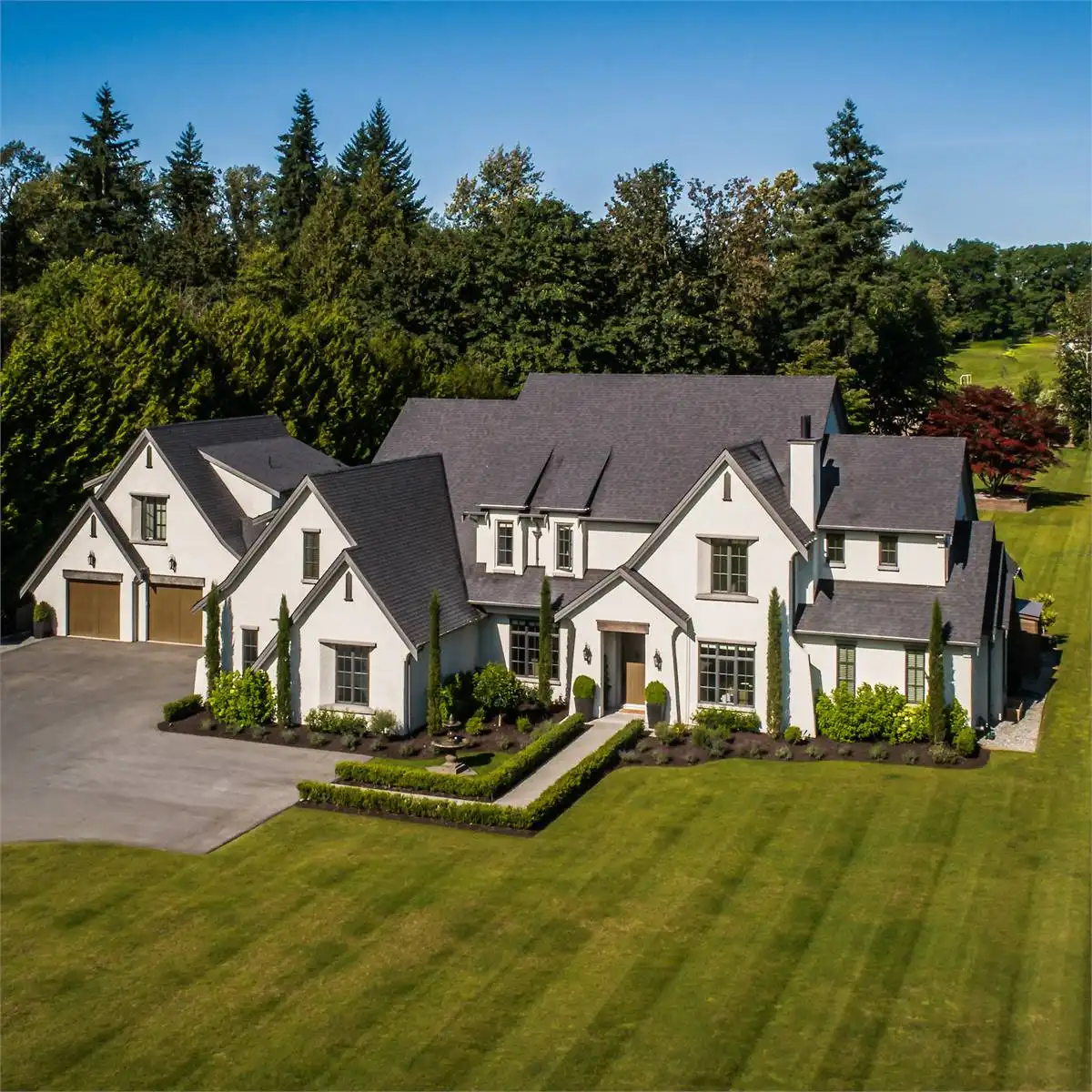 Welcome to this stunning European-inspired residence where elegance and luxury seamlessly intertwine, creating an environment of refined indoor coziness and serene outdoor relaxation and recreation. Upon entering, the home immediately embraces you with natural light, continued through to the luminous two-story great room. The fluid design leads to a sophisticated kitchen, equipped with a spacious prep island and extensive storage, perfect for culinary aficionados. The main level also features a serene primary bedroom, complete with a private porch and spa-like ensuite for ultimate relaxation. Ascend to the upper floor to find five additional bedrooms and a versatile bonus room, offering both comfort and adaptability, complemented by a distinct breezeway-connected double garage with potential for additional flex space above.