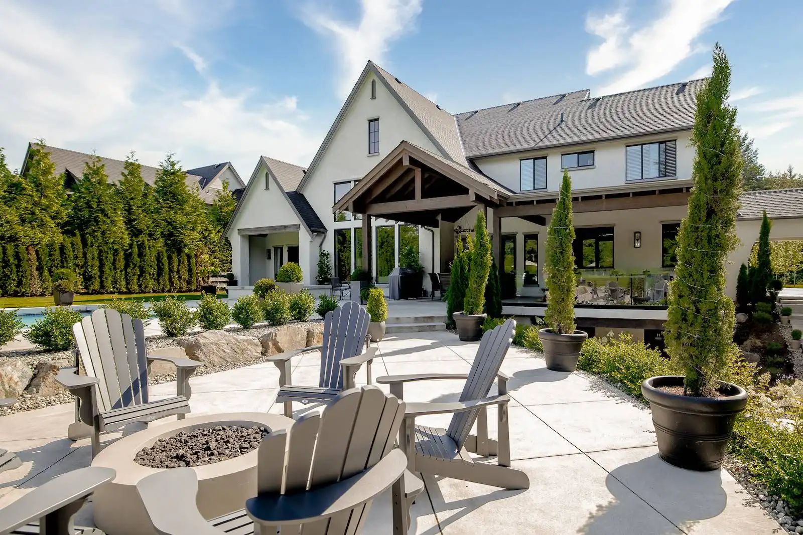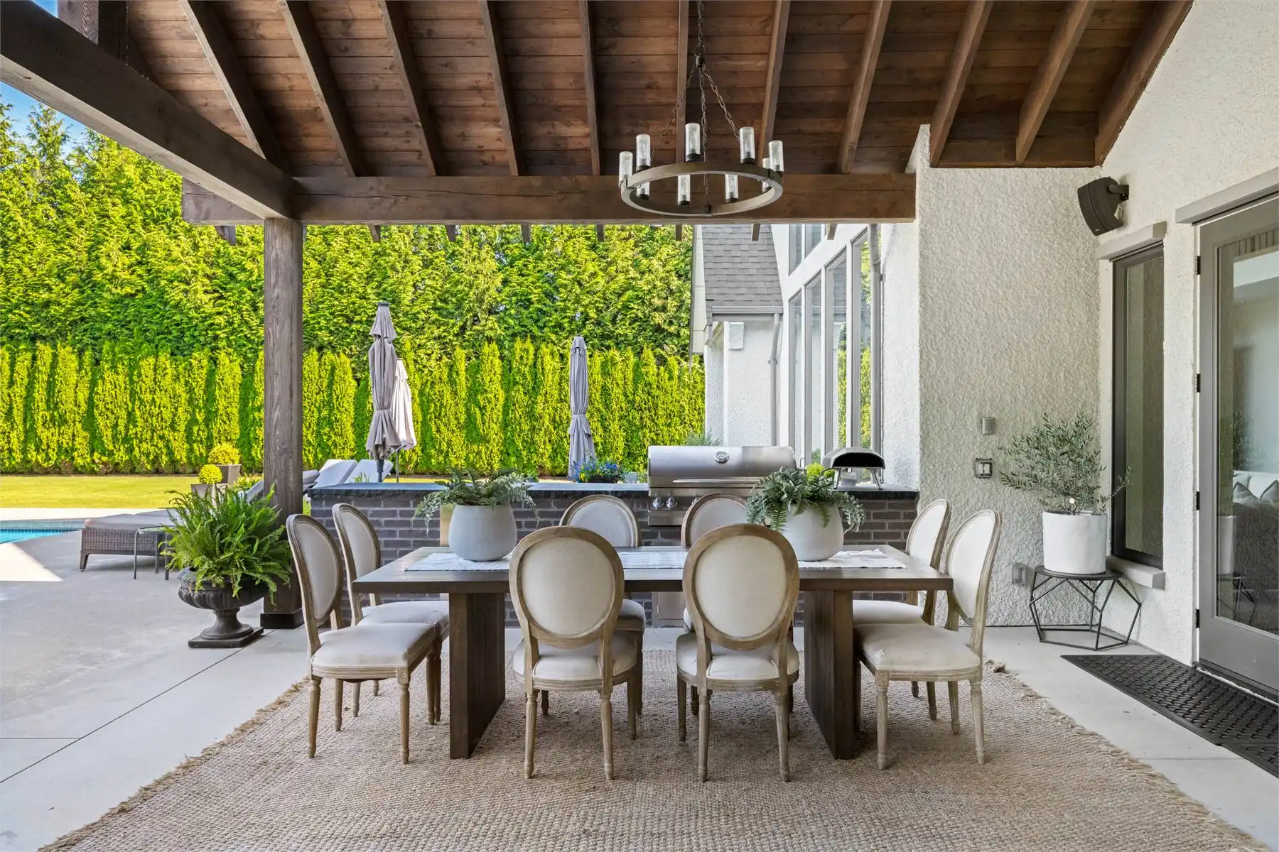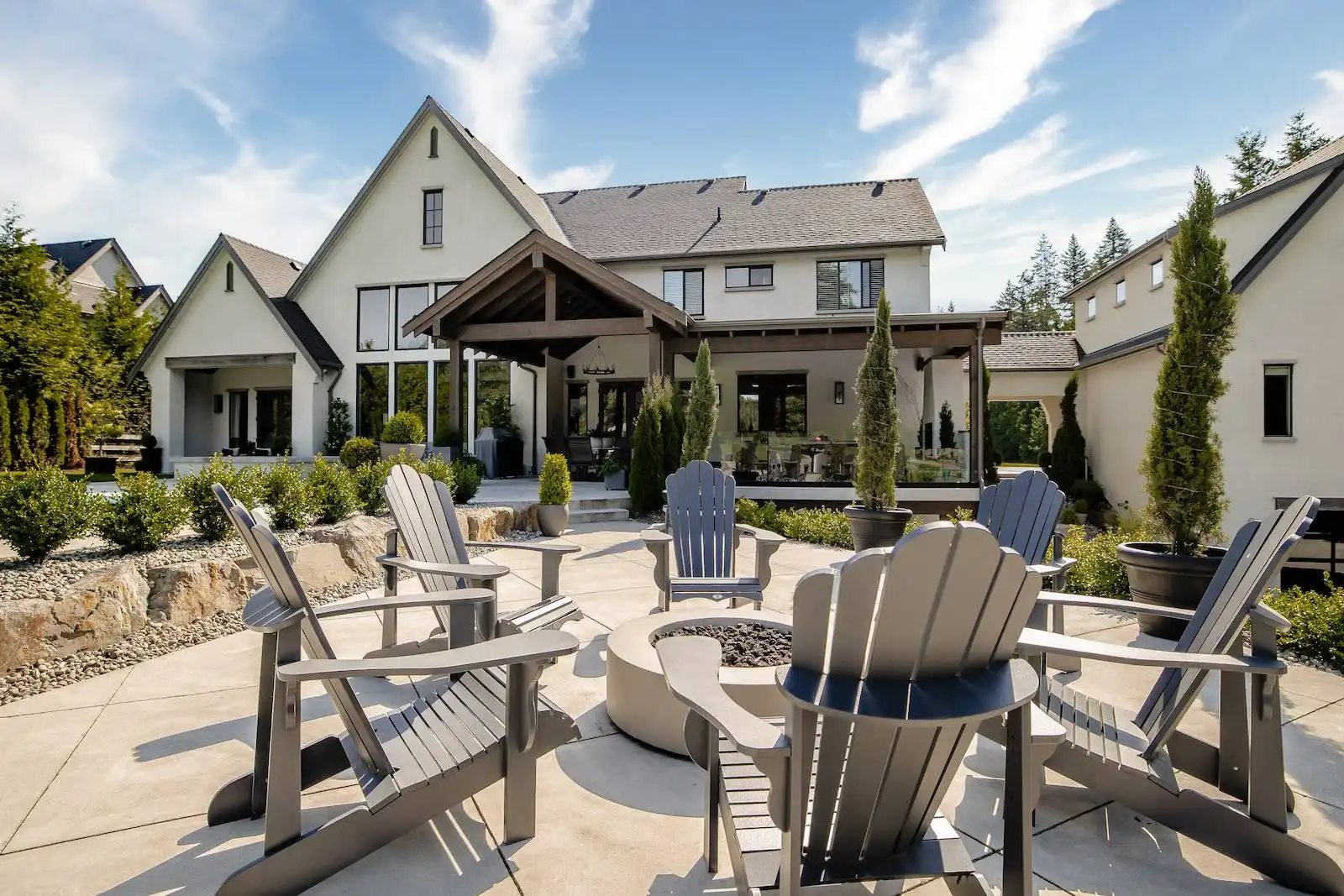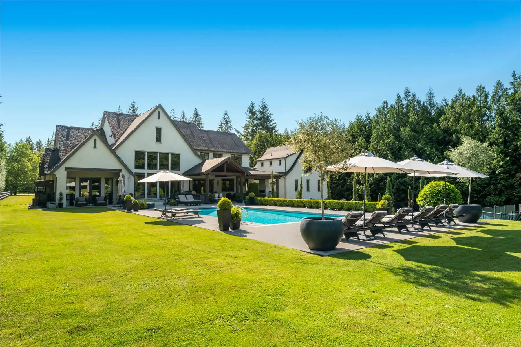 Welcome to this stunning European-inspired residence where elegance and luxury seamlessly intertwine, creating an environment of refined indoor coziness and serene outdoor relaxation and recreation. Upon entering, the home immediately embraces you with natural light, continued through to the luminous two-story great room. The fluid design leads to a sophisticated kitchen, equipped with a spacious prep island and extensive storage, perfect for culinary aficionados. The main level also features a serene primary bedroom, complete with a private porch and spa-like ensuite for ultimate relaxation. Ascend to the upper floor to find five additional bedrooms and a versatile bonus room, offering both comfort and adaptability, complemented by a distinct breezeway-connected double garage with potential for additional flex space above.