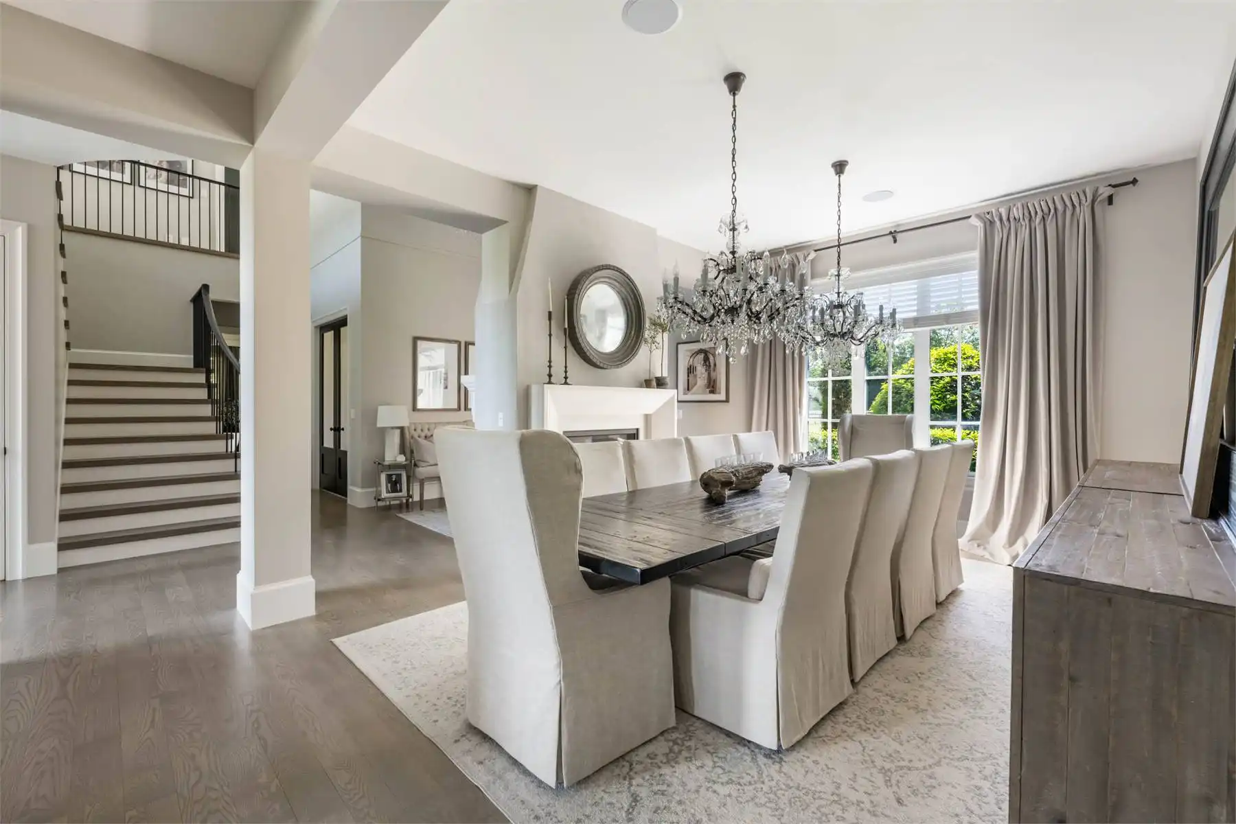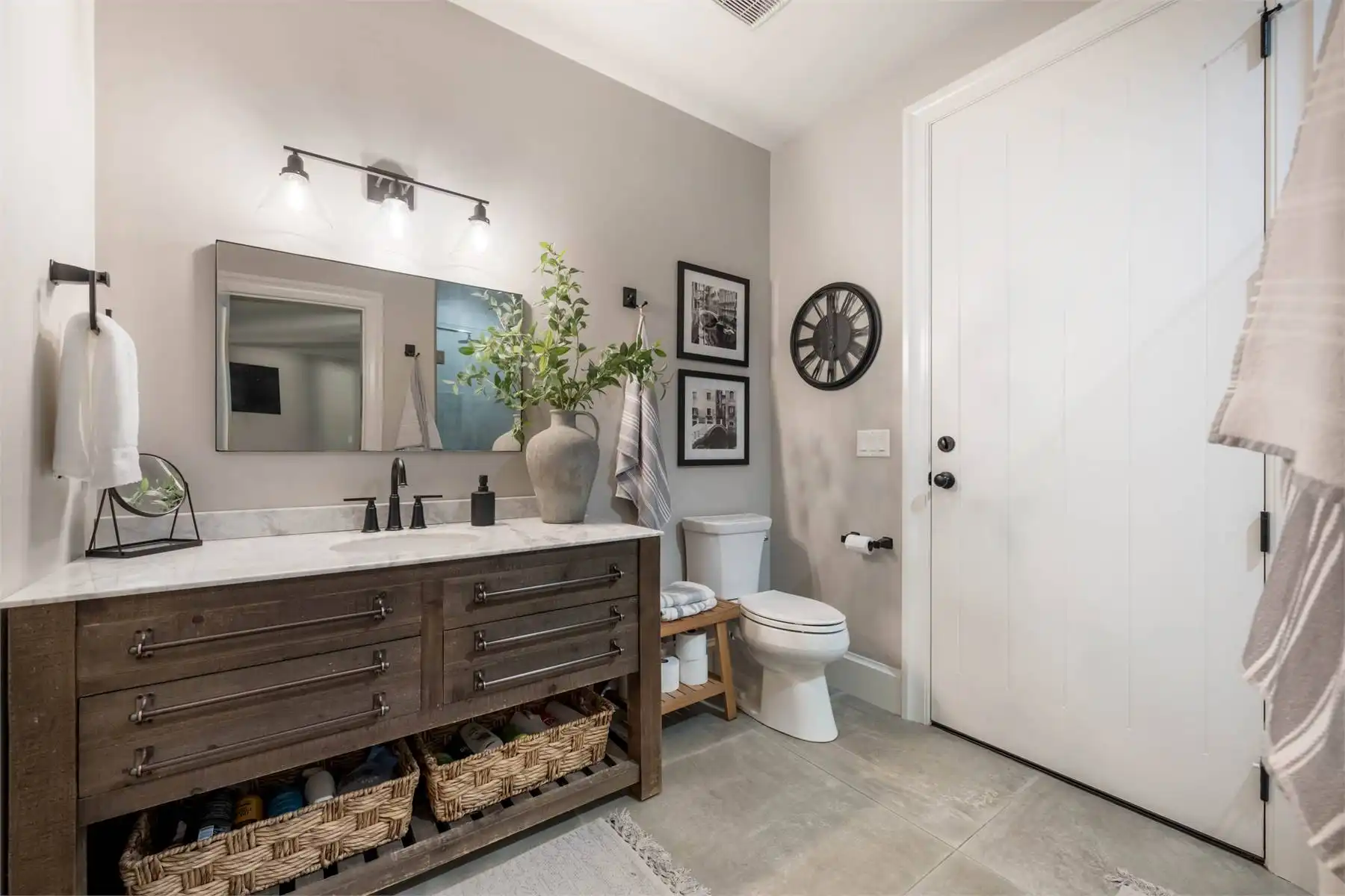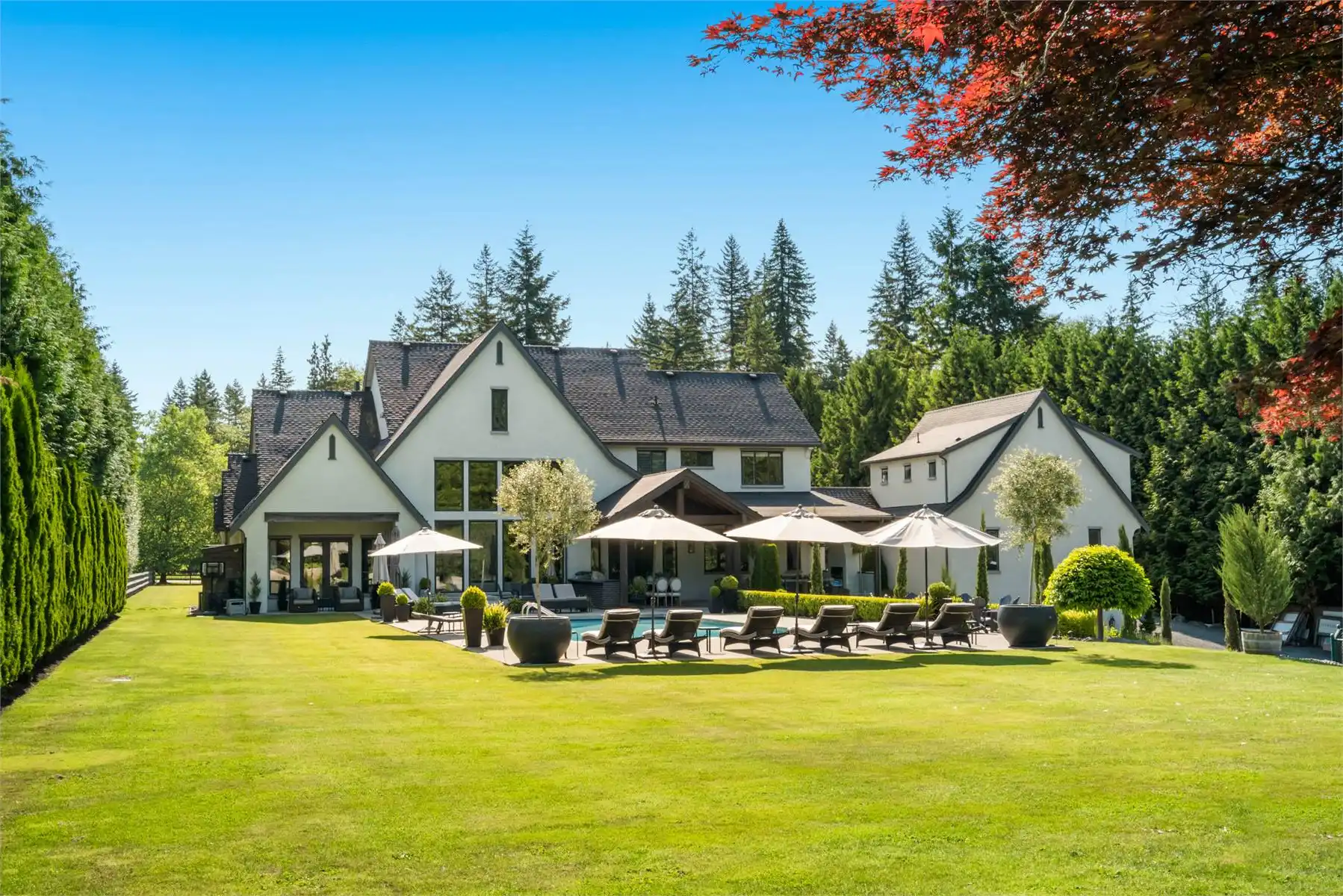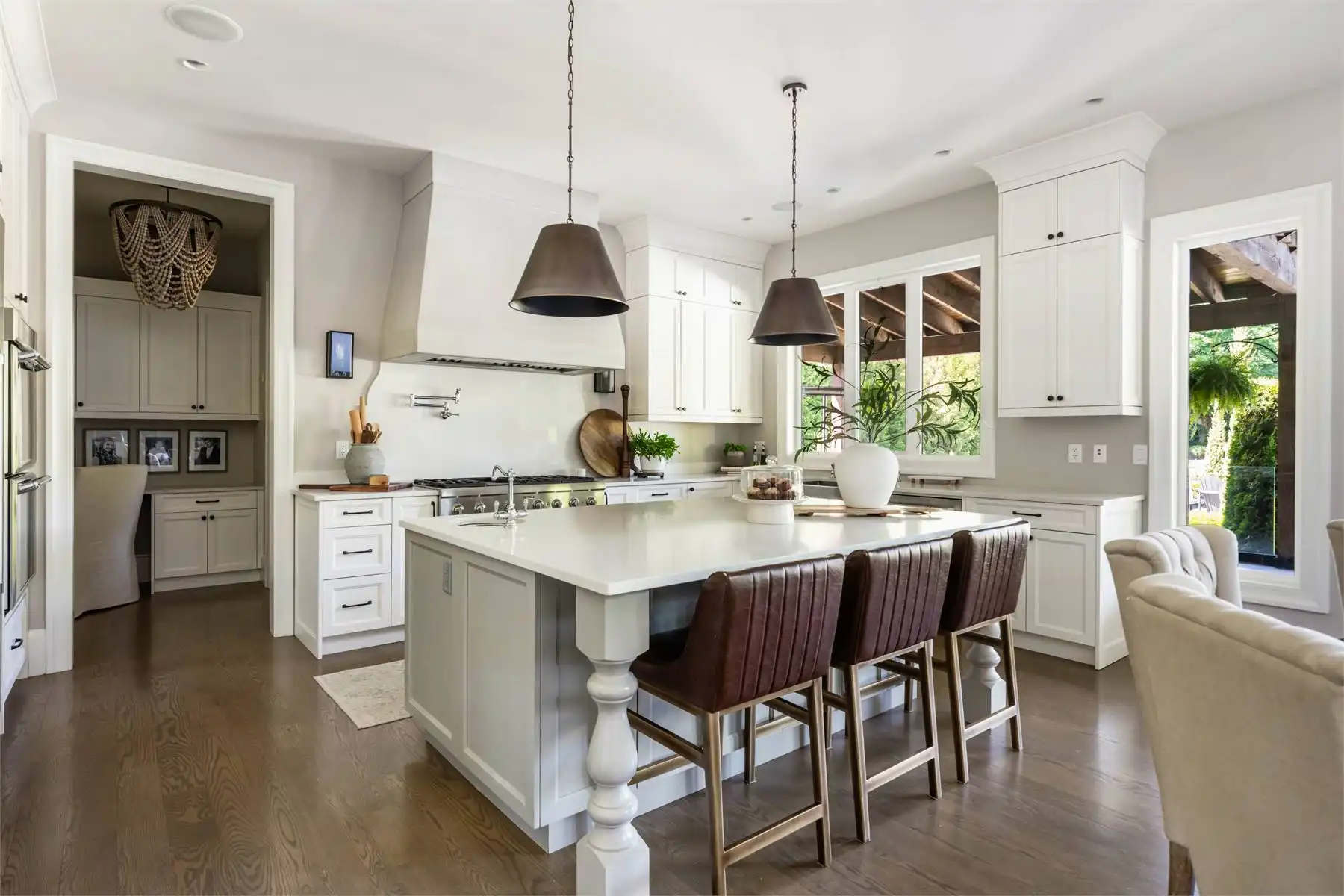 Welcome to this stunning European-inspired residence where elegance and luxury seamlessly intertwine, creating an environment of refined indoor coziness and serene outdoor relaxation and recreation. Upon entering, the home immediately embraces you with natural light, continued through to the luminous two-story great room. The fluid design leads to a sophisticated kitchen, equipped with a spacious prep island and extensive storage, perfect for culinary aficionados. The main level also features a serene primary bedroom, complete with a private porch and spa-like ensuite for ultimate relaxation. Ascend to the upper floor to find five additional bedrooms and a versatile bonus room, offering both comfort and adaptability, complemented by a distinct breezeway-connected double garage with potential for additional flex space above.