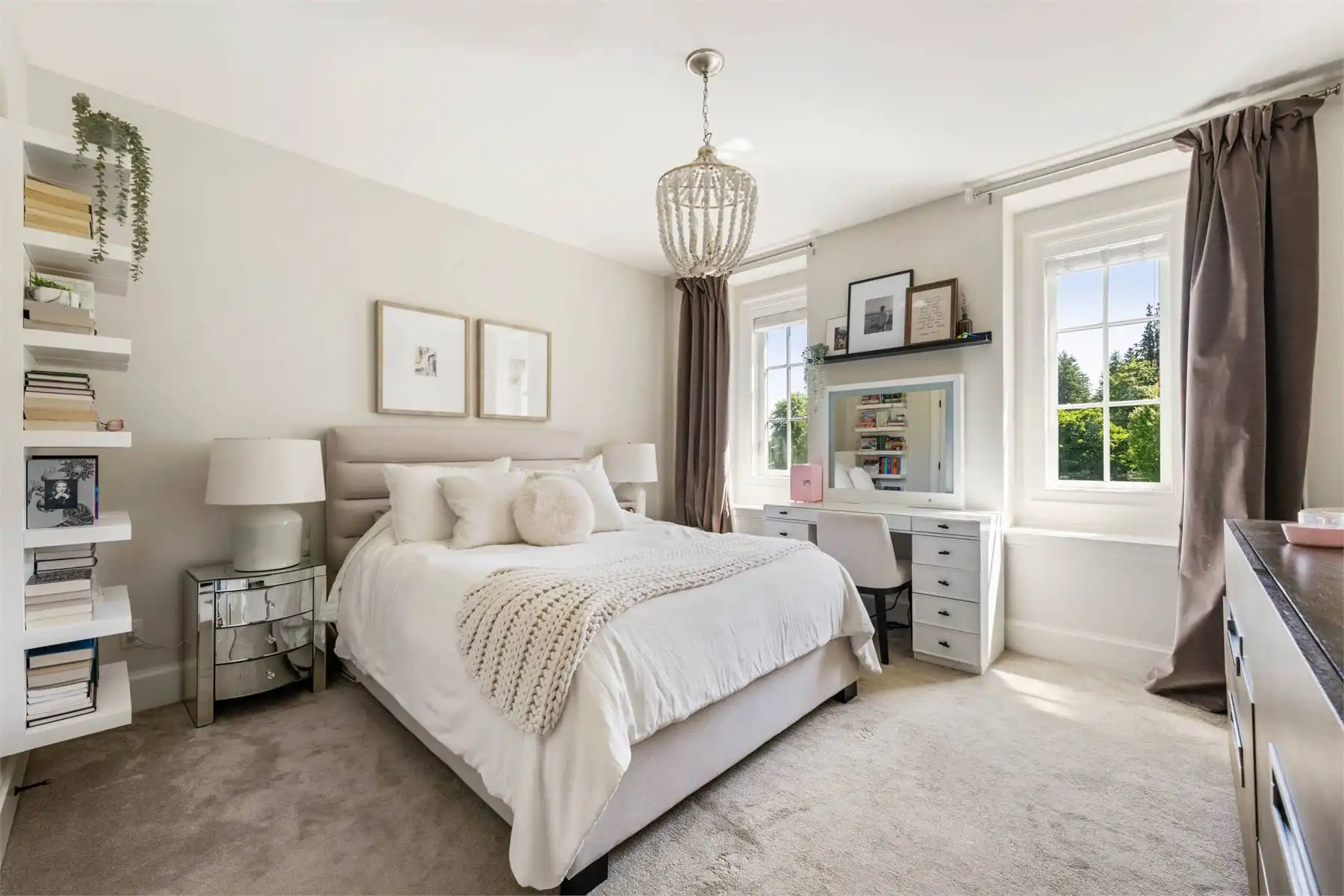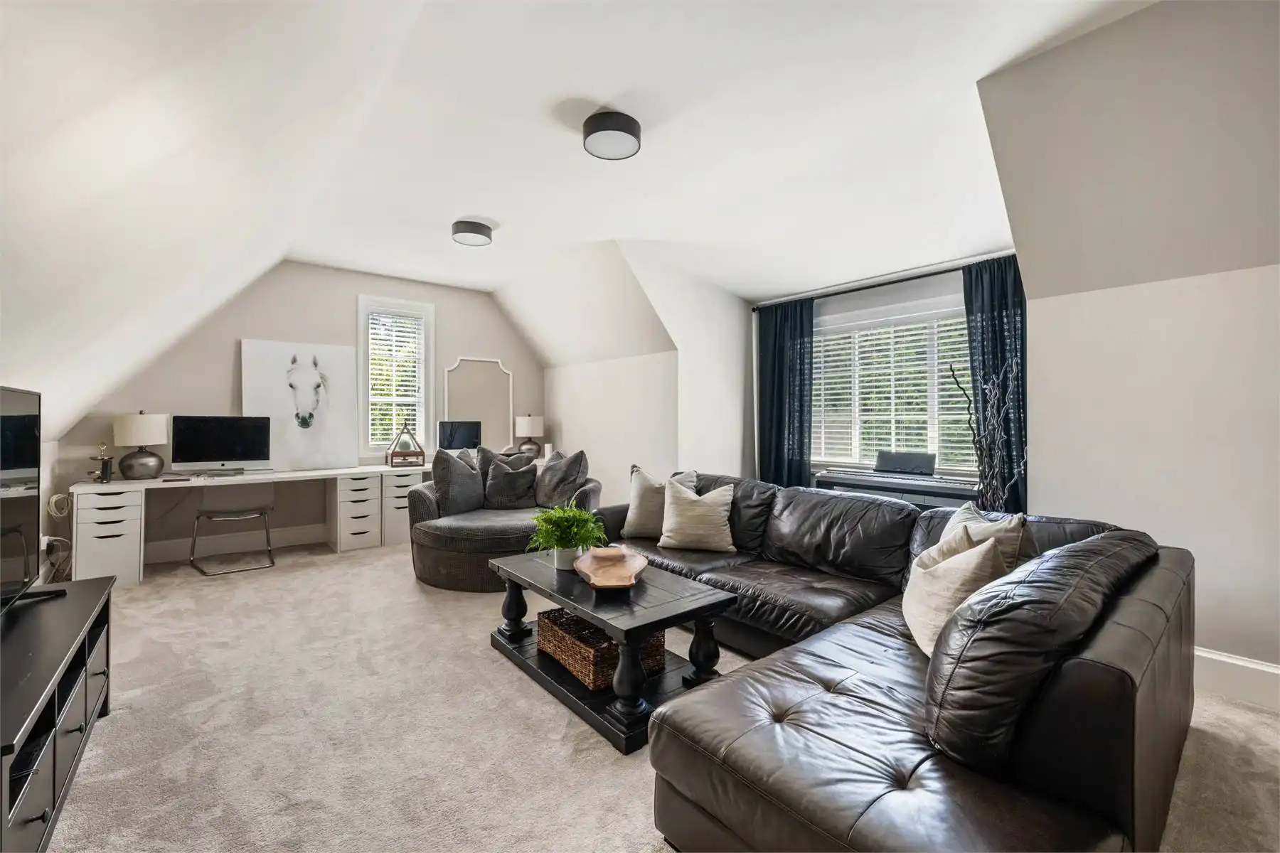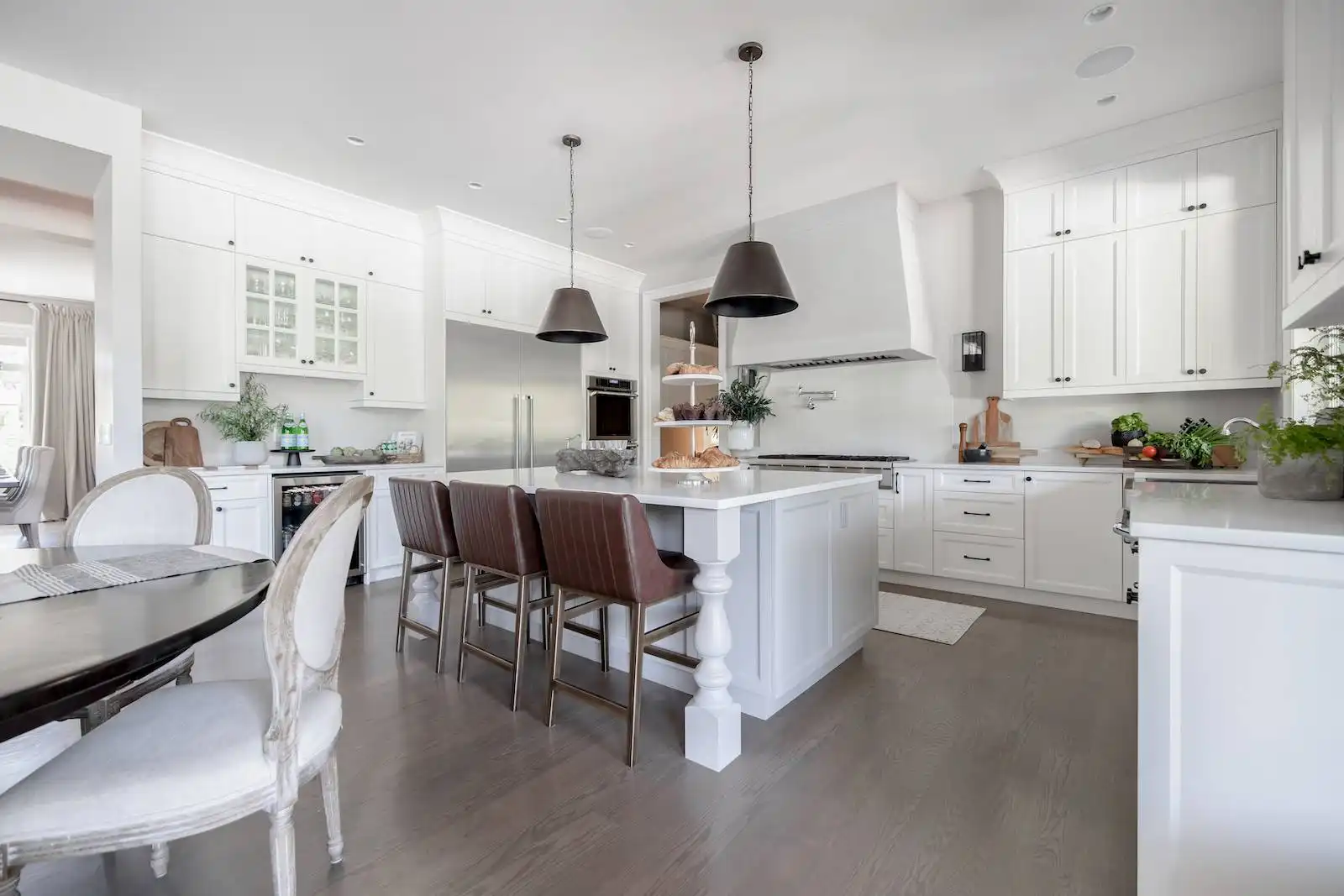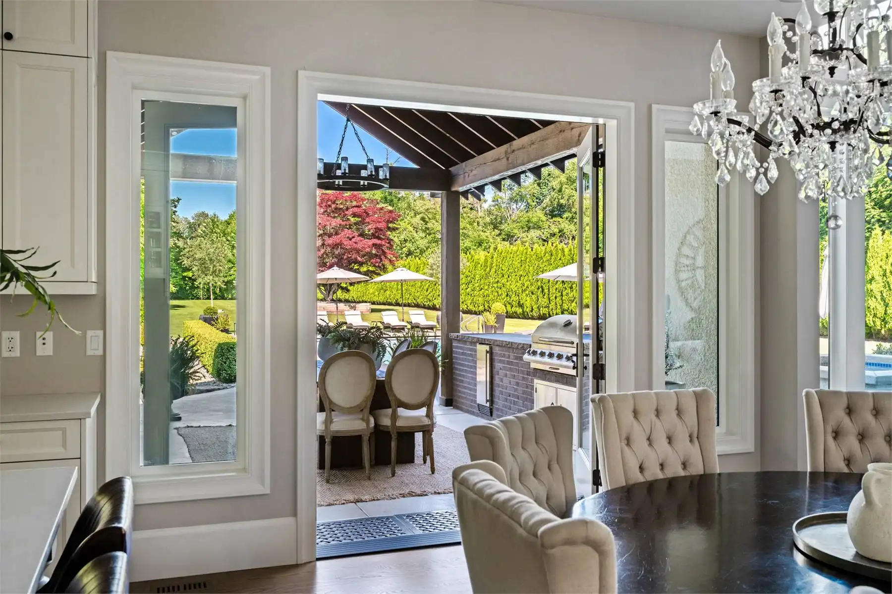 Welcome to this stunning European-inspired residence where elegance and luxury seamlessly intertwine, creating an environment of refined indoor coziness and serene outdoor relaxation and recreation. Upon entering, the home immediately embraces you with natural light, continued through to the luminous two-story great room. The fluid design leads to a sophisticated kitchen, equipped with a spacious prep island and extensive storage, perfect for culinary aficionados. The main level also features a serene primary bedroom, complete with a private porch and spa-like ensuite for ultimate relaxation. Ascend to the upper floor to find five additional bedrooms and a versatile bonus room, offering both comfort and adaptability, complemented by a distinct breezeway-connected double garage with potential for additional flex space above.