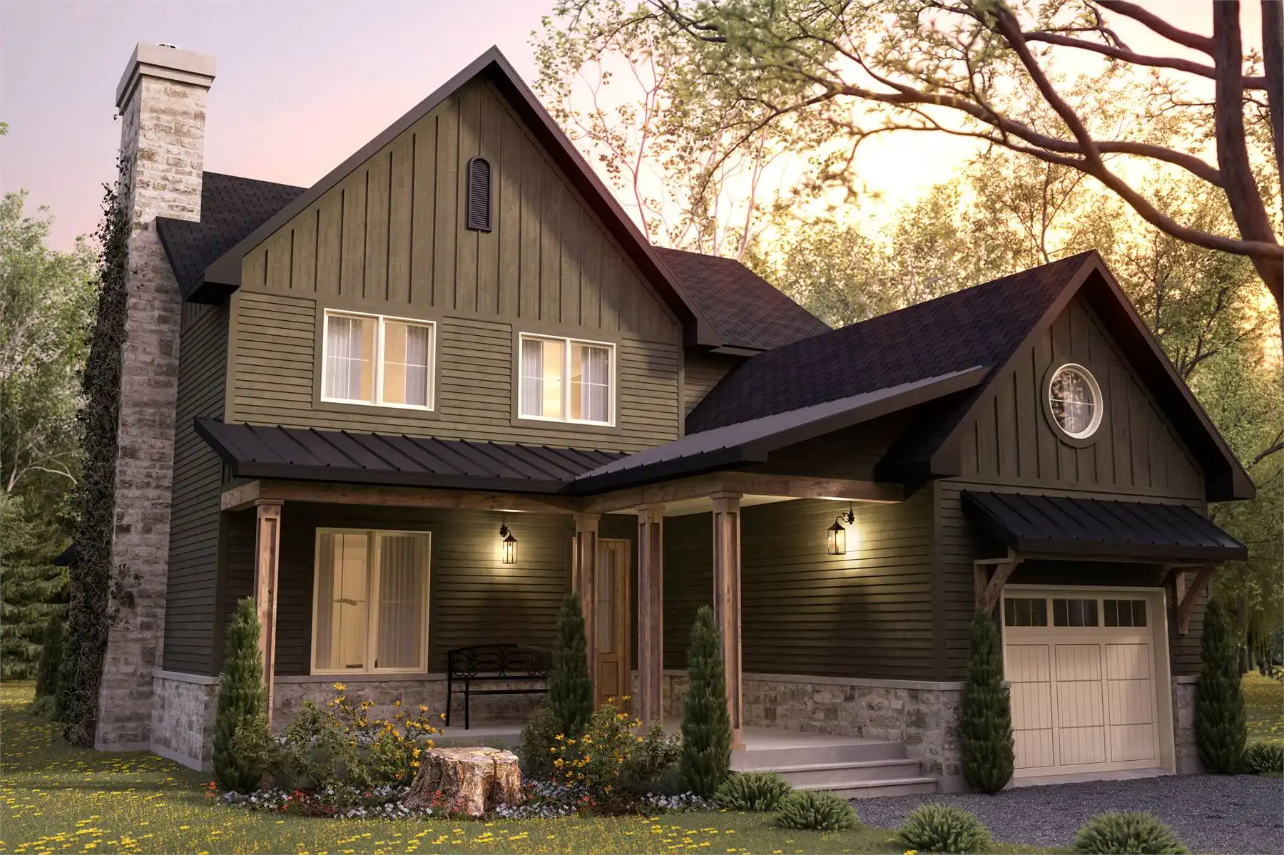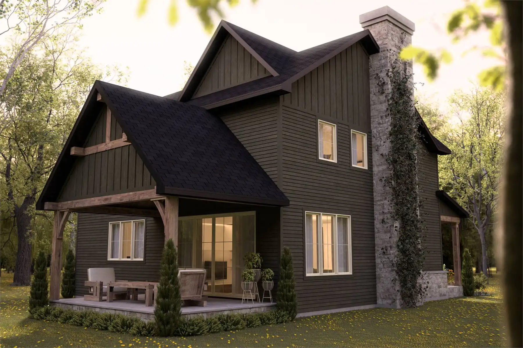 With 3,284 square feet and five bedrooms across two stories and a finished basement, House Plan 9145 is made for those who need to minimize their home's footprint. The layout places the open common areas on the main level along with an office, the mudroom, and laundry. The luxe primary suite is upstairs along with three bedrooms and a hall bath while the final bedroom is a suite in the basement. The terrace off the dining area and family room in the lower level offer even more space to spread out!