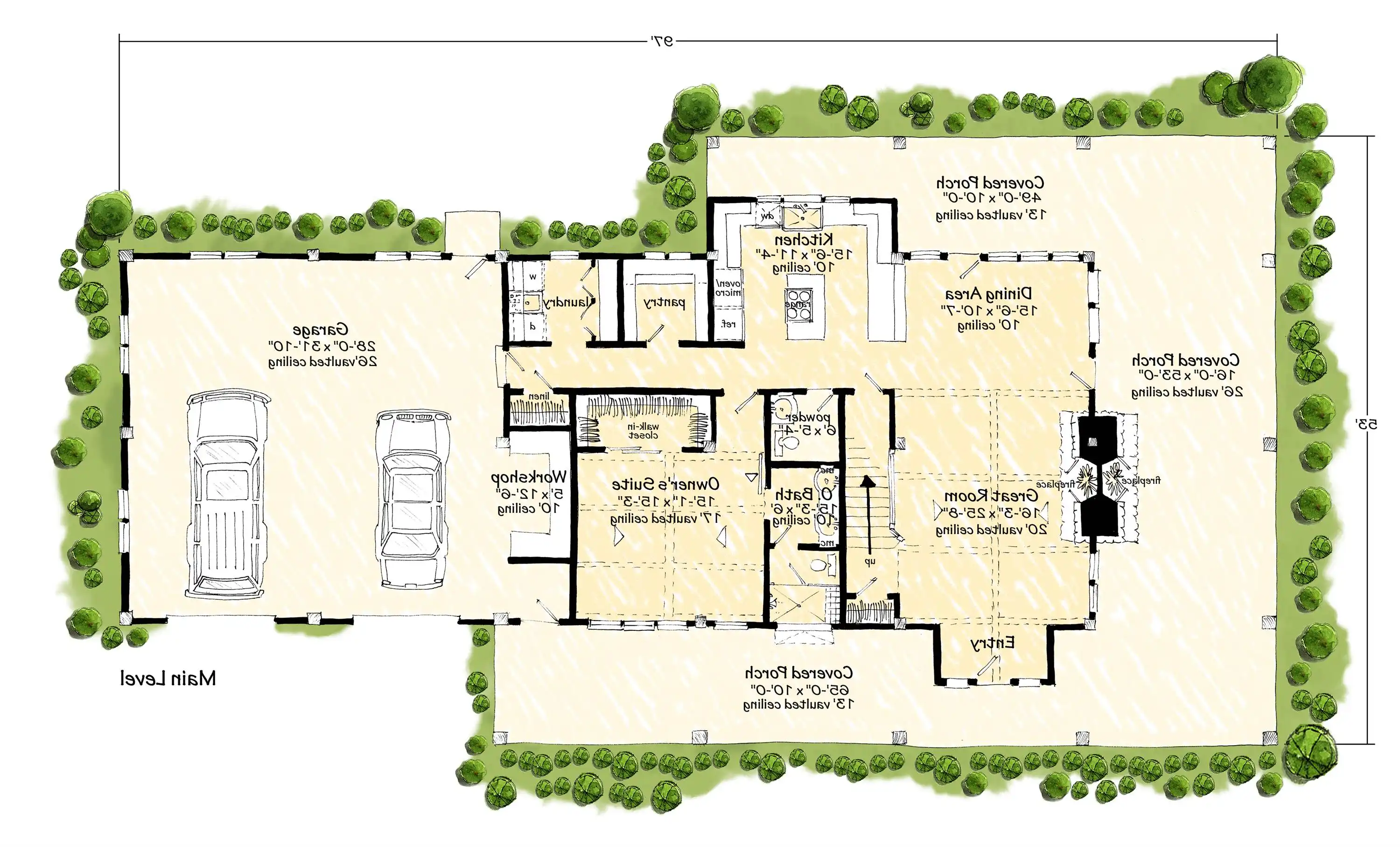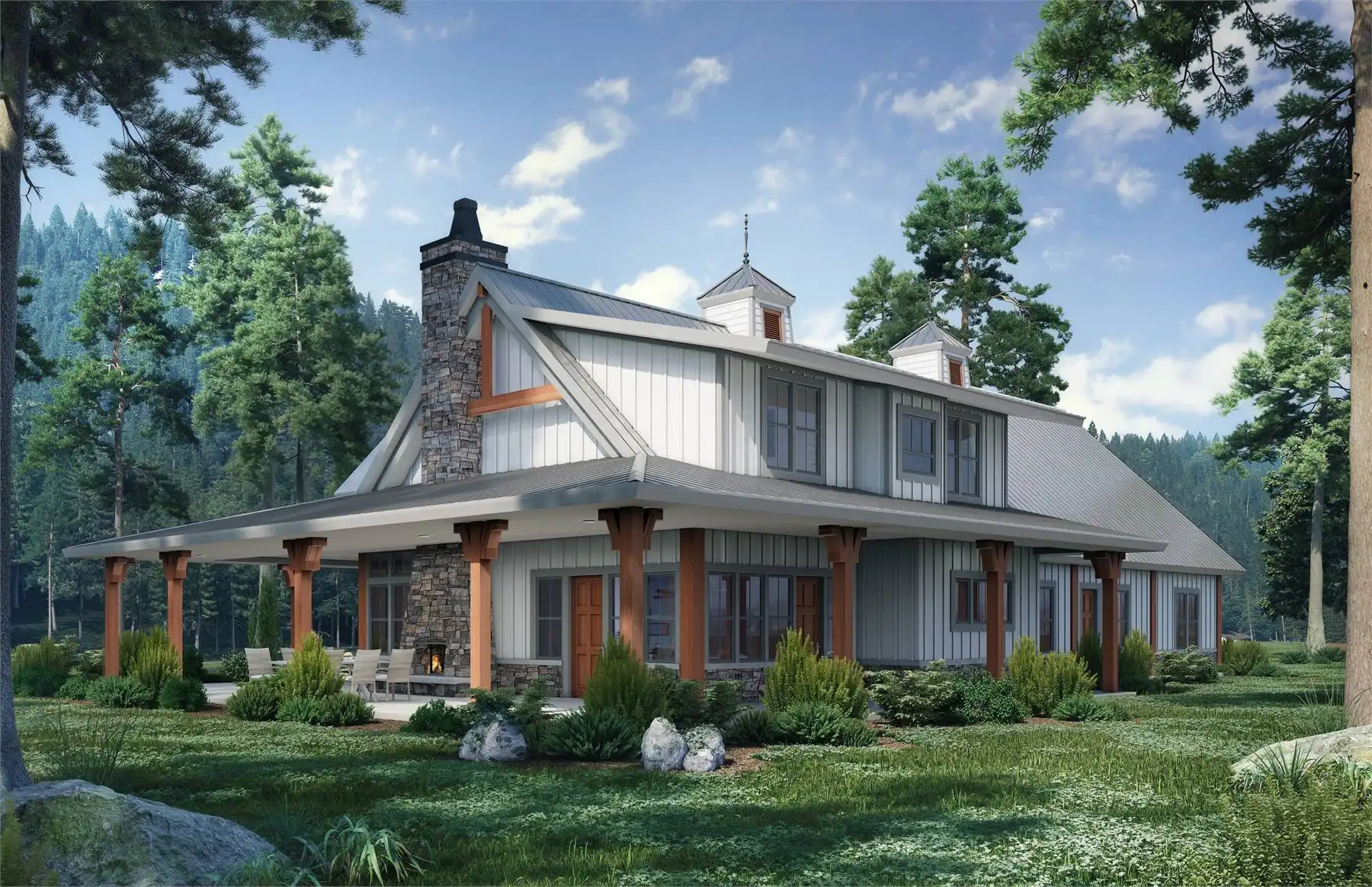 House Plan 9147 has a lot more than meets the eye! Of course, the dormered roofline and wraparound porch get noticed from the street, but the interior offers 2,054 square feet with vaulted ceilings in the great room and all three bedrooms--talk about unique accommodations in a home this size! The main floor includes the great room, U-shaped island kitchen, four-piece master suite, and plenty of storage between the walk-in pantry, laundry room, and closets. A pair of Jack-and-Jill bathrooms with a divided four-piece bath make up the second story. House Plan 9147 also includes some workshop space in the two-car garage!