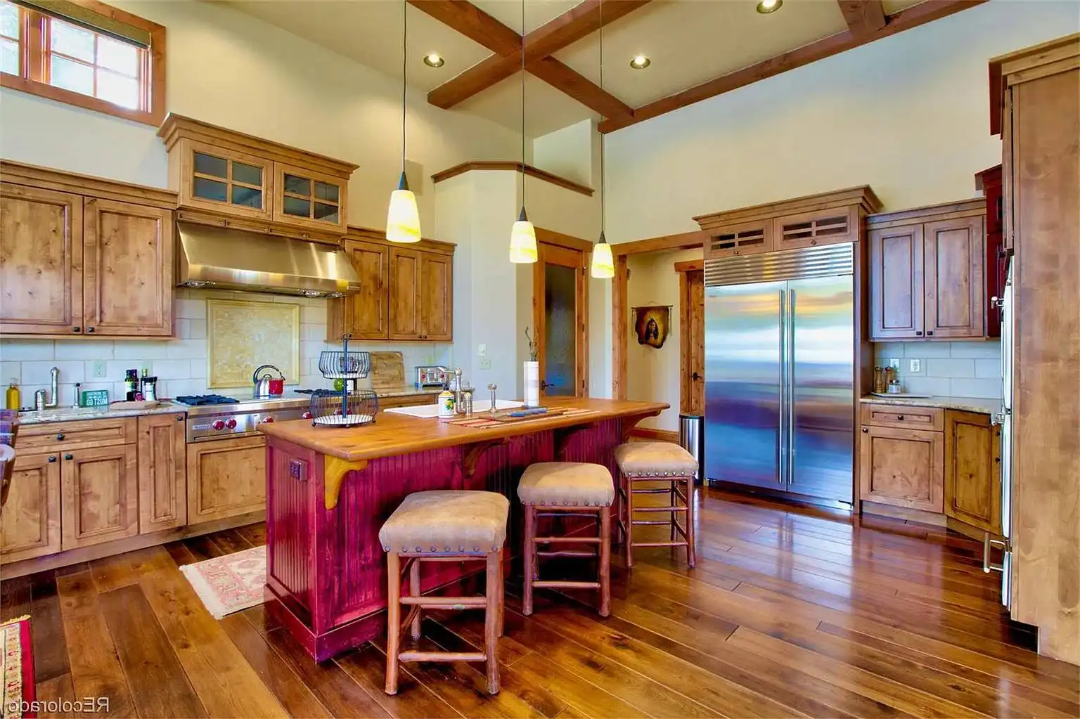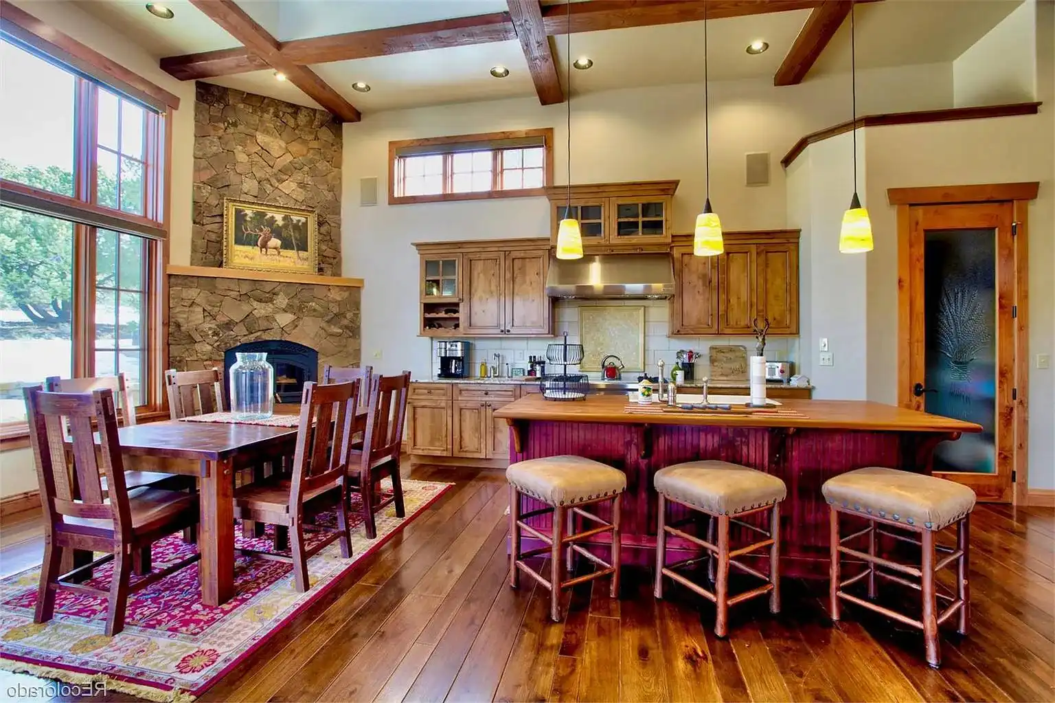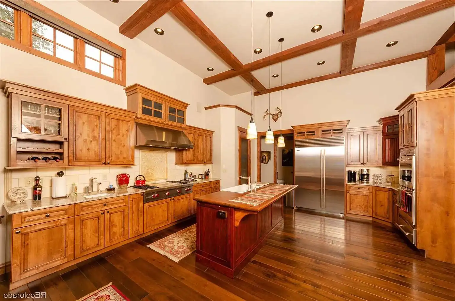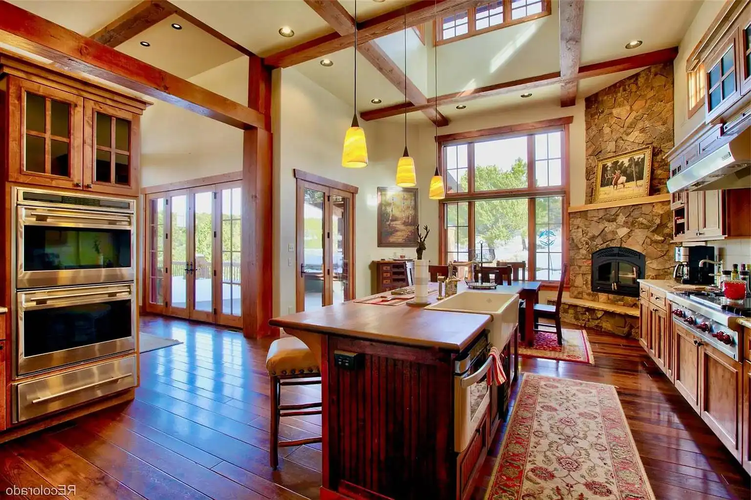 Need a beautiful home for a lakeside location? House Plan 9148 is here for your consideration with 3,578 square feet spread across two levels! The main level features a great room with a fireplace, informal dining, an L/U-shaped kitchen, and a hearth nook with another fireplace. The master suite is also on the main level and boasts its own corner fireplace and a five-piece bath with a sauna. Study space and two more bedroom suites are placed upstairs. House Plan 9148 has two garages that park three cars in total and an outdoor kitchen, so it really covers all the bases!