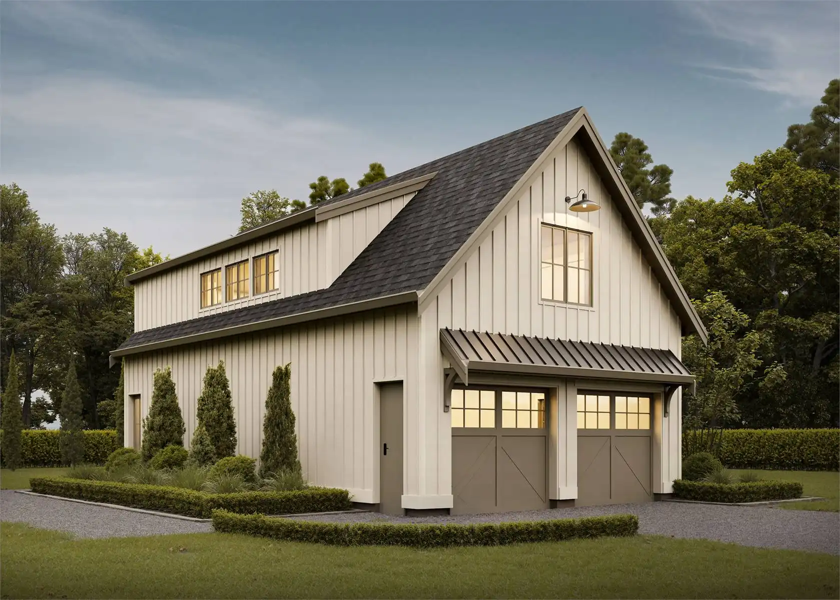 This two-car garage, with a spacious one-bedroom unit above and a separate entrance, offers the perfect blend of convenience and privacy. Inside, an open floor plan seamlessly integrates the kitchen, dining, and living areas, with a large eating bar providing a focal point for casual dining or entertaining. Natural light floods the space, creating an inviting atmosphere. The bedroom, nestled at the back, offers a serene escape, while a full bathroom ensures convenience. Whether you envision a finished living space or prefer the flexibility of an unfinished loft, this unit promises endless possibilities to customize to your liking. Embrace the charm and potential of this unique dwelling, where style meets functionality in a tranquil setting.