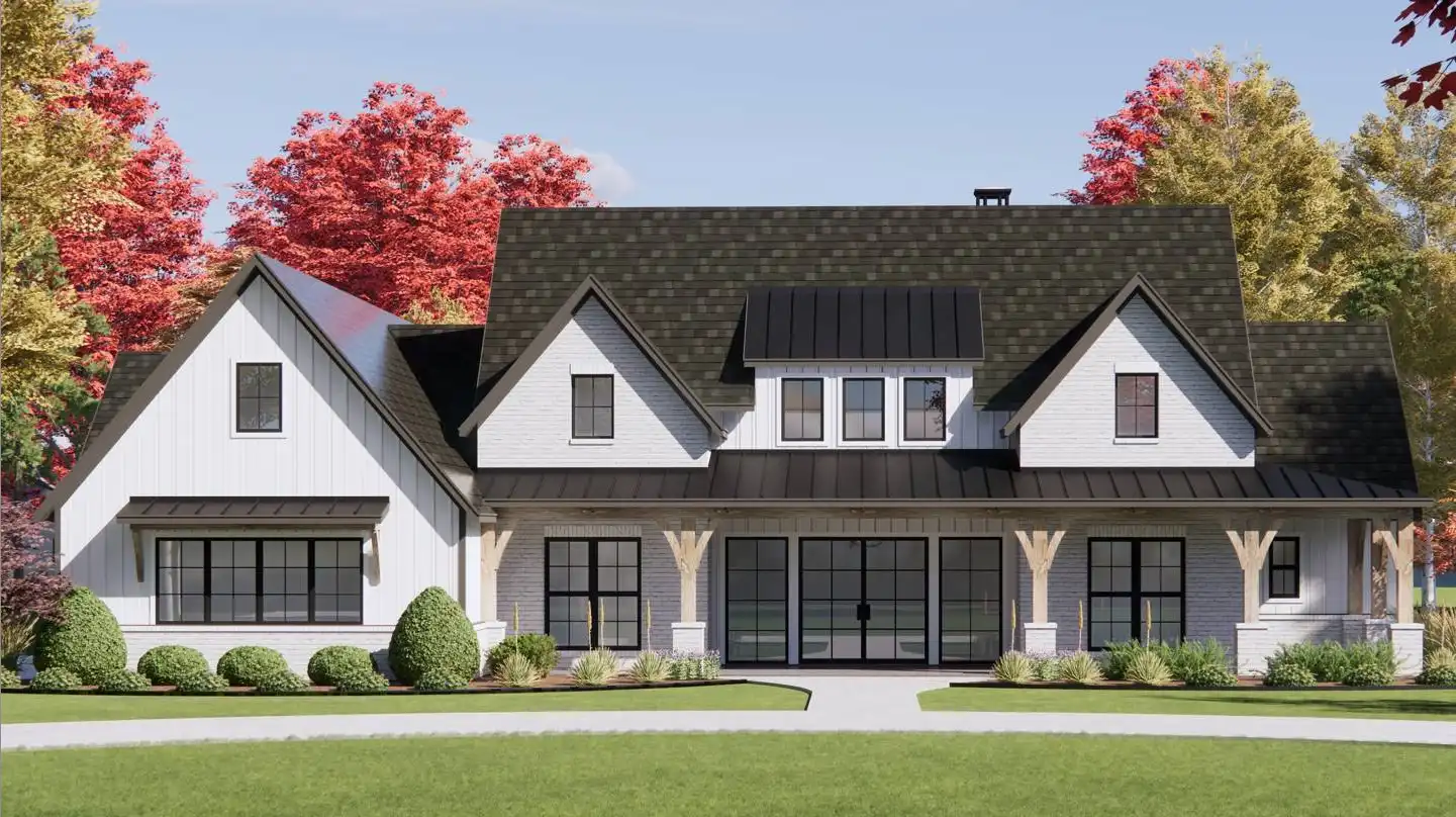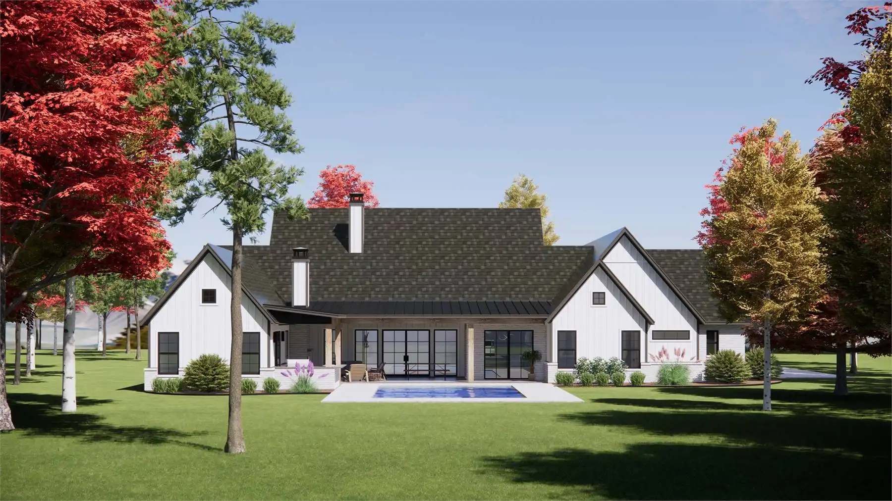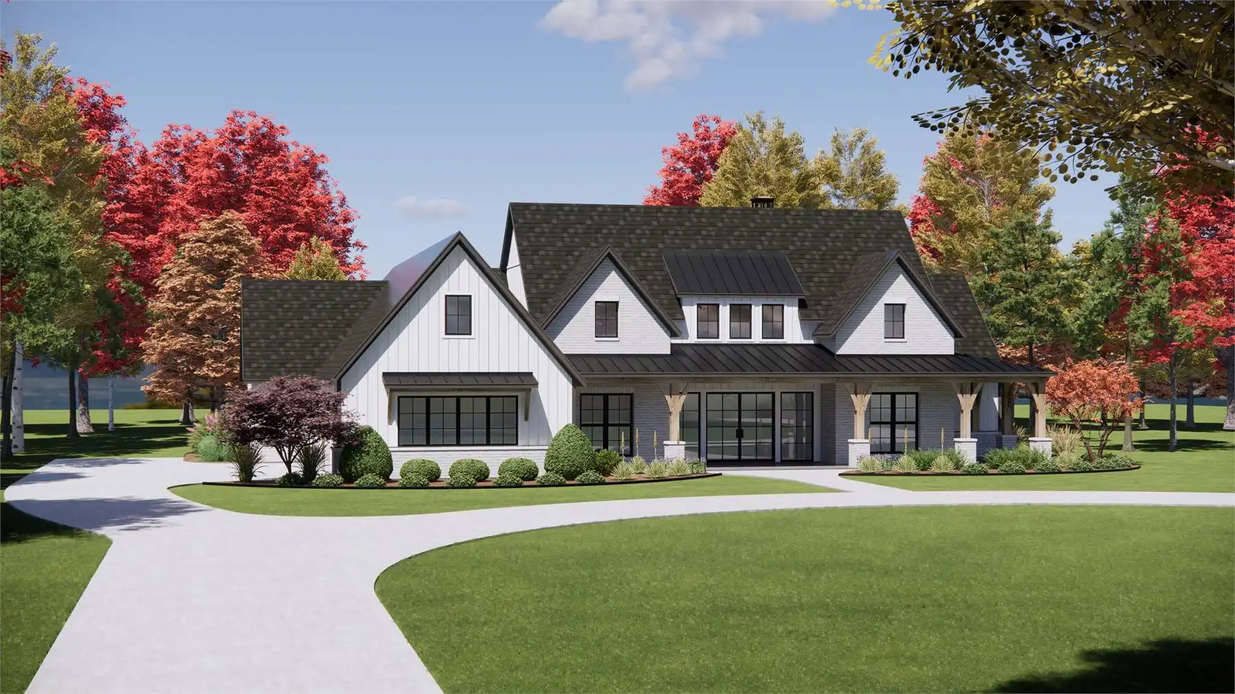 With 3,563 square feet, four bedrooms, four-and-a-half bathrooms, and plenty of other spaces to enjoy, House Plan 9177 makes a great choice for the whole family. First up, there's an office off the foyer. Open-concept living in the center of the floor plan includes an island kitchen beside the vaulted great room and dining nook. On one side, there are three bedroom suites and the game room. On the other, the vaulted primary suite has its privacy. If you need more than this, just look to the covered porches--they have over 1,000 more square feet between them, as well as an outdoor fireplace and kitchen to really increase the comfort and functionality!