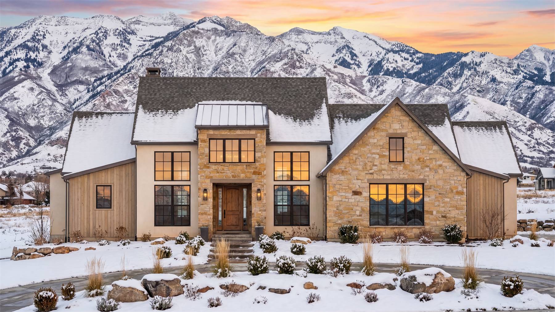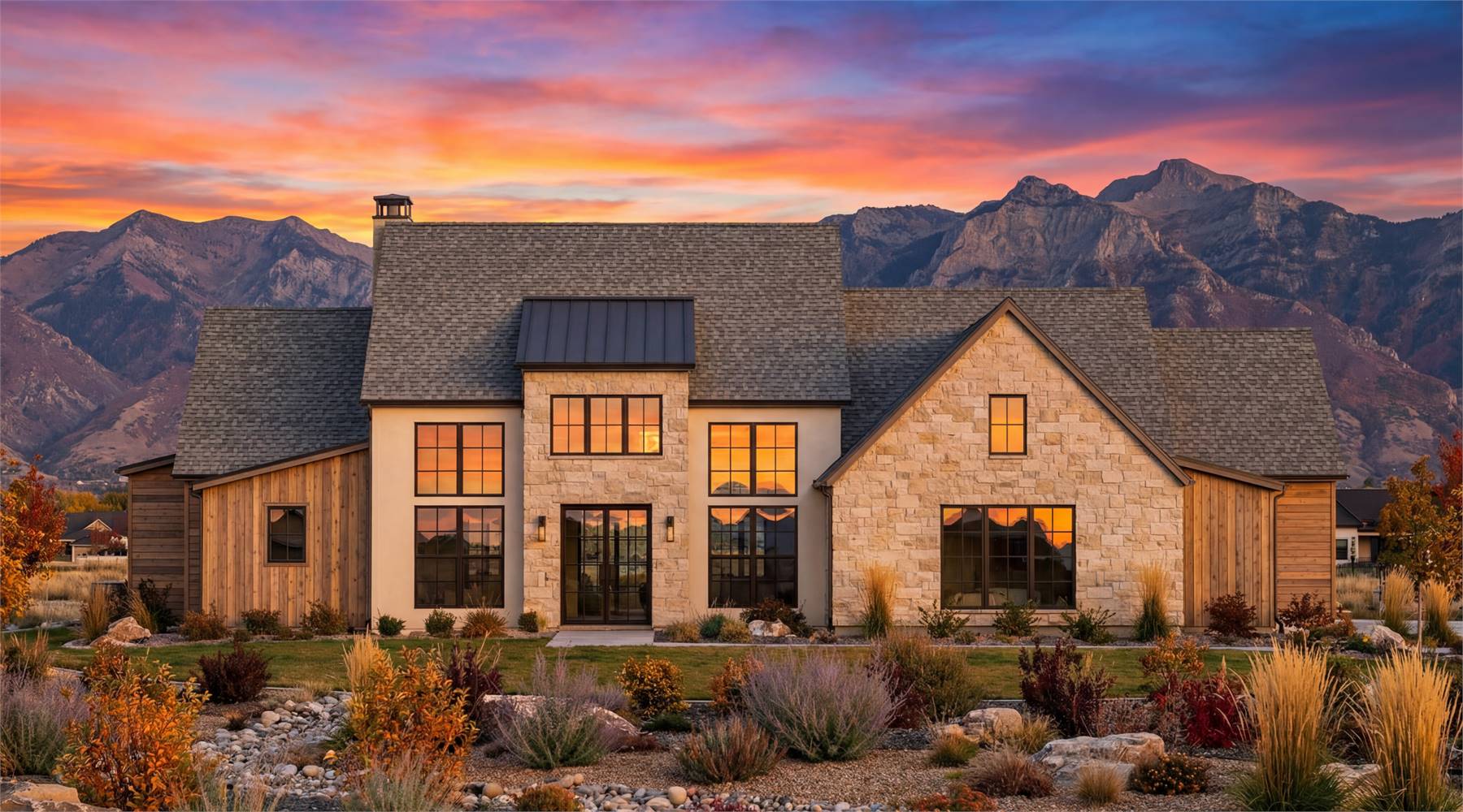 House Plan 9182 is a lovely ranch with transitional rustic style that will fit in on any landscape! It offers 3,031 square feet, four bedrooms, and four-and-a-half bathrooms on one convenient level. The split-bedroom layout places the primary suite behind the kitchen while the other three bedroom suites are on the opposite side of the house, behind the family room. There's also an office off the foyer for the at-home worker. This design boasts dramatic vaulted ceilings in the great room as well as in the primary bedroom and bath, so if you're looking for a home with stylish ceilings above, this could be the one!