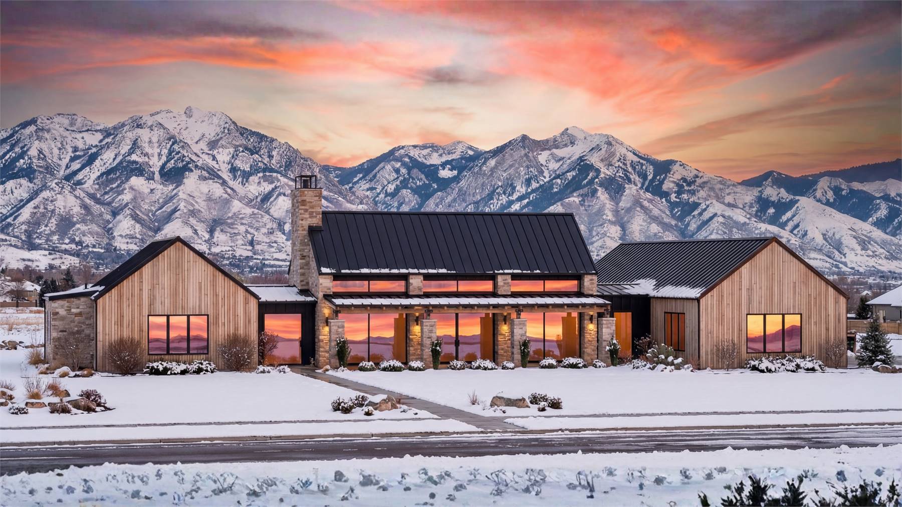Stop and explore the possibilities in House Plan 9197 if you're looking for a chic ranch made to take in views! This broad layout features 3,025 square feet with four split bedrooms and three-and-a-half bathrooms. The great room makes up the center of the floor plan and wows with its totally open-concept design, vaulted ceiling spanning the whole space, and walls of windows in front and back. Behind the kitchen, you'll find the walk-in pantry, mudroom, laundry, and luxurious five-piece primary suite tucked behind the garage. The other three bedrooms are across the whole house, off the entry that connects the front porch to the back. What a unique home that checks the boxes of so many families these days!