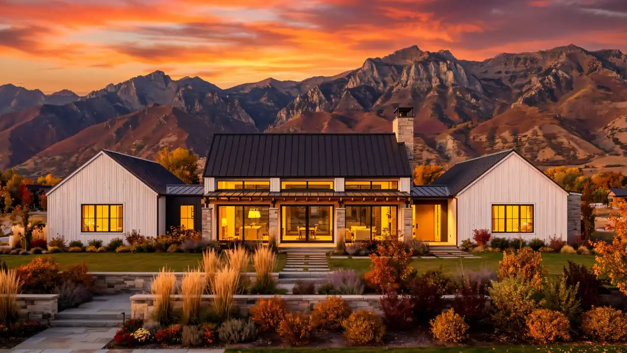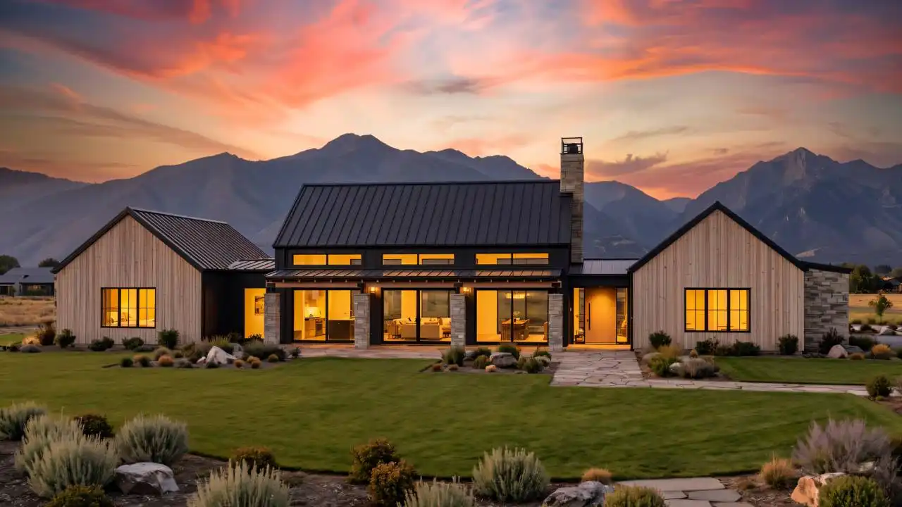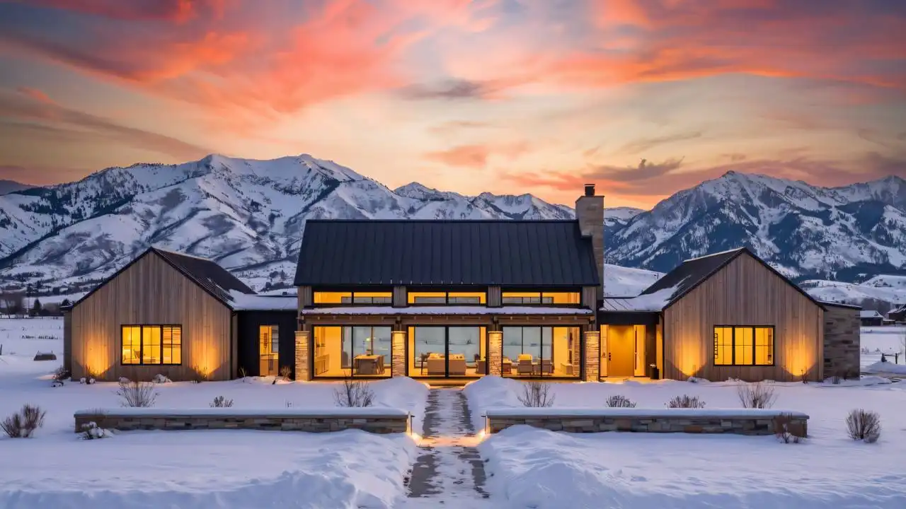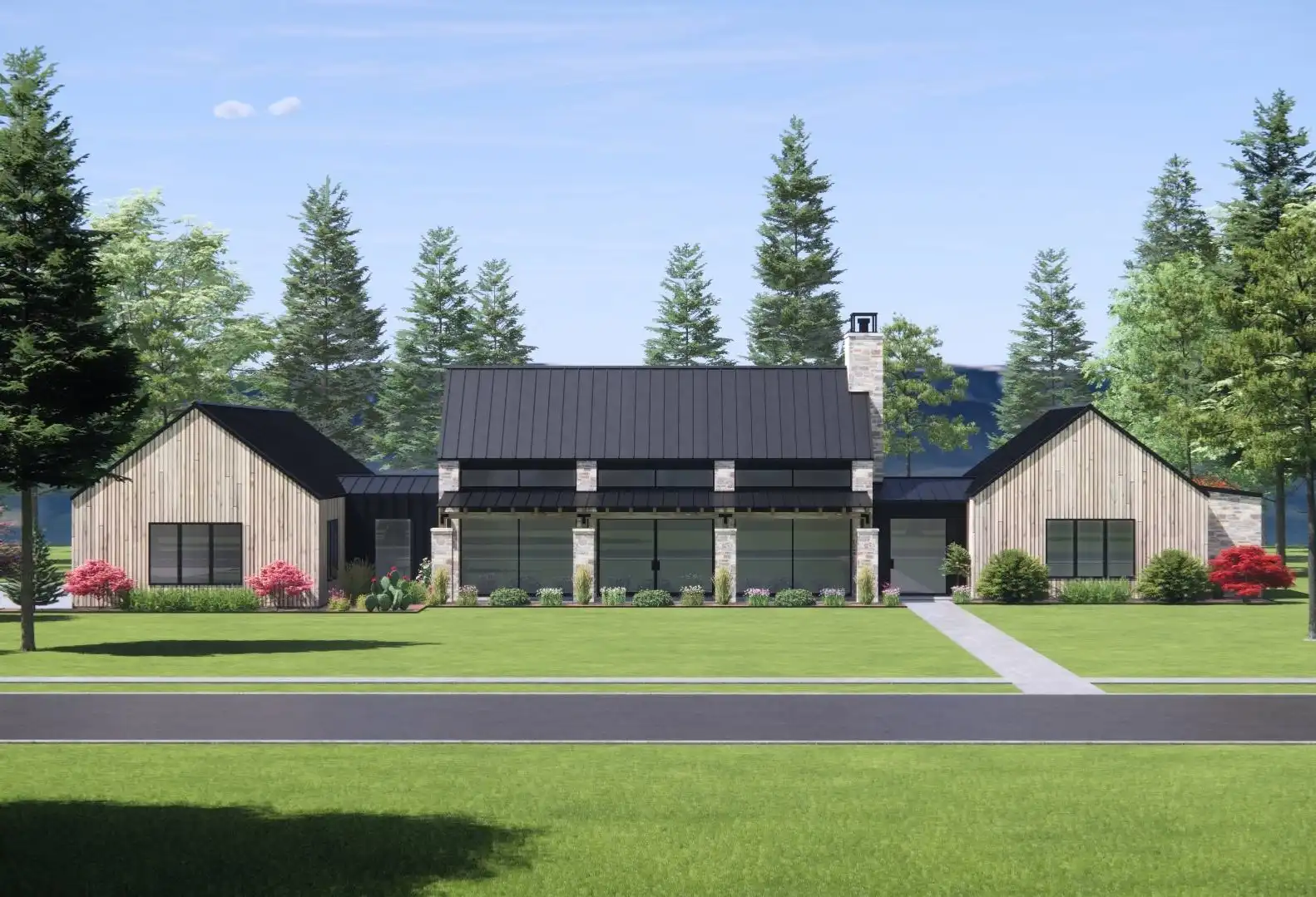 Stop and explore the possibilities in House Plan 9197 if you're looking for a chic ranch made to take in views! This broad layout features 3,025 square feet with four split bedrooms and three-and-a-half bathrooms. The great room makes up the center of the floor plan and wows with its totally open-concept design, vaulted ceiling spanning the whole space, and walls of windows in front and back. Behind the kitchen, you'll find the walk-in pantry, mudroom, laundry, and luxurious five-piece primary suite tucked behind the garage. The other three bedrooms are across the whole house, off the entry that connects the front porch to the back. What a unique home that checks the boxes of so many families these days!