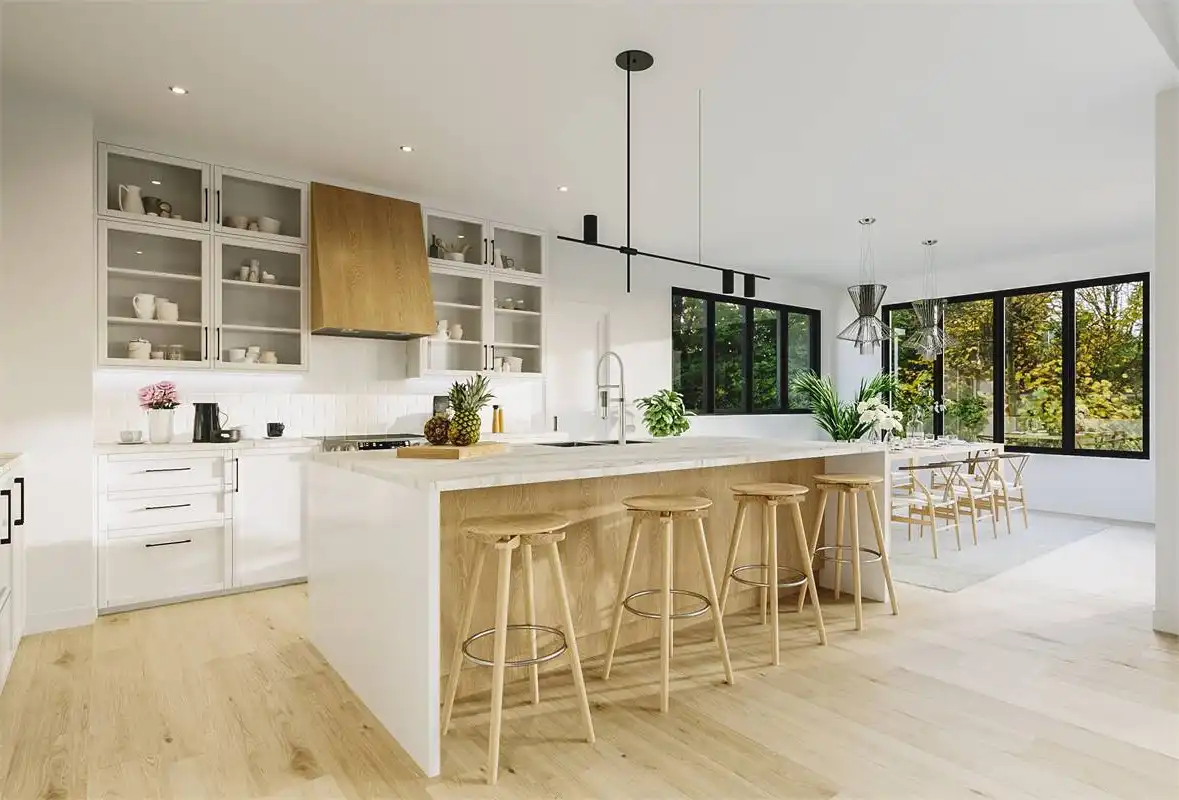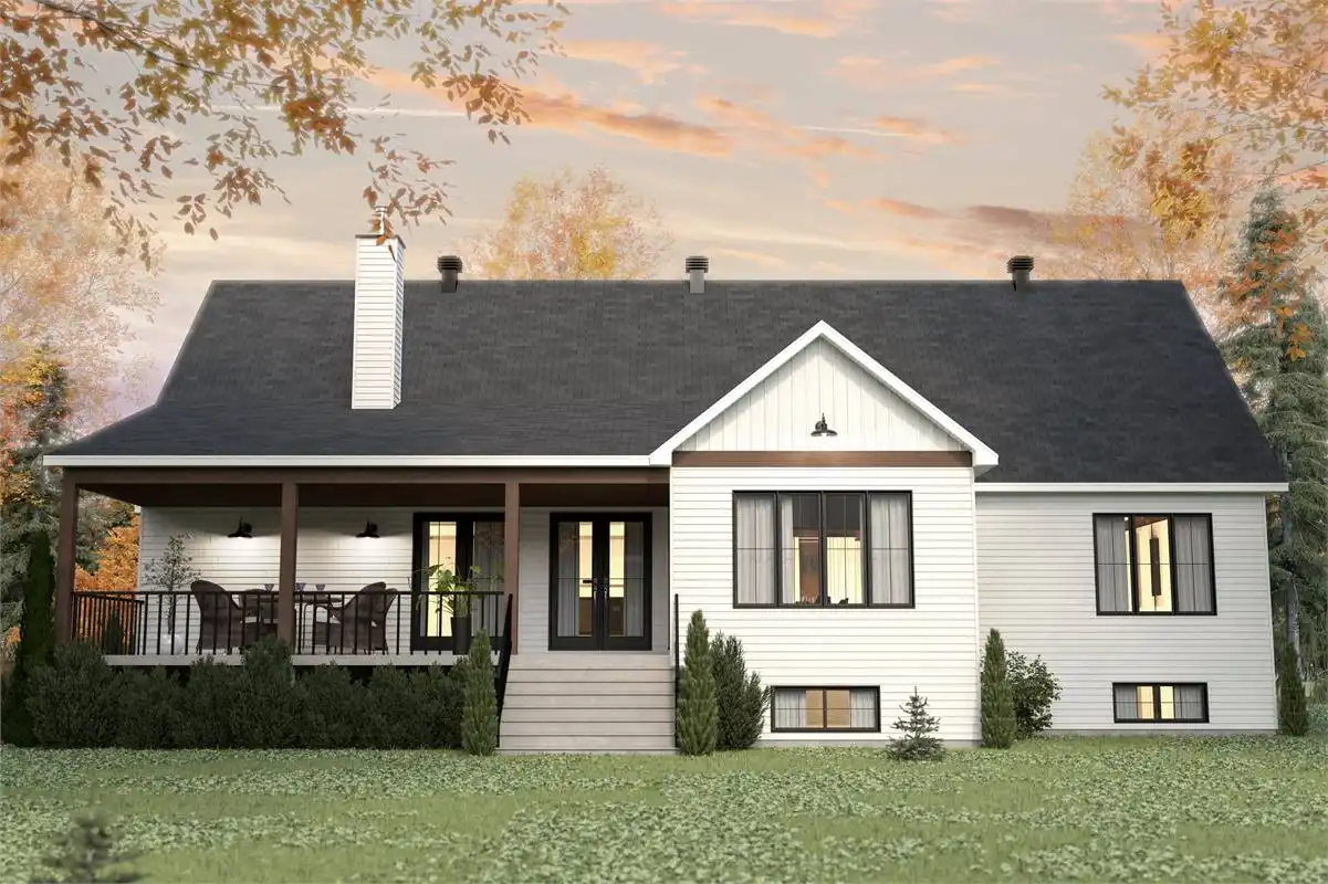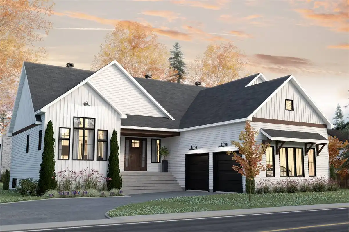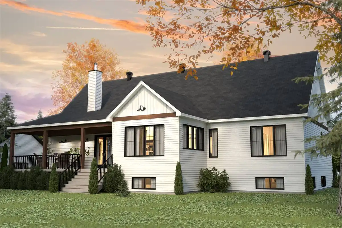 This charming farmhouse plan includes 2,324 s.f. on the main floor with and open floor plan and vaulted family room. The open, L-shaped kitchen is designed to impress with plenty of room and a large island that easily seats 4. Behind the kitchen is a "back kitchen" that can be used as a huge walk in pantry and a place to store additional serving dishes and utensils. The master suite is luxurious with cathedral ceilings, large walk in closet and master bath with walk-in shower and tub. The lower level includes a bathroom, storage room and mechanical room but can be built out to provide another 2,324 s.f of living space below. Enjoy the outdoor living are with covered porch, and fire-pit.
