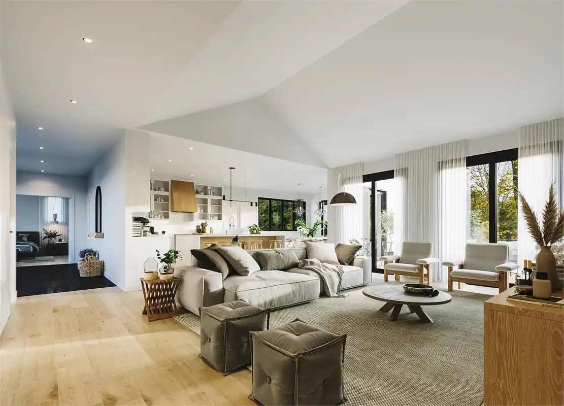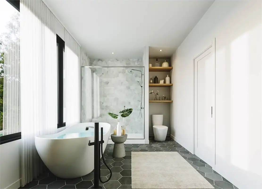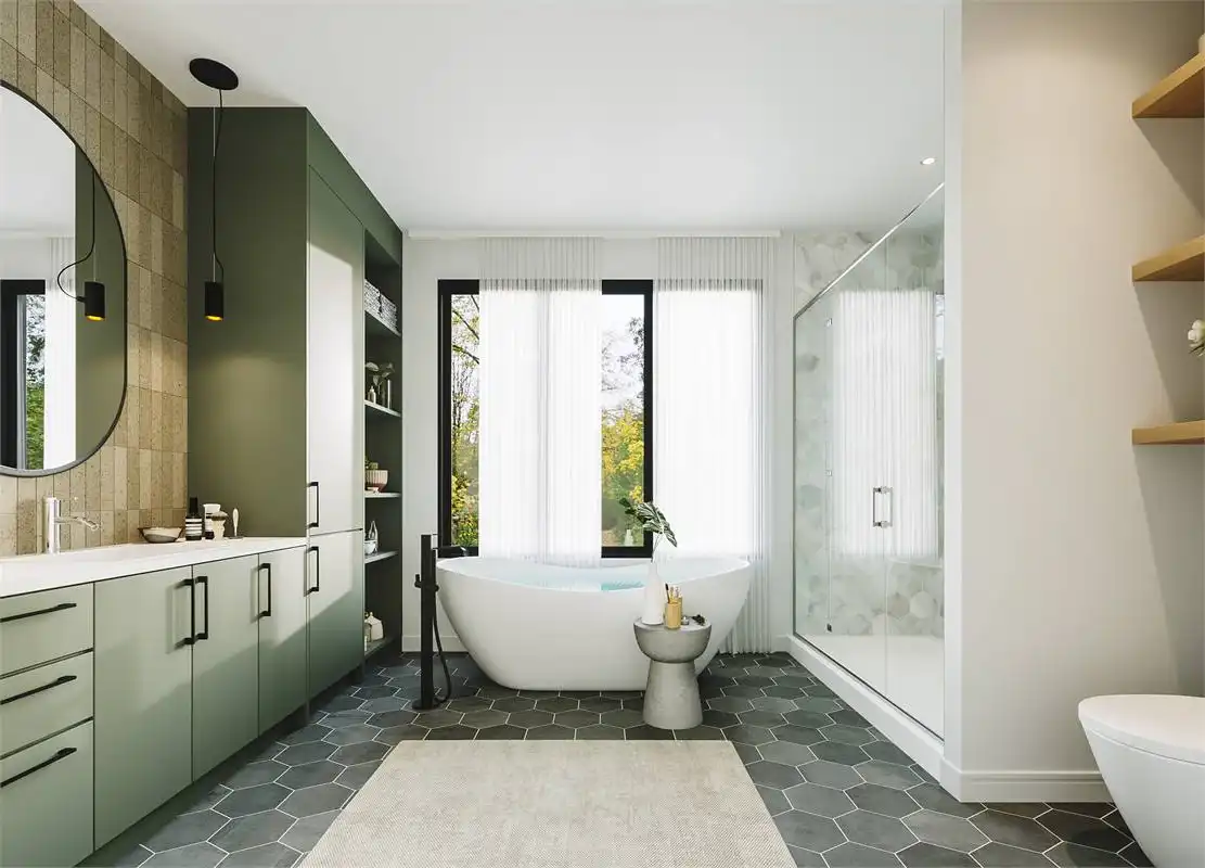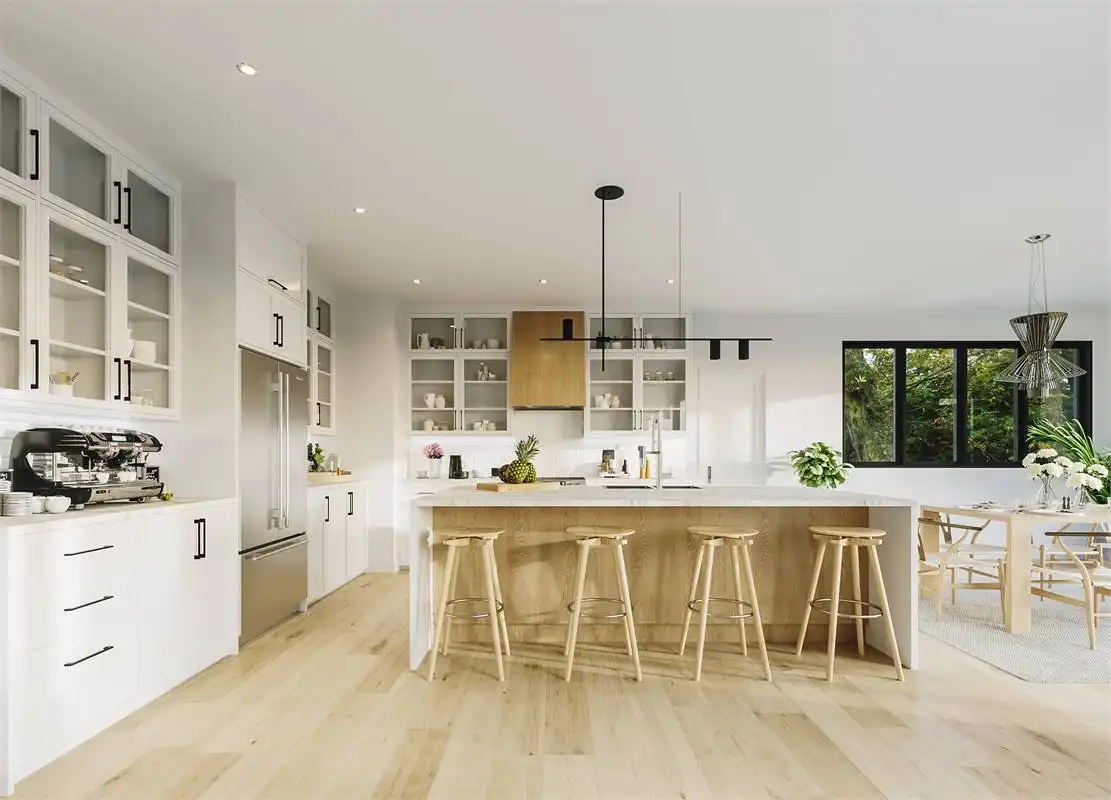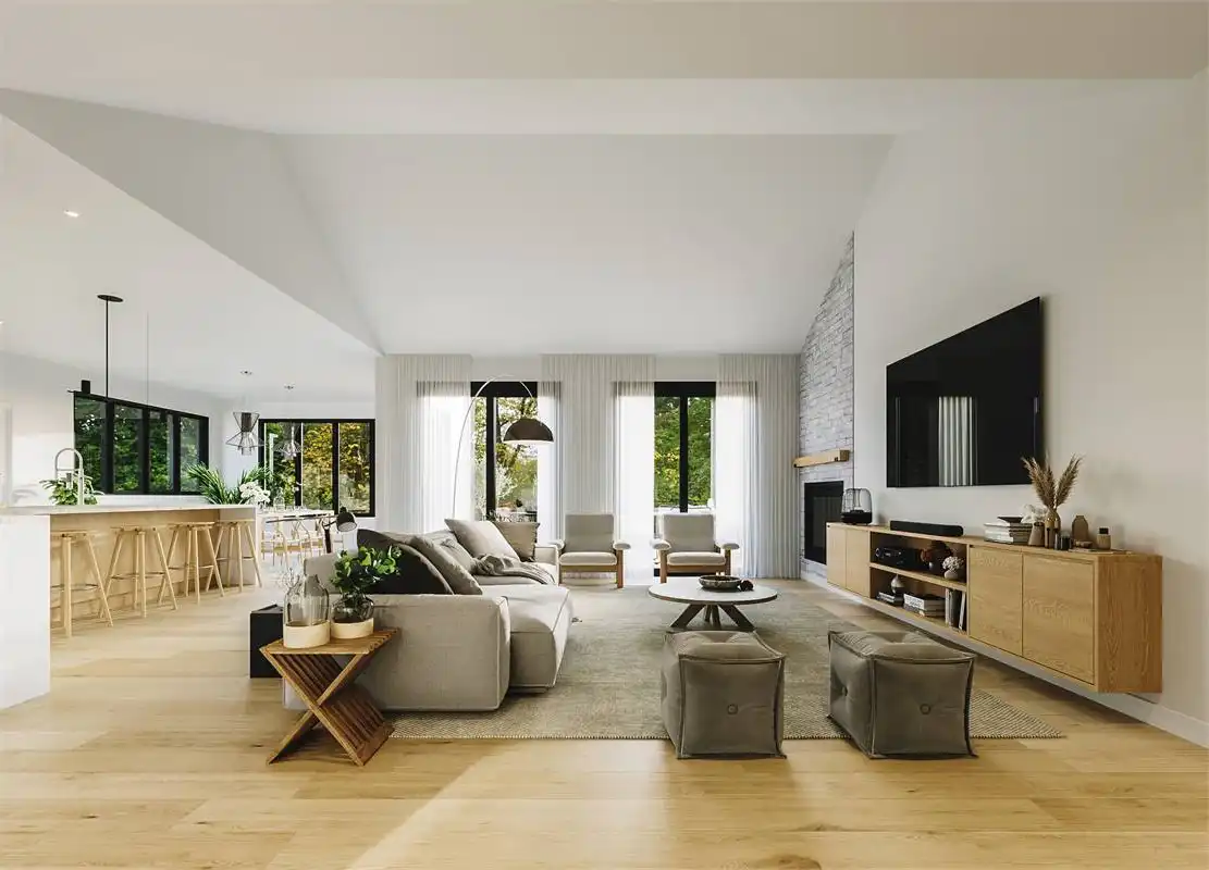This charming farmhouse plan includes 2,324 s.f. on the main floor with and open floor plan and vaulted family room. The open, L-shaped kitchen is designed to impress with plenty of room and a large island that easily seats 4. Behind the kitchen is a "back kitchen" that can be used as a huge walk in pantry and a place to store additional serving dishes and utensils. The master suite is luxurious with cathedral ceilings, large walk in closet and master bath with walk-in shower and tub. The lower level includes a bathroom, storage room and mechanical room but can be built out to provide another 2,324 s.f of living space below. Enjoy the outdoor living are with covered porch, and fire-pit.
