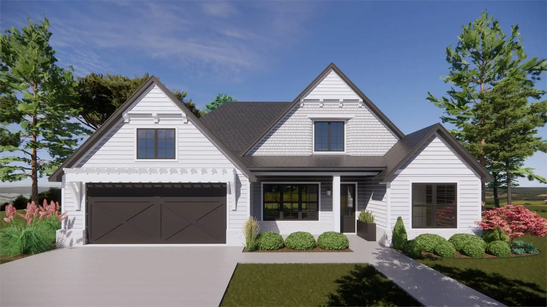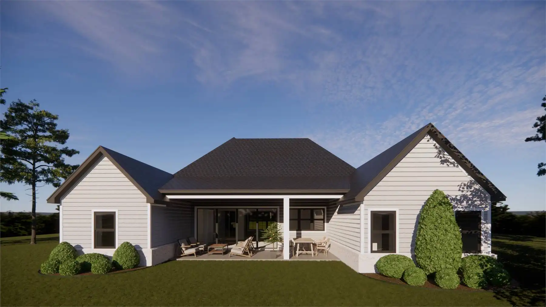 Take a look at House Plan 9219 if you need a one-story cottage that'll fit right into a subdivision with ease! This home offers attractive curb appeal along with a simple outline ideal for building on neighborhood lots. Inside, you'll enjoy 2,186 square feet, four bedrooms, and three bathrooms. Three secondary bedrooms line up along the left side, with a regular bedroom beside a hall bath in front and a pair of Jack-and-Jill bedrooms in back. The common areas fill out the center of the floor plan, with the dining room in front and the island kitchen and vaulted living space farther inside. Behind the garage on the right side of the house, the primary suite has its privacy. The vaulted bedroom is in back while the five-piece bath and walk-in closet stretch forward to connect to the laundry in the mudroom. A covered back porch rounds out this thoughtful design for a family!