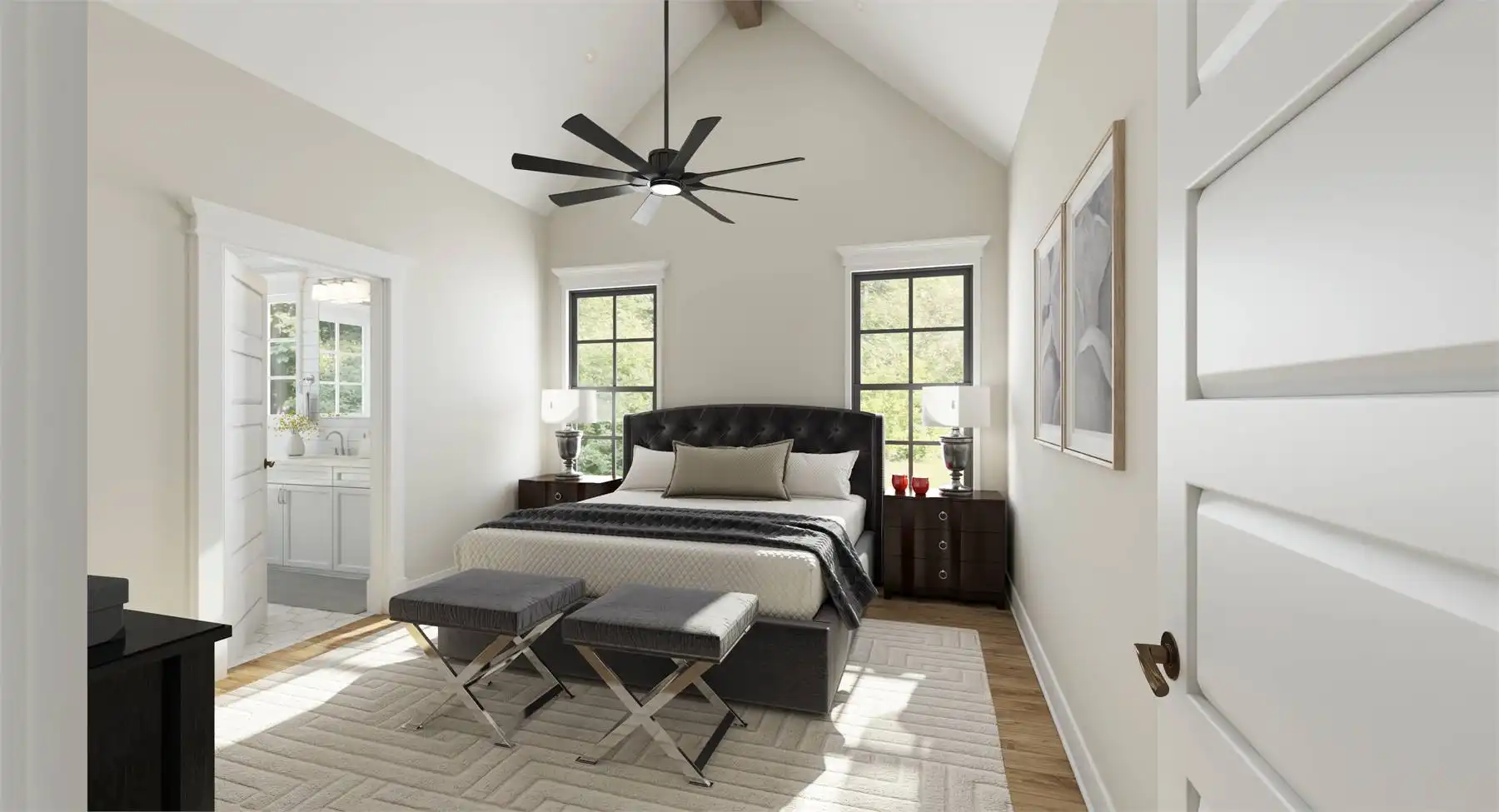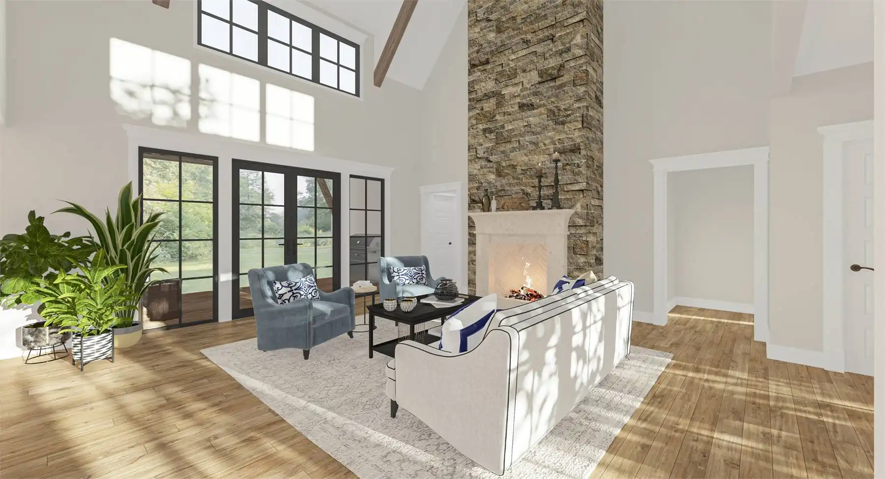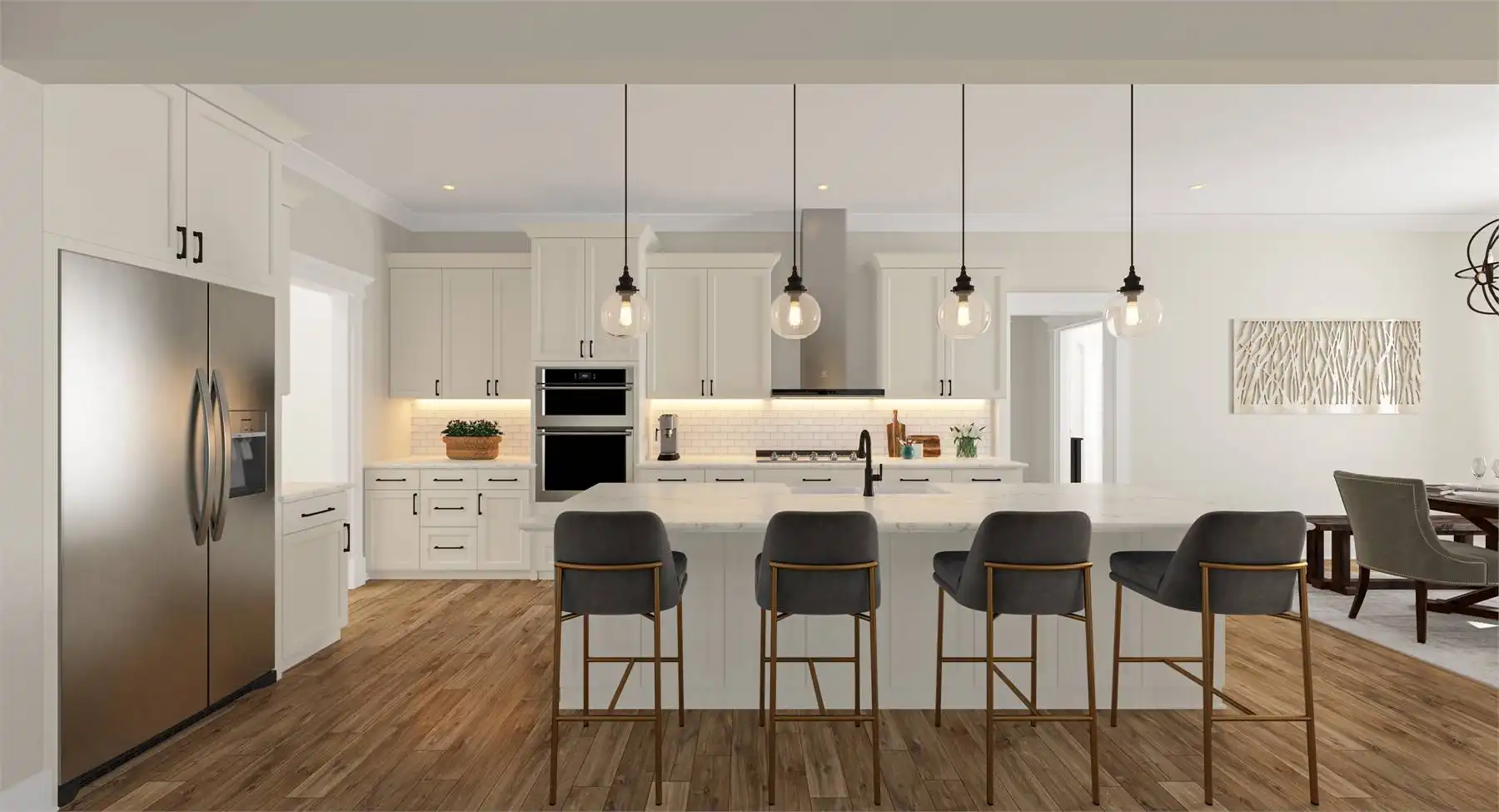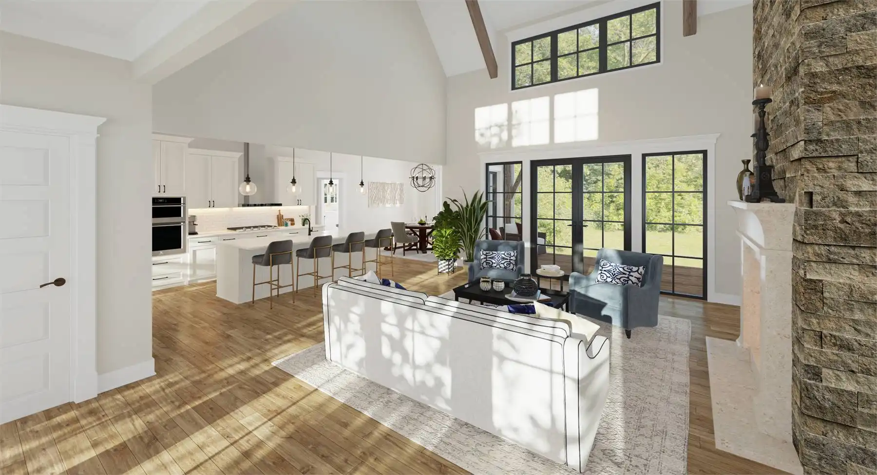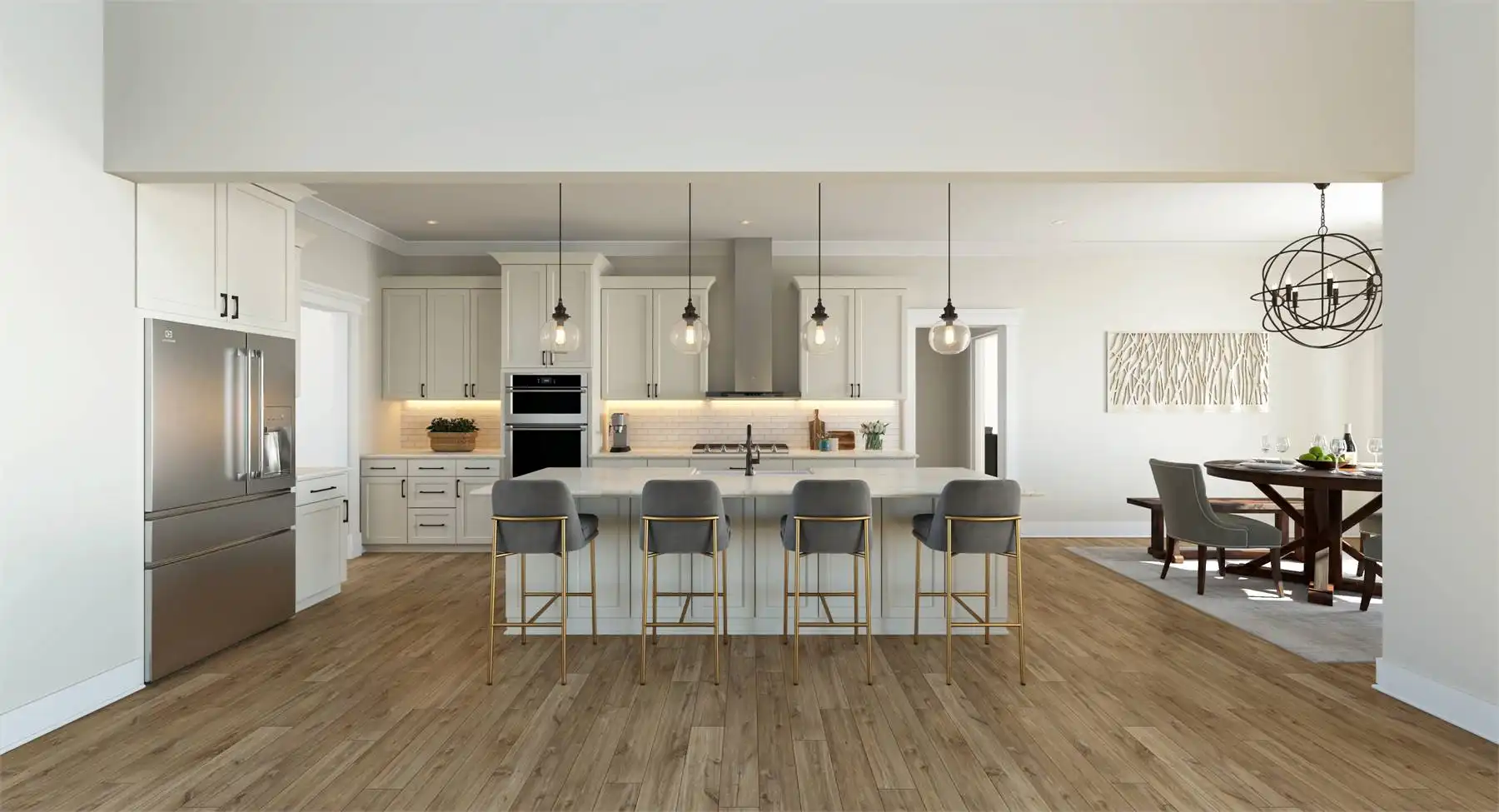 This one story modern farmhouse combines relaxed family living with refined design. The family room features vaulted ceilings that elevate the space and create an airy, welcoming atmosphere. The L shaped kitchen includes a central island that works beautifully for quick meals, hosting, or daily prep, and it flows easily into the surrounding living spaces. A private office extends the home’s functionality, while the split bedroom arrangement supports comfort and privacy. The primary suite offers a spa inspired ensuite with a double vanity, a soaker tub, a separate shower, and a walk in closet. A flexible games room adds extra space for entertainment or family activities, and a spacious three car garage completes the layout with ample storage and convenience.