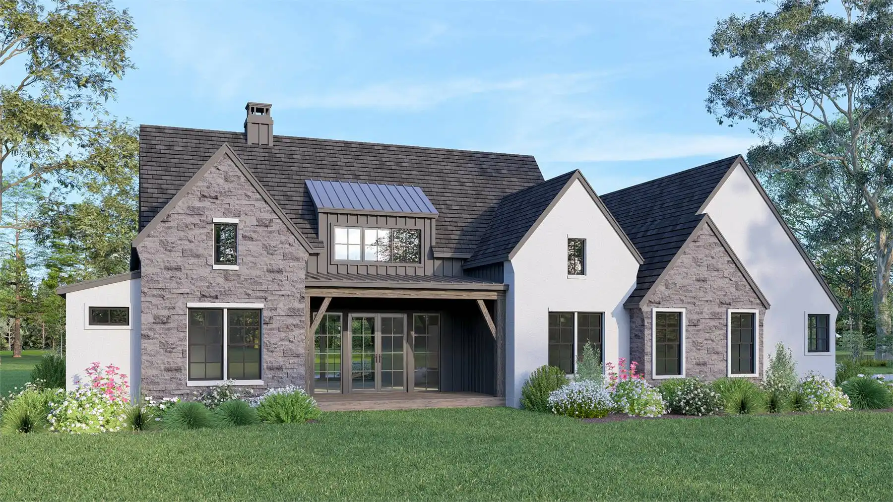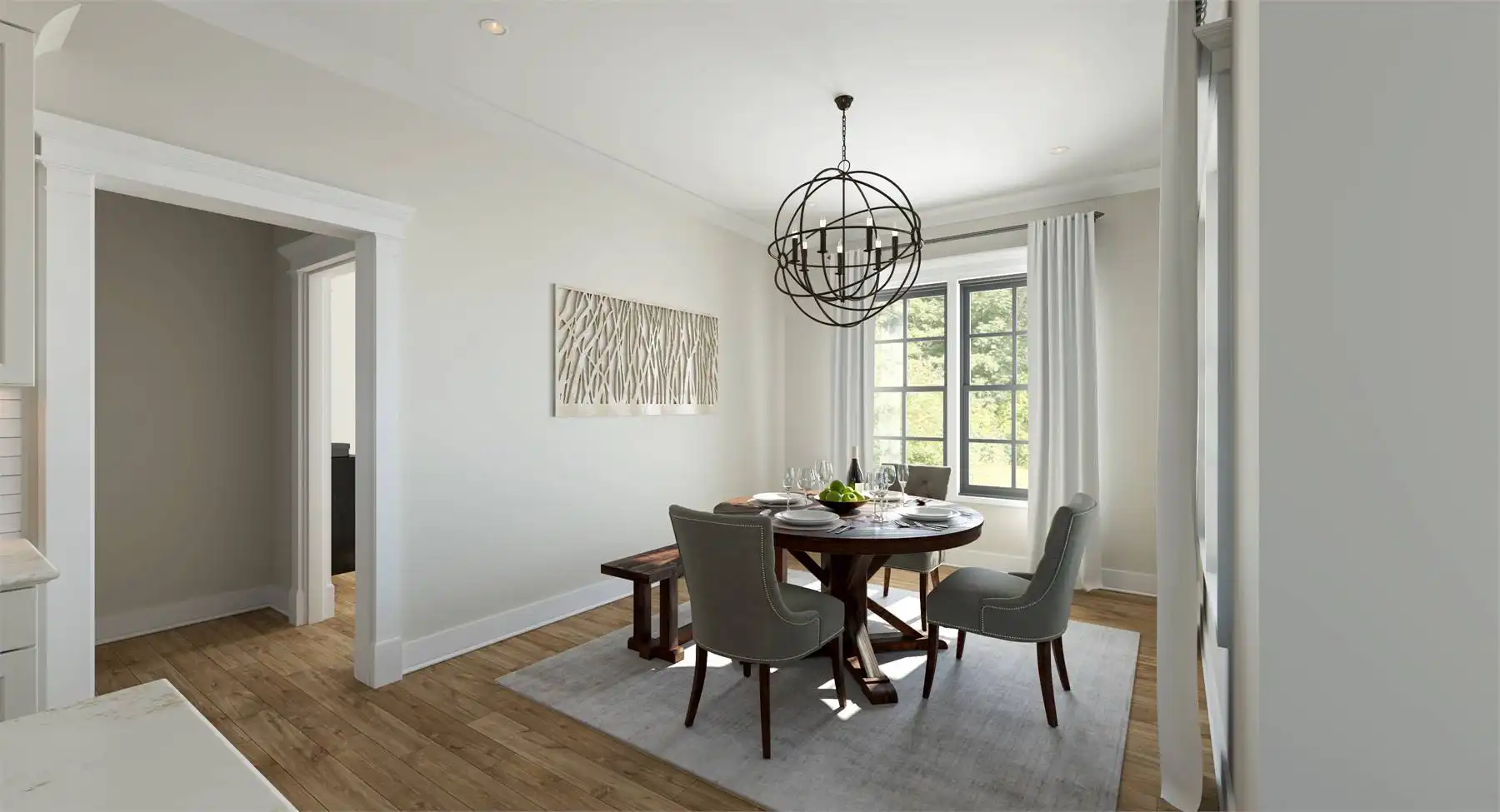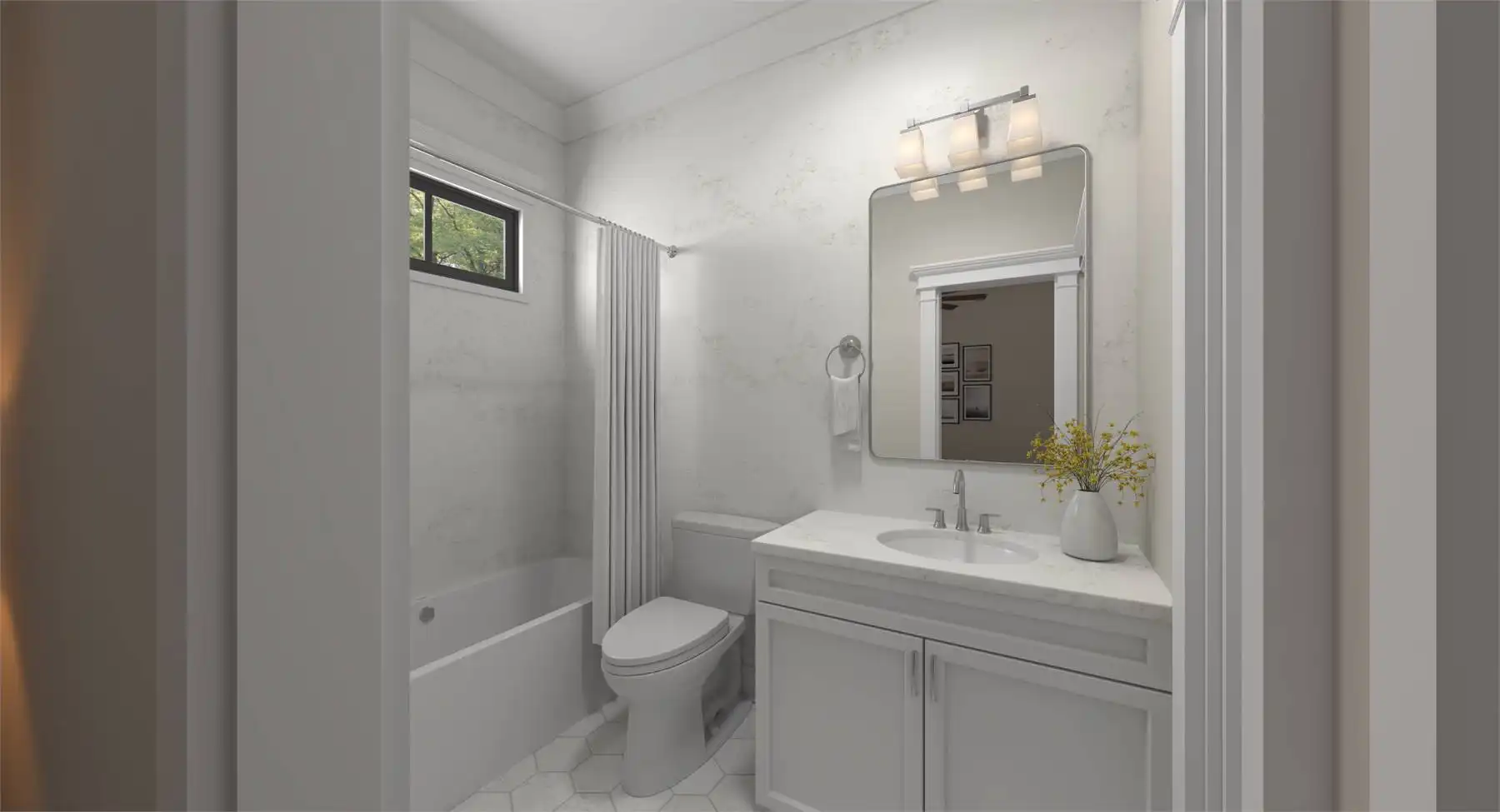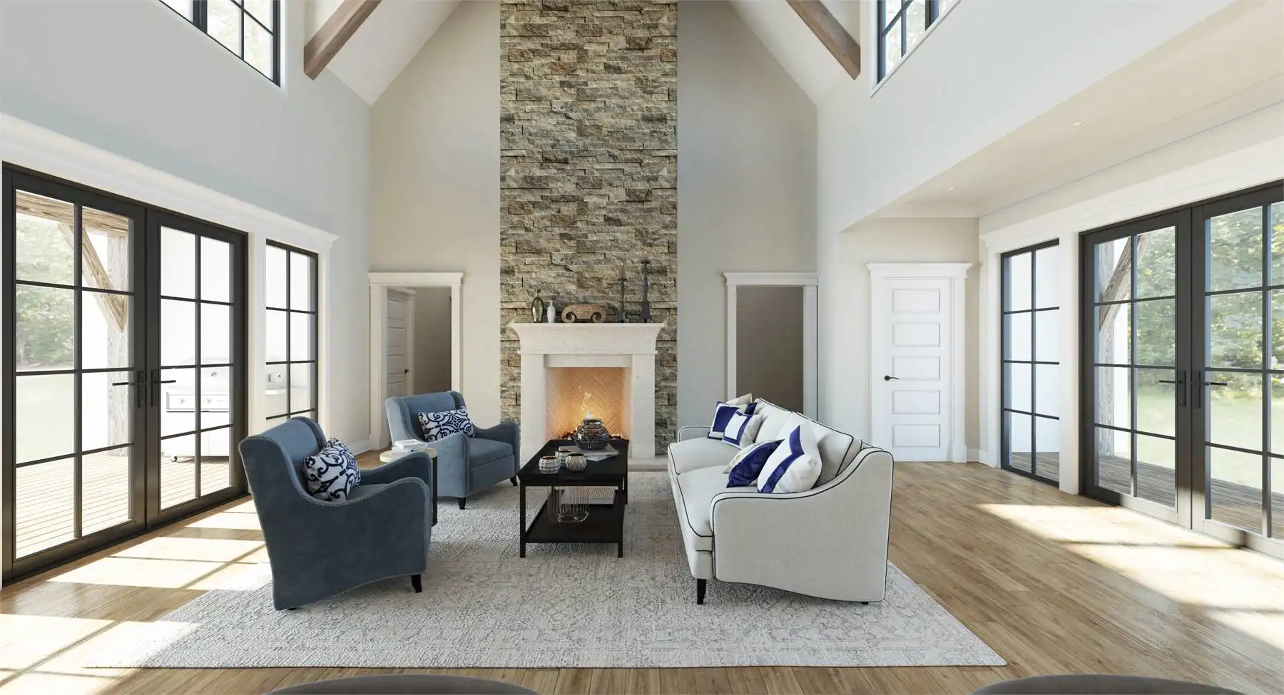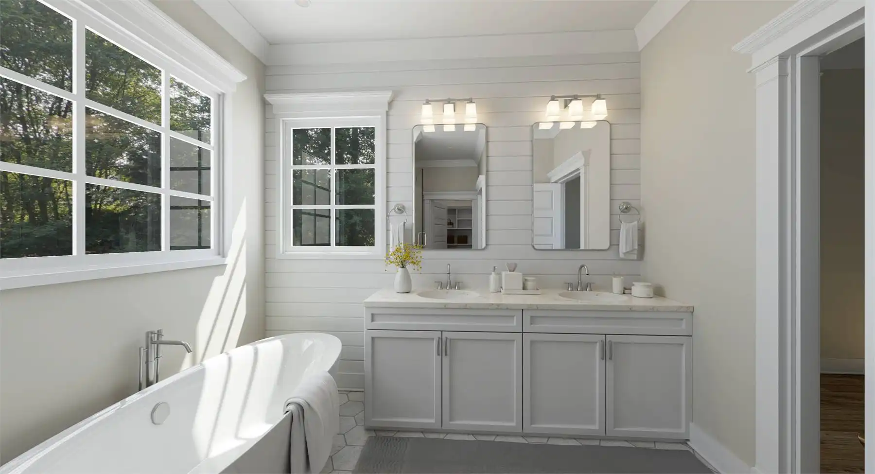 This one story modern farmhouse combines relaxed family living with refined design. The family room features vaulted ceilings that elevate the space and create an airy, welcoming atmosphere. The L shaped kitchen includes a central island that works beautifully for quick meals, hosting, or daily prep, and it flows easily into the surrounding living spaces. A private office extends the home’s functionality, while the split bedroom arrangement supports comfort and privacy. The primary suite offers a spa inspired ensuite with a double vanity, a soaker tub, a separate shower, and a walk in closet. A flexible games room adds extra space for entertainment or family activities, and a spacious three car garage completes the layout with ample storage and convenience.