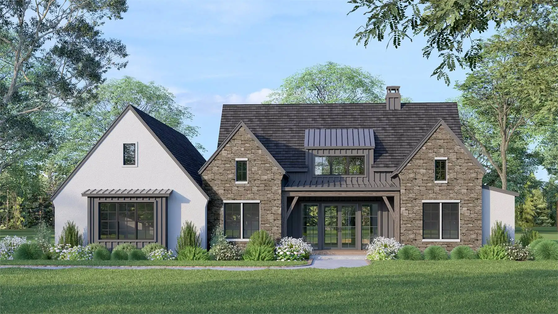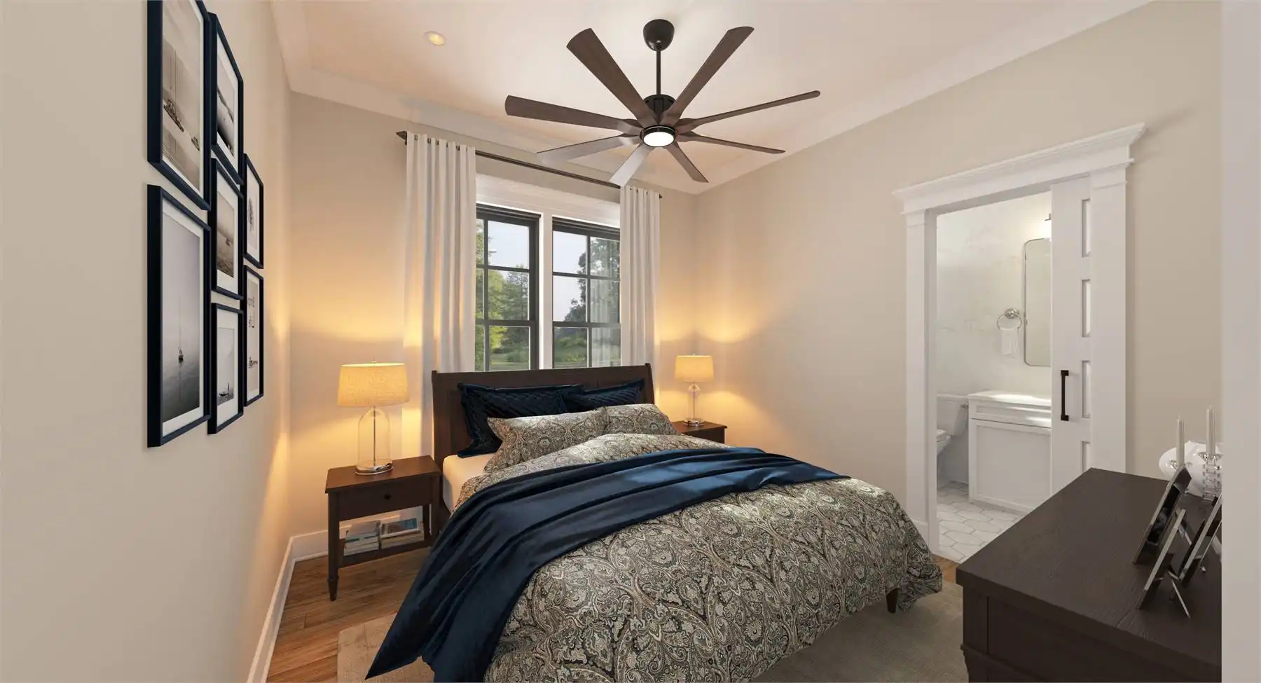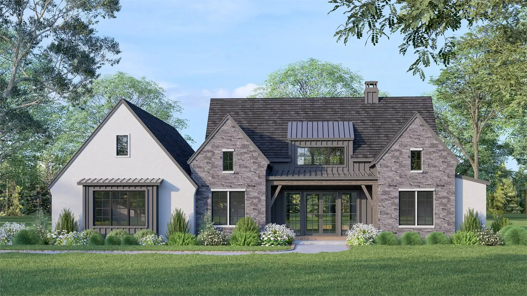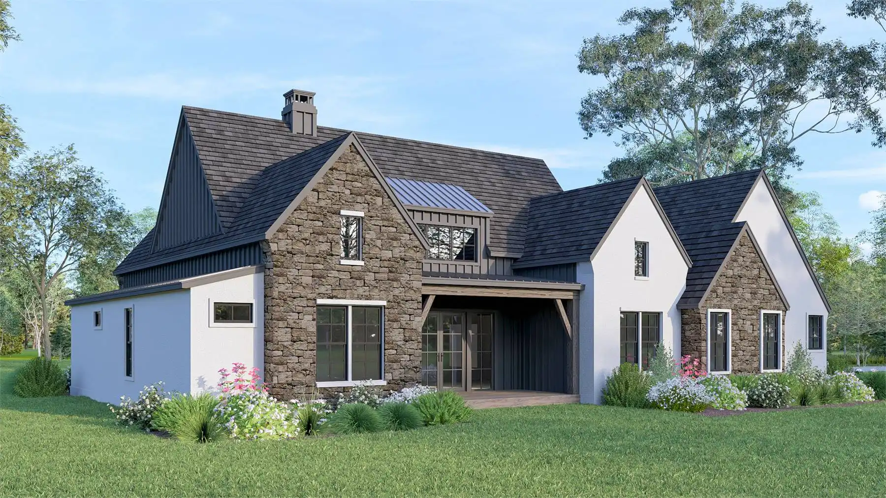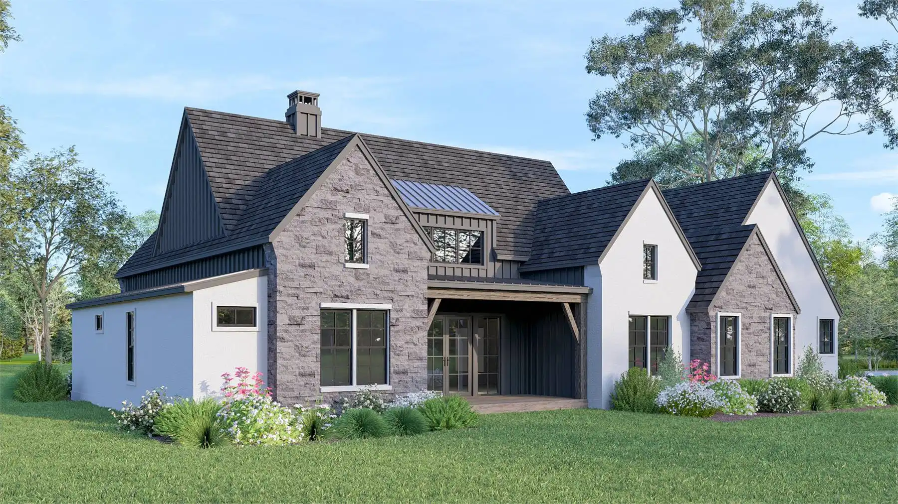 This one story modern farmhouse combines relaxed family living with refined design. The family room features vaulted ceilings that elevate the space and create an airy, welcoming atmosphere. The L shaped kitchen includes a central island that works beautifully for quick meals, hosting, or daily prep, and it flows easily into the surrounding living spaces. A private office extends the home’s functionality, while the split bedroom arrangement supports comfort and privacy. The primary suite offers a spa inspired ensuite with a double vanity, a soaker tub, a separate shower, and a walk in closet. A flexible games room adds extra space for entertainment or family activities, and a spacious three car garage completes the layout with ample storage and convenience.