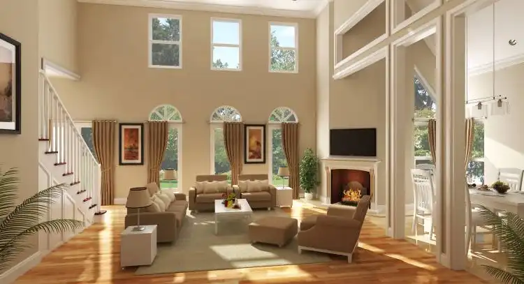 Regardless if you are watching a late night movie alone or the big game with a crowd, this home features the ultimate in media rooms. Receding walls direct your view to the screen and bounce the sound to the viewer. An adjoining wet bar and bath serves the media room, living area or the rear covered porch. The 2-story Living room with massive corner fireplace and open stairwell makes a great entertaining space once the big game is over. A built in kitchen desk and huge walk-in pantry are sure to please the lady of the house. The master suite is grand and opulent with an equally impressive adjoining bath. The kitchen is open and light with bountiful storage and a great view into the living area. A large butlers pantry is positioned to serve the dining and kitchen and it is also convenient for off loading from the garage.