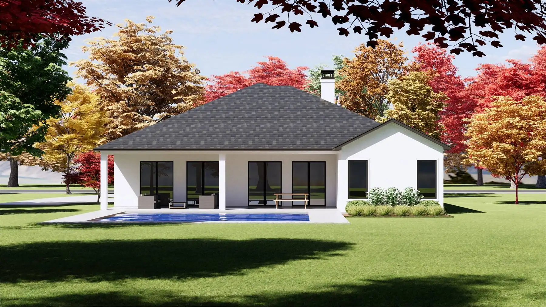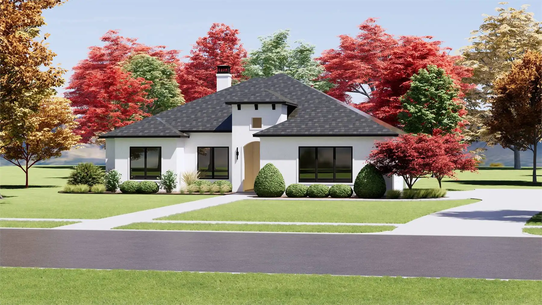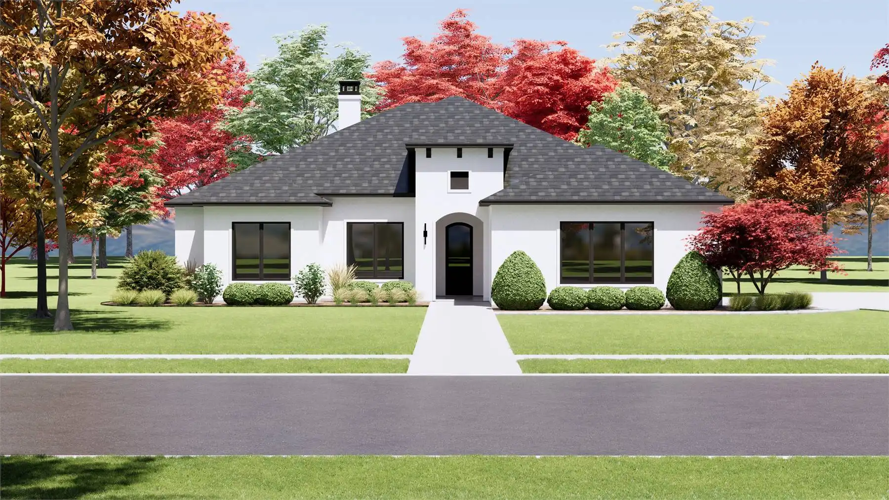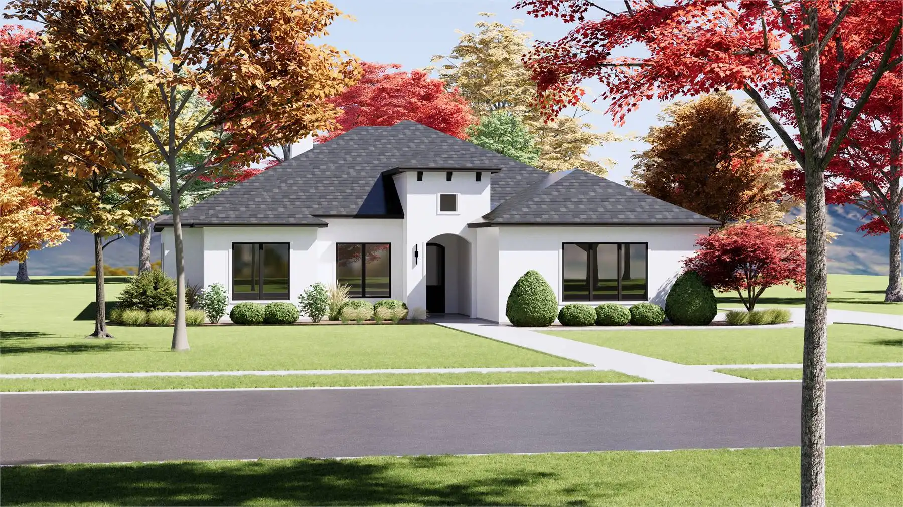 Stop and take a look at House Plan 9235 if you're in the market for a Southwestern-style ranch for a family! This 2,196-square-foot home offers four bedrooms and two bathrooms in addition to wide-open living space. The island kitchen overlooks the dining area and vaulted family room, so it's a great layout for hosting and/or keeping an eye on the kids. There's also a back porch that expands the feel of this whole space. The five-piece primary suite with a vaulted bedroom is privately located down the back hall from the family room while the other three bedrooms and a four-piece bath are in the front hallway. But that's not all! The side-entry garage connects to the house with a mudroom flanked by the walk-in pantry and laundry--a great arrangement for unloading groceries and keeping tidy!